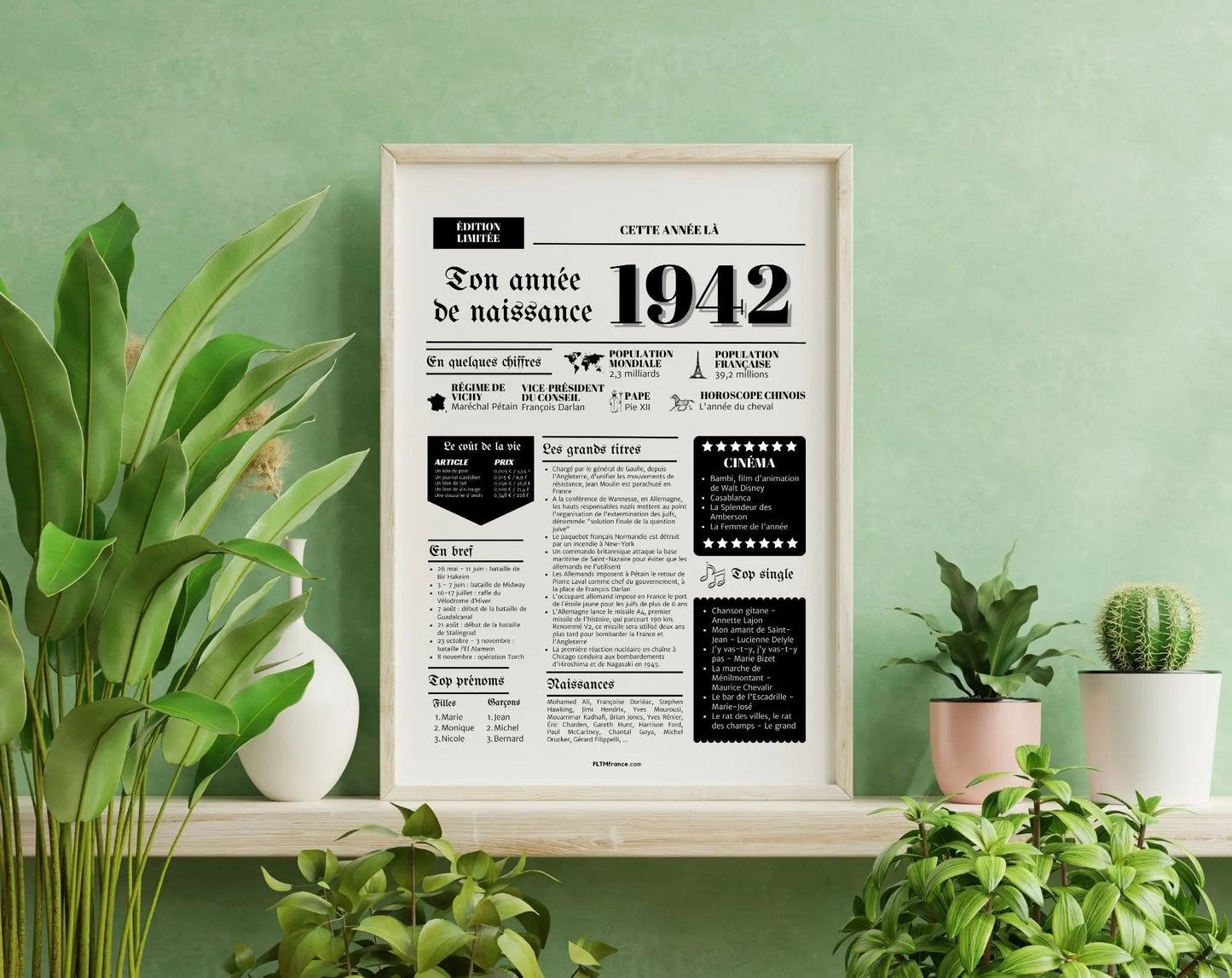 Affiche année de naissance 1942 : cadeau et décoration anniversaire parfaite