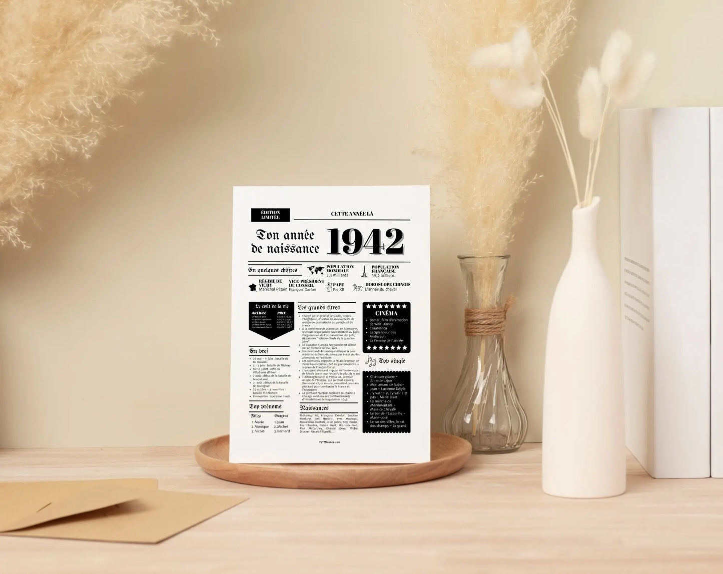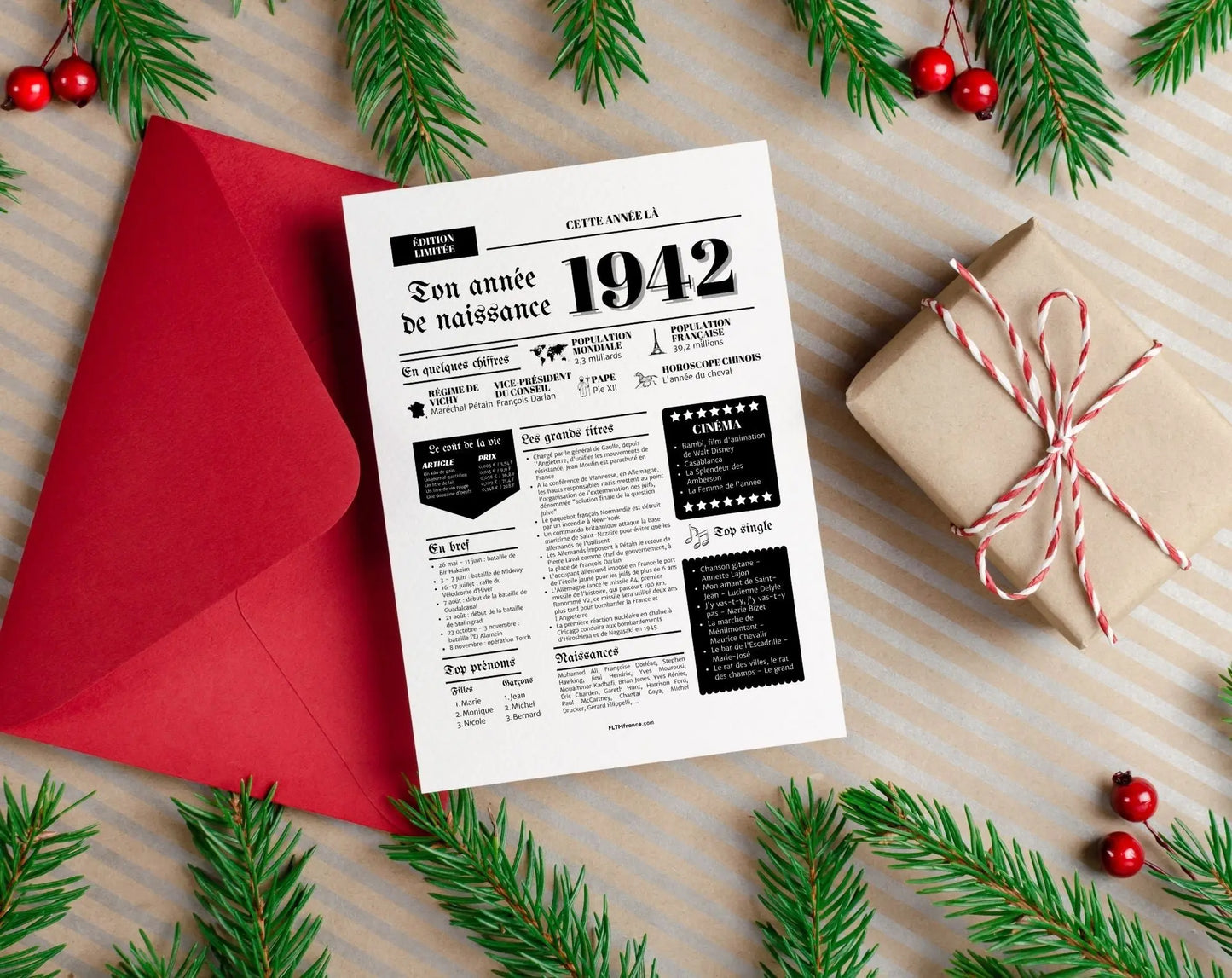 - Informations historiques : Inclut des faits marquants, événements et personnalités de l'année 1942.
