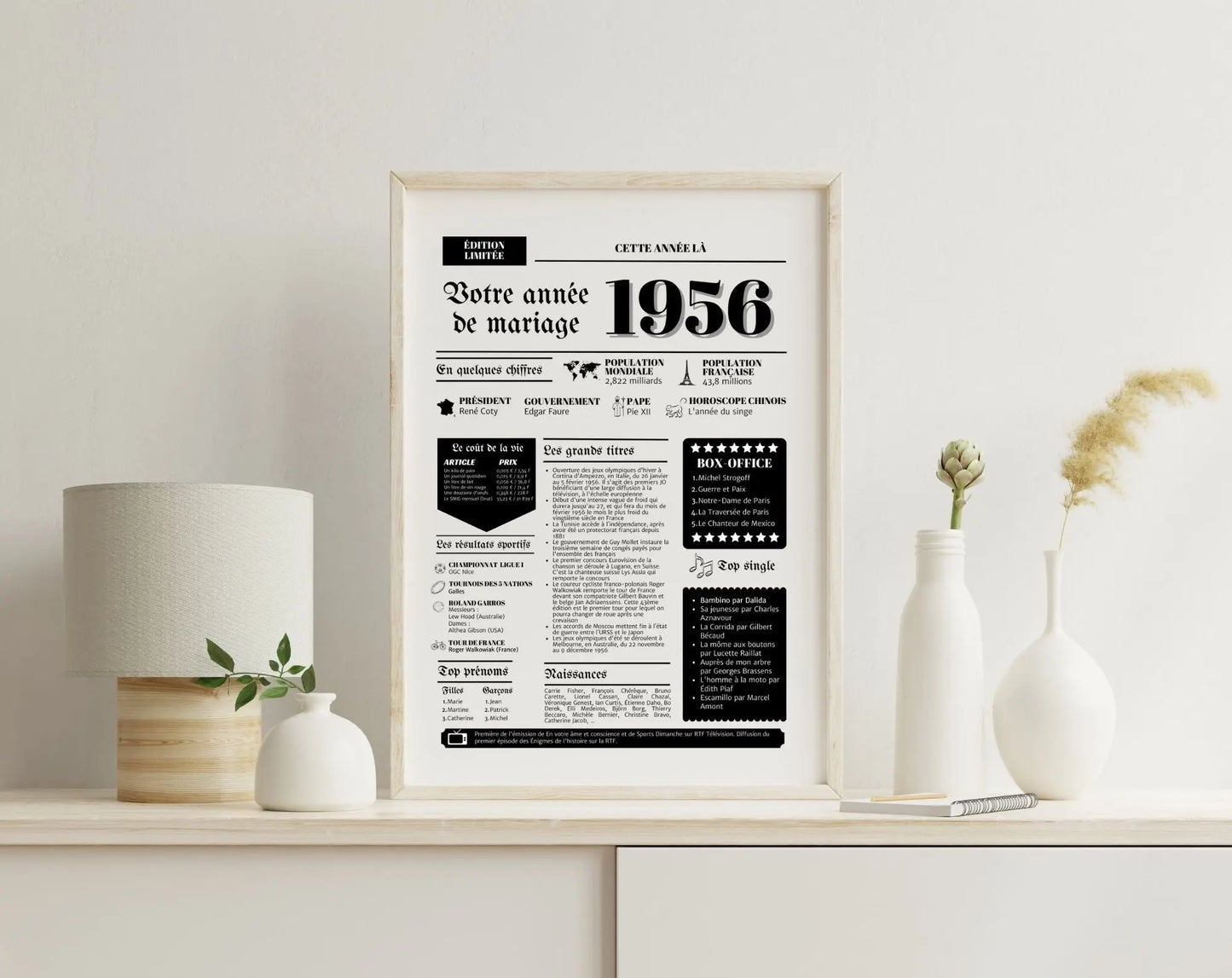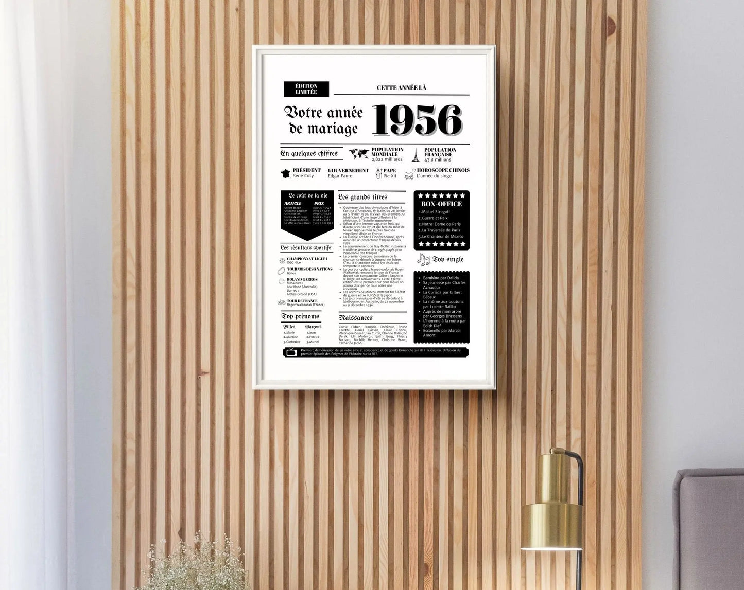 Revivez l'année de votre mariage avec notre affiche rétro de 1956