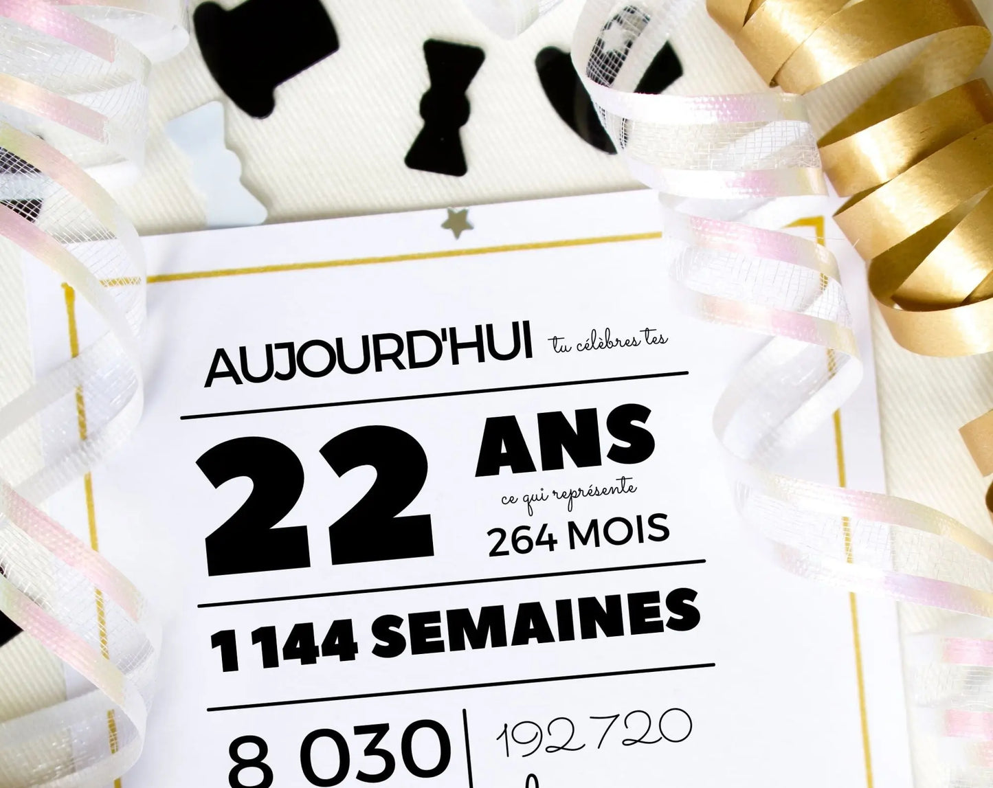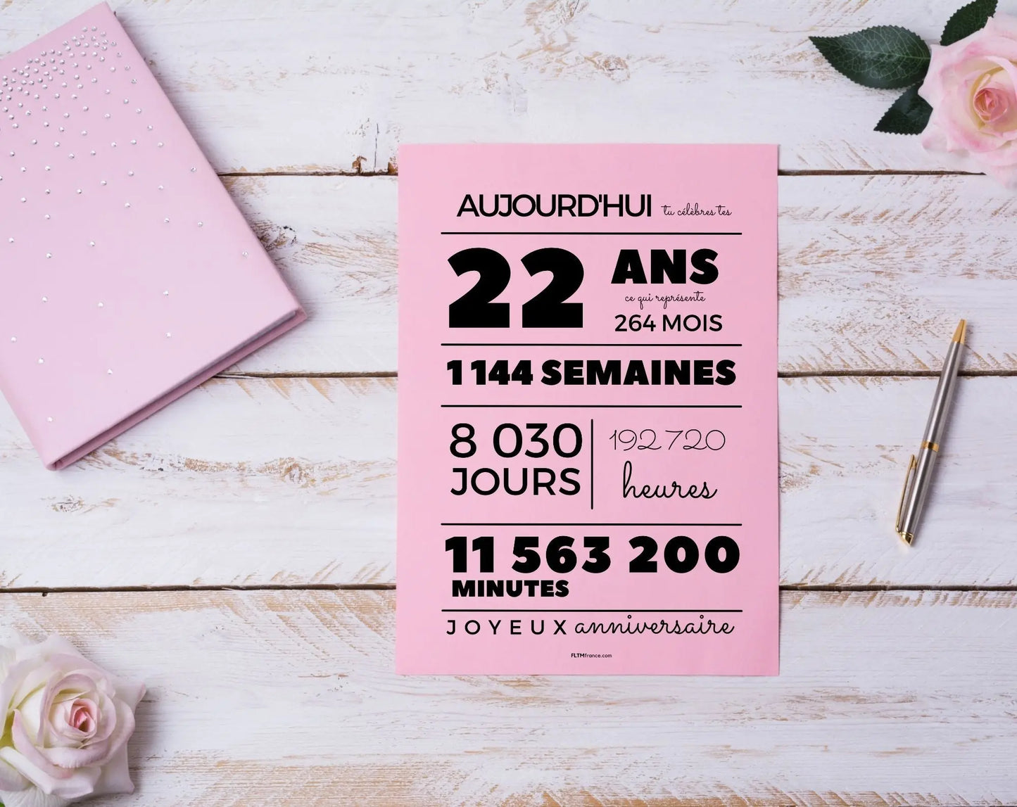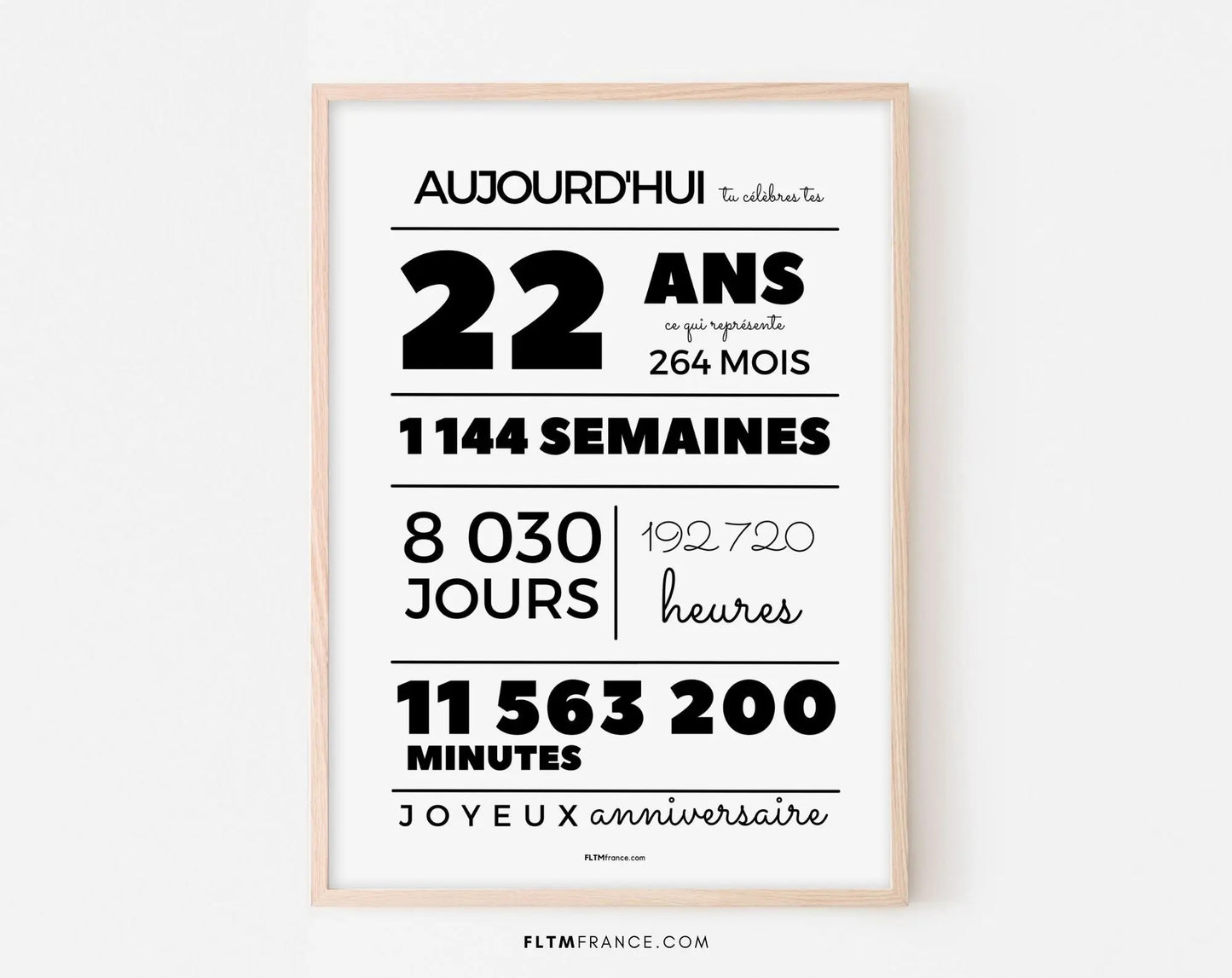 Affiche 22 ans, 264 mois, 1144 semaines - Carte anniversaire