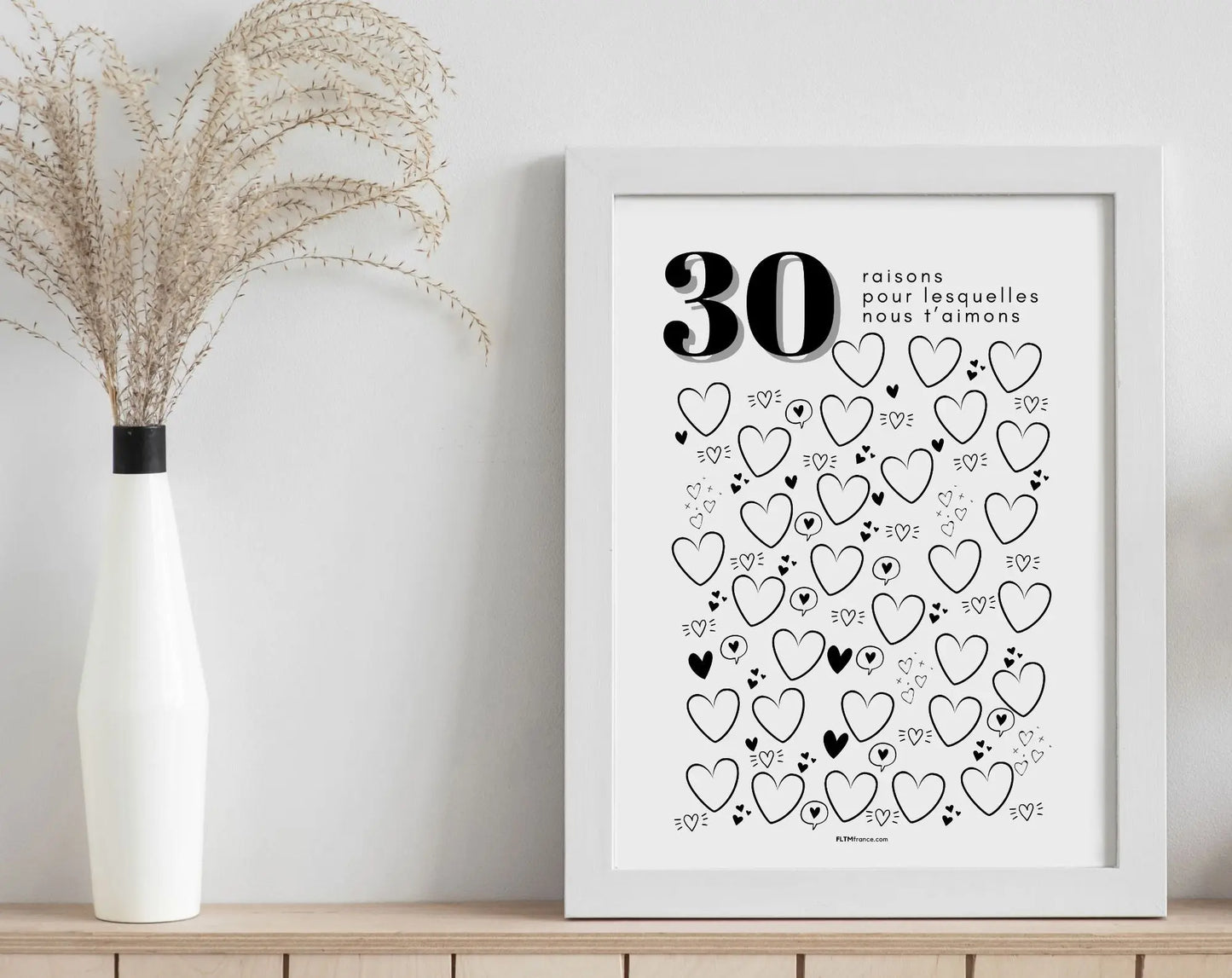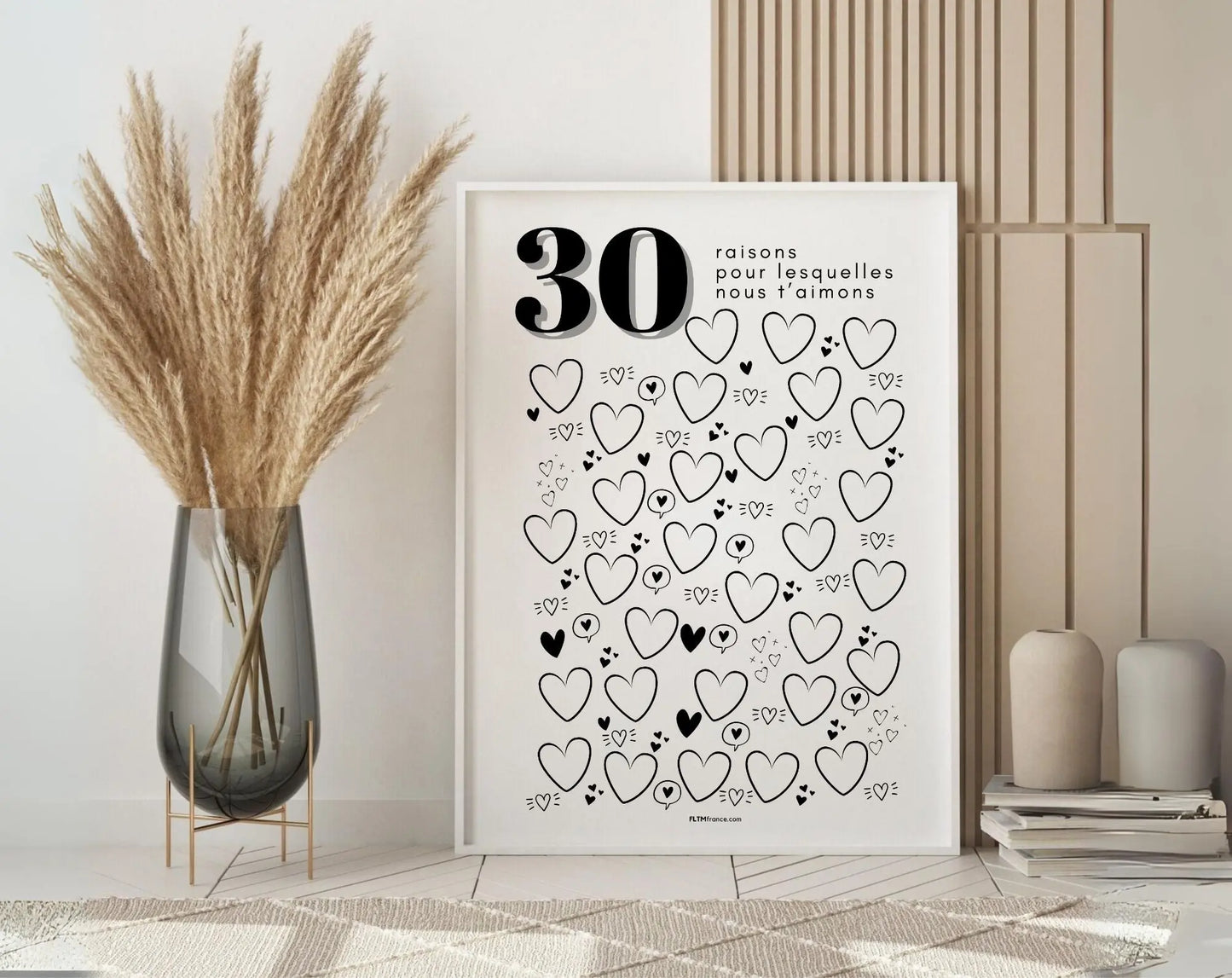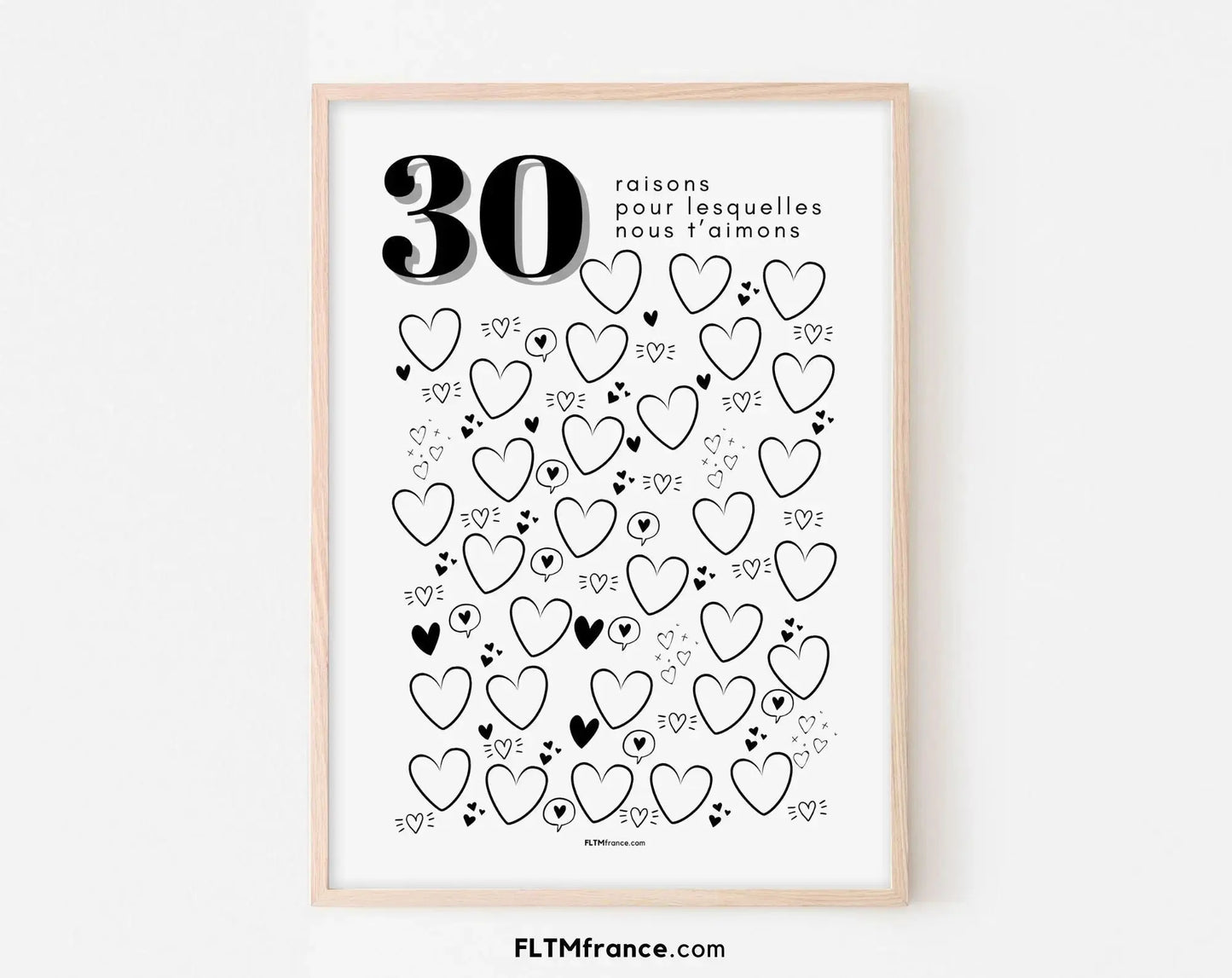 Affiche 30 raisons pour lesquelles nous t’aimons, très bonne qualité, effet wahou assuré !