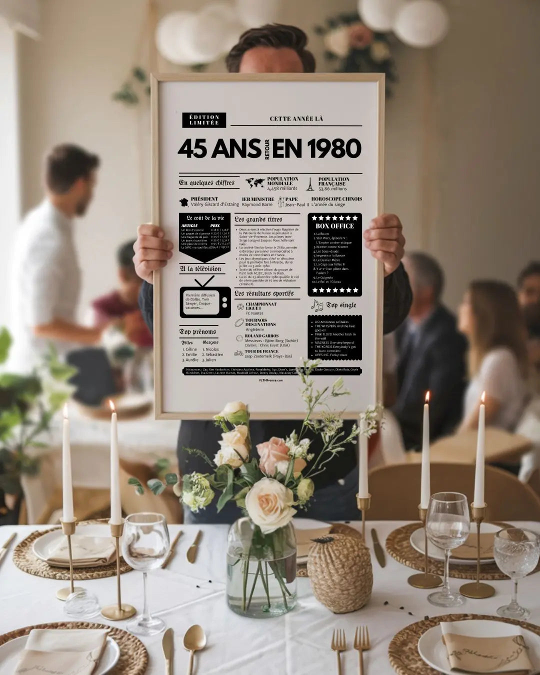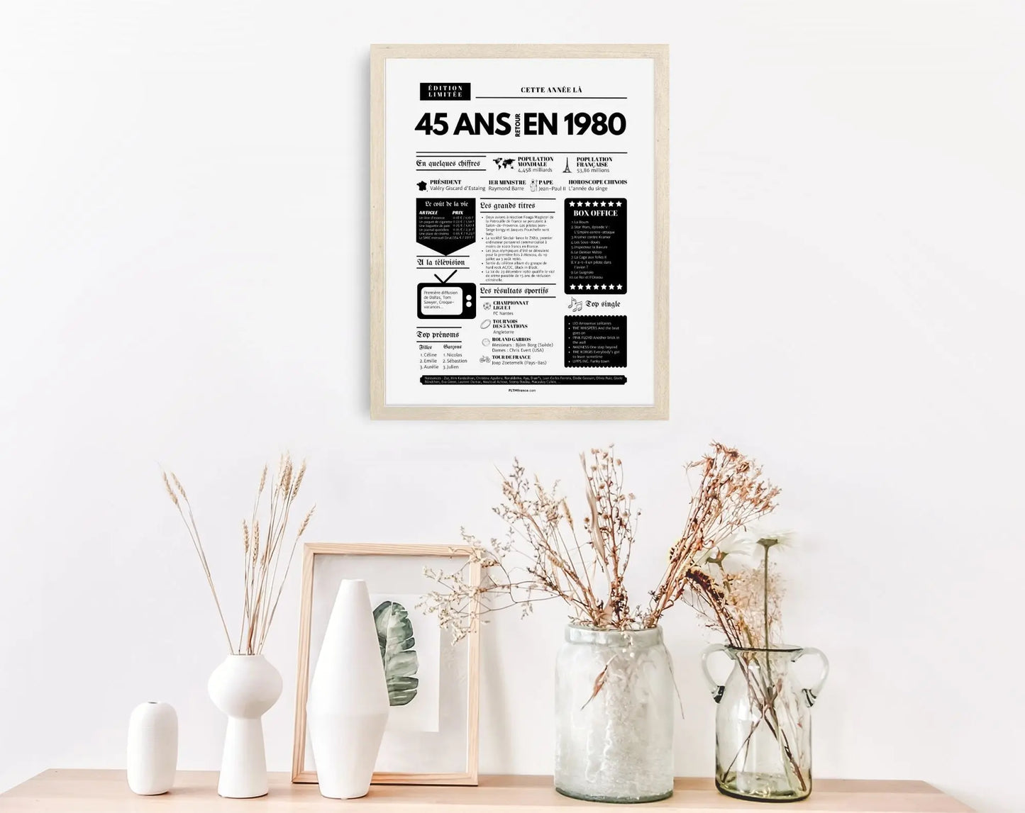 - Cadeau encadré : Offrez un souvenir unique et intemporel pour marquer les 45 ans.