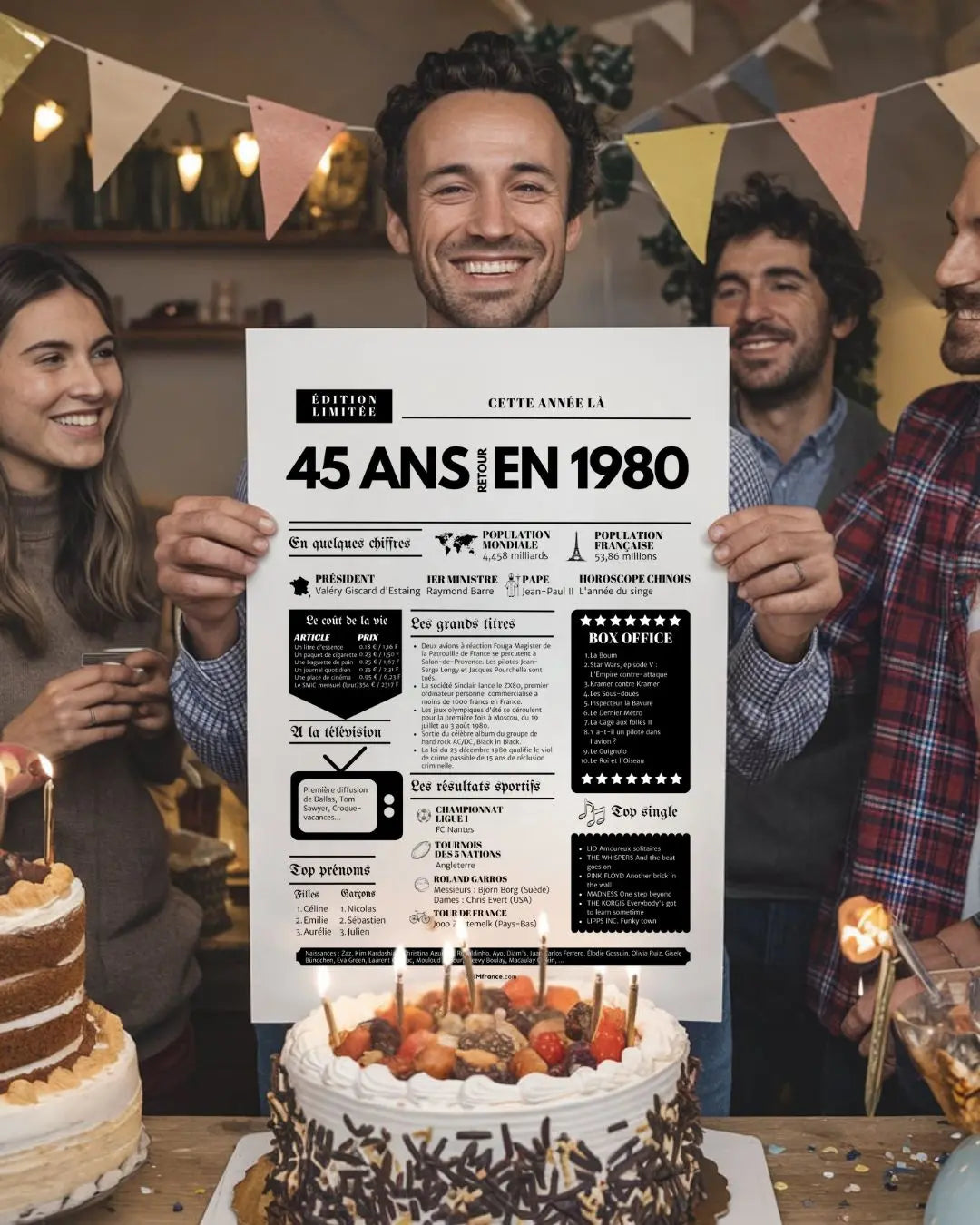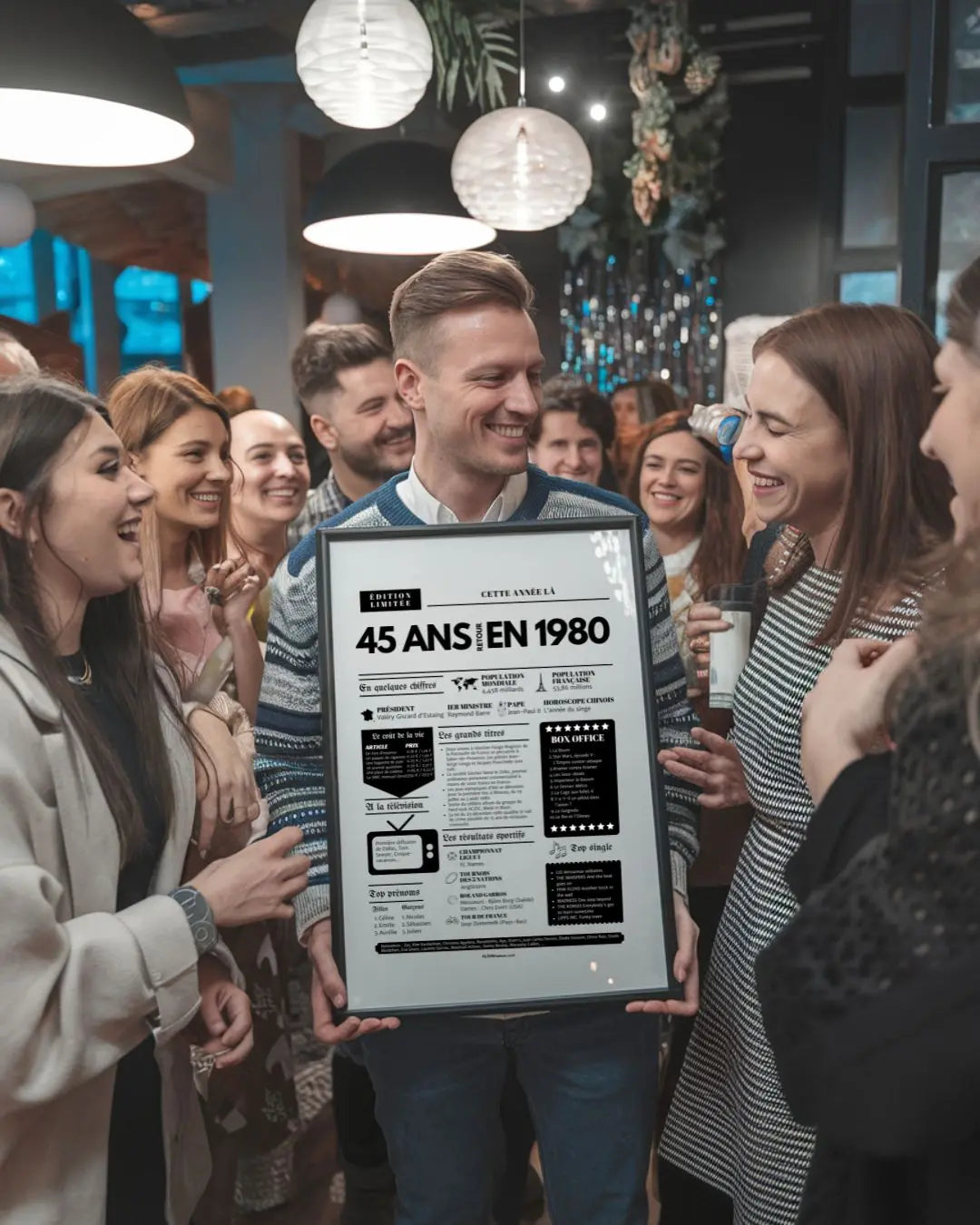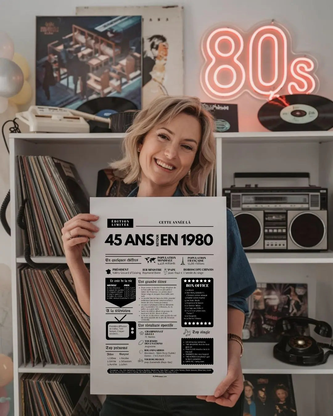 - Personnes nées en 1980 : Un cadeau original et personnalisé pour marquer leurs 45 ans.