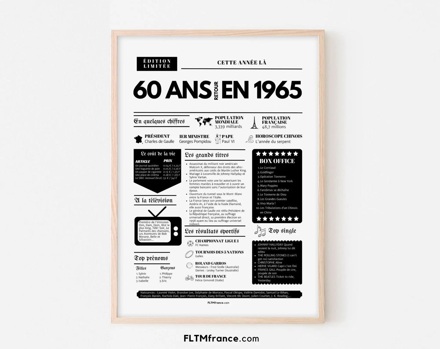 Affiche 60 ans retour en 1965 - Journal de l'année