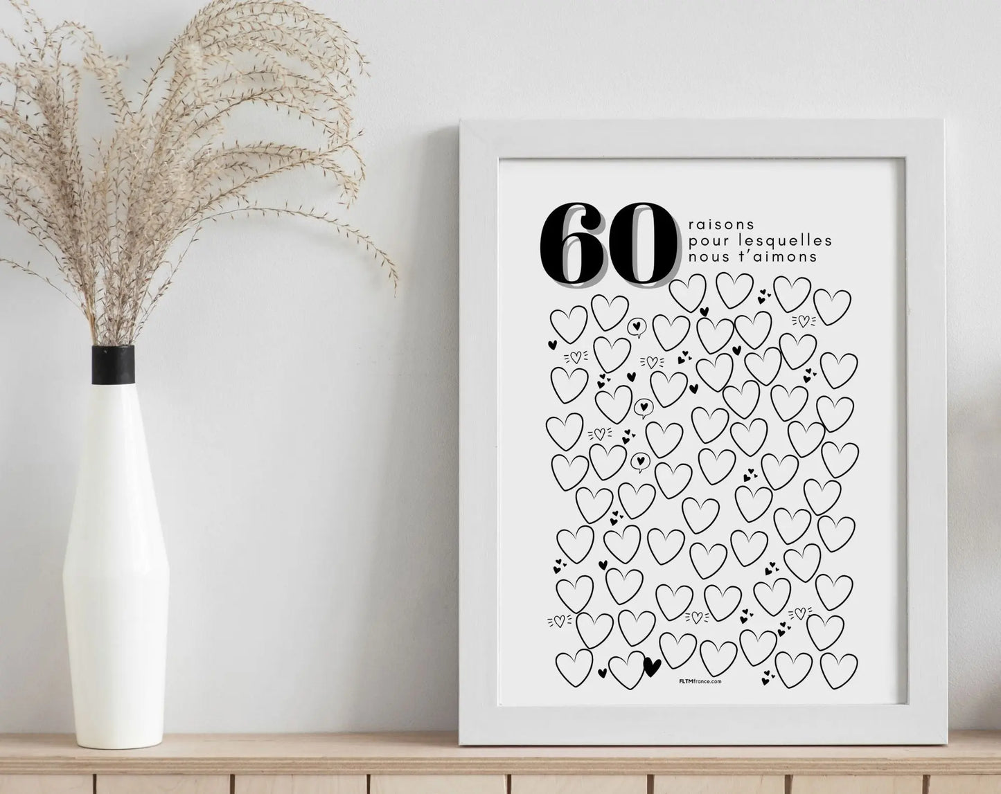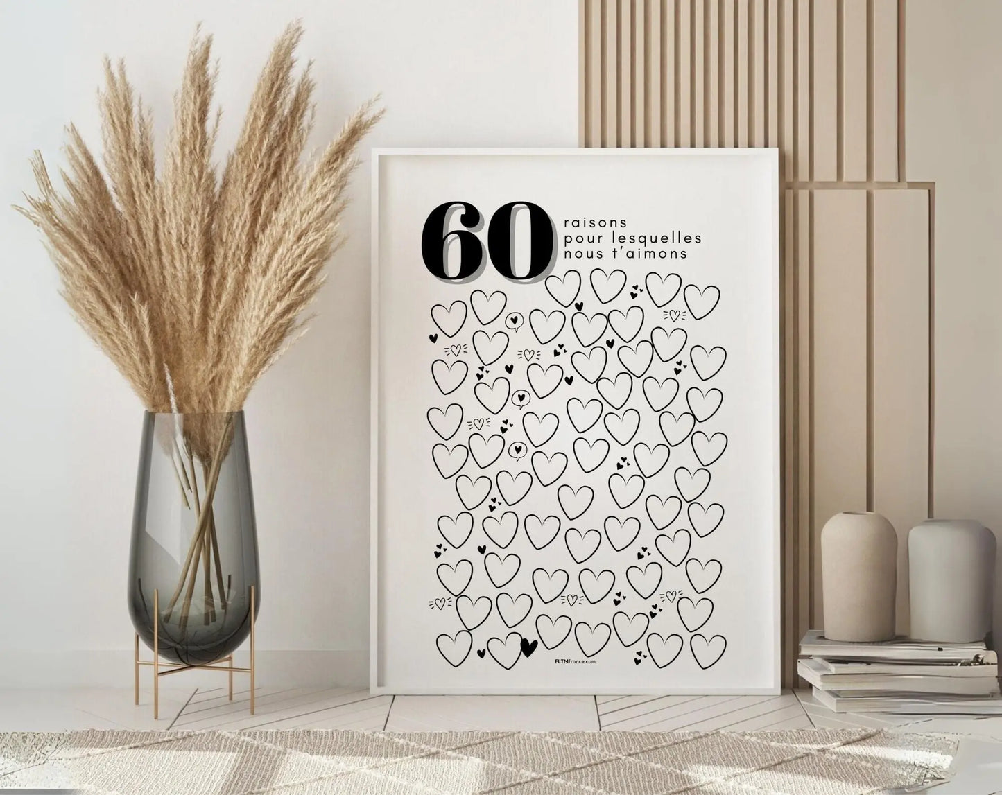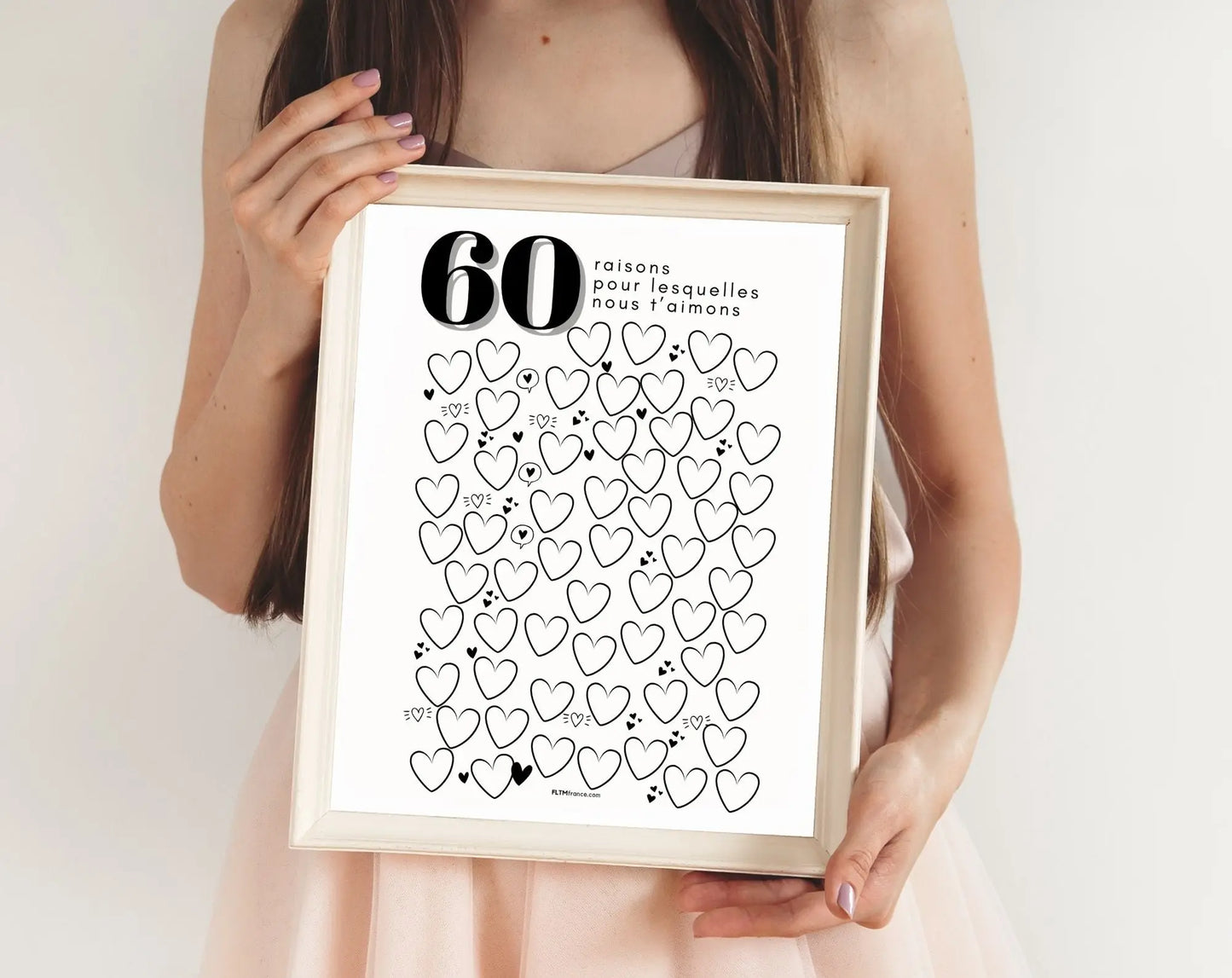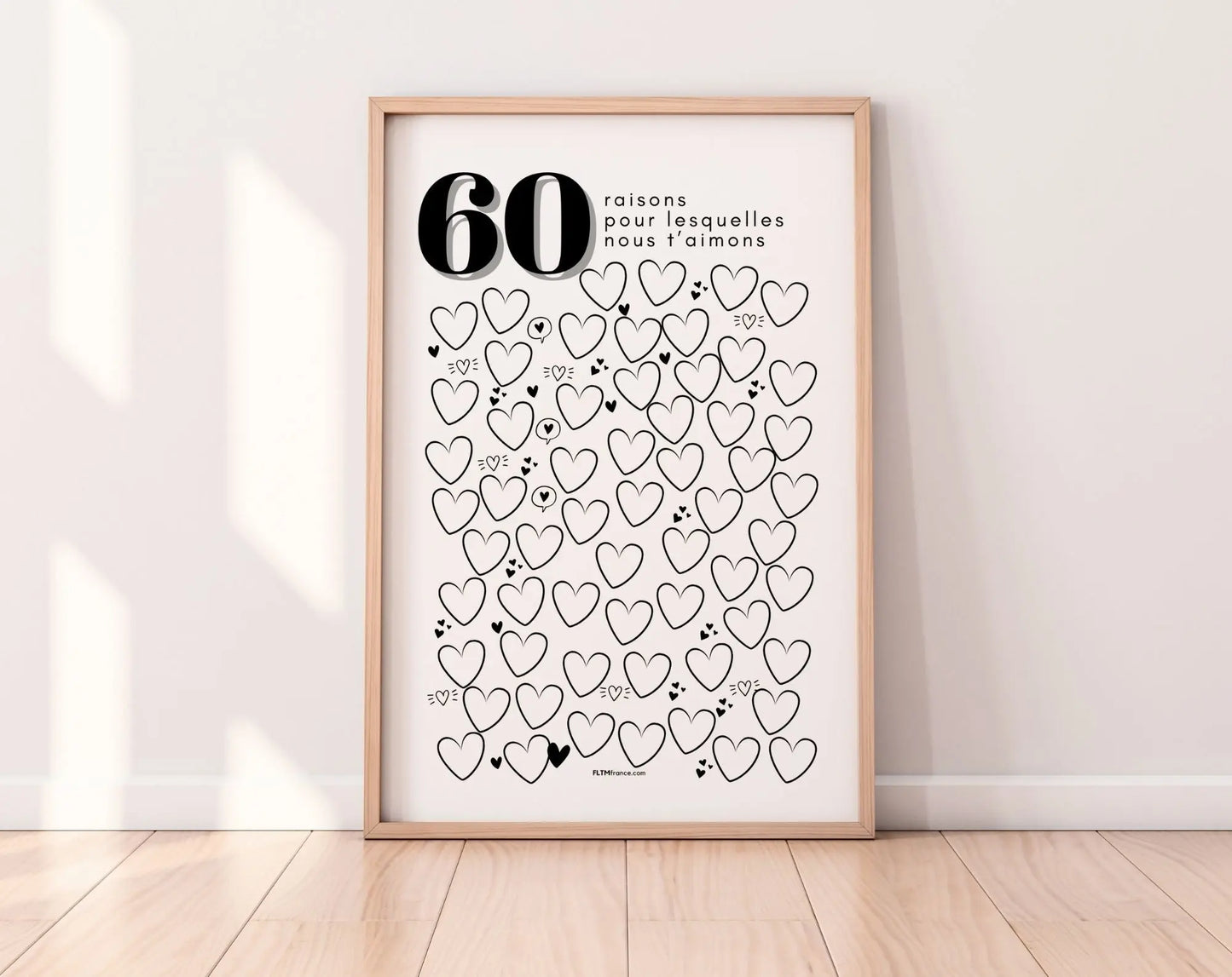 Super idée de cadeau ! L’affiche “60 raisons” a beaucoup touché notre maman.