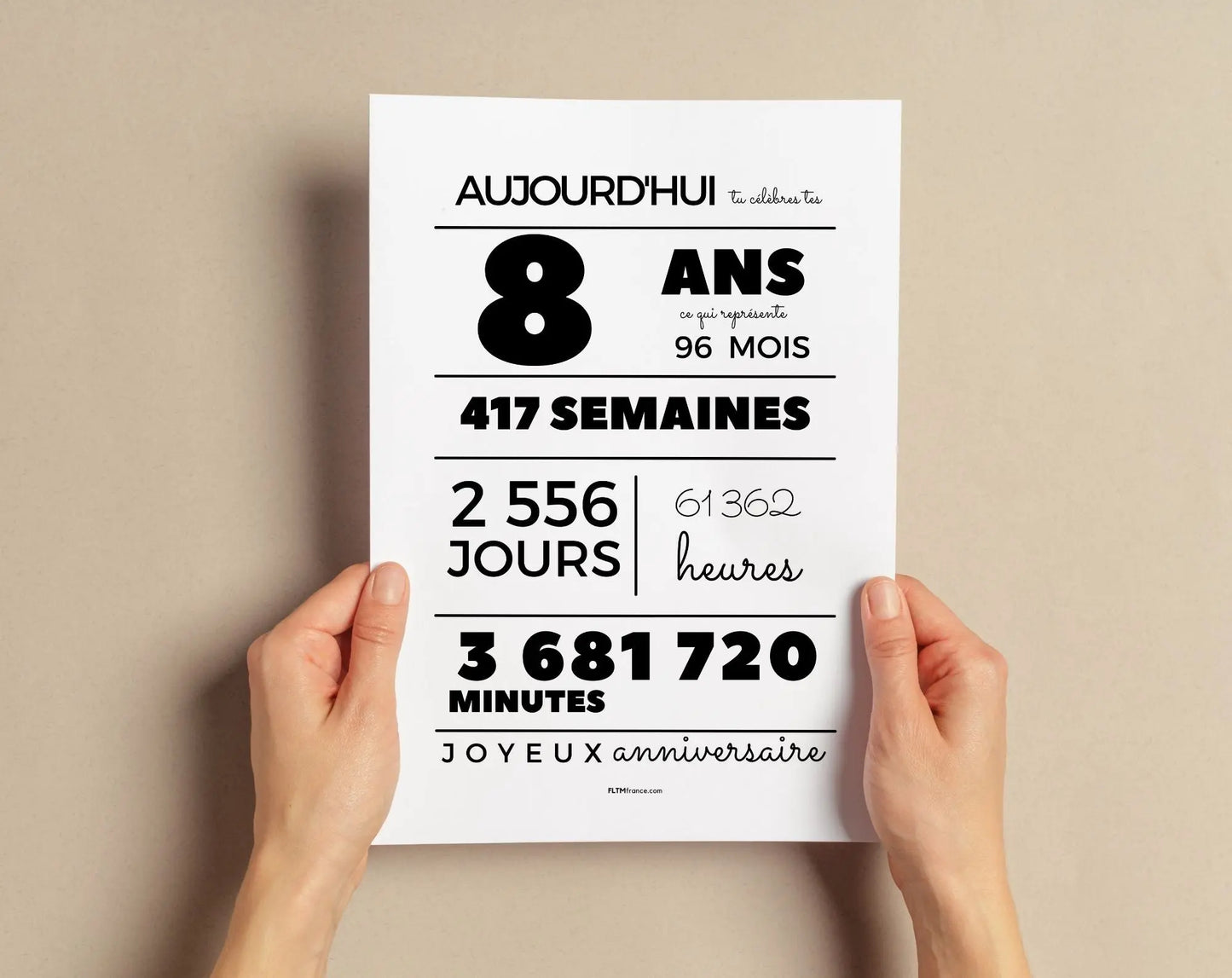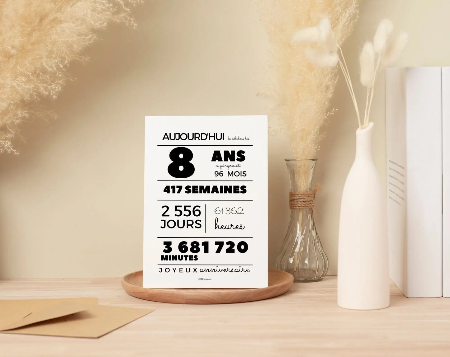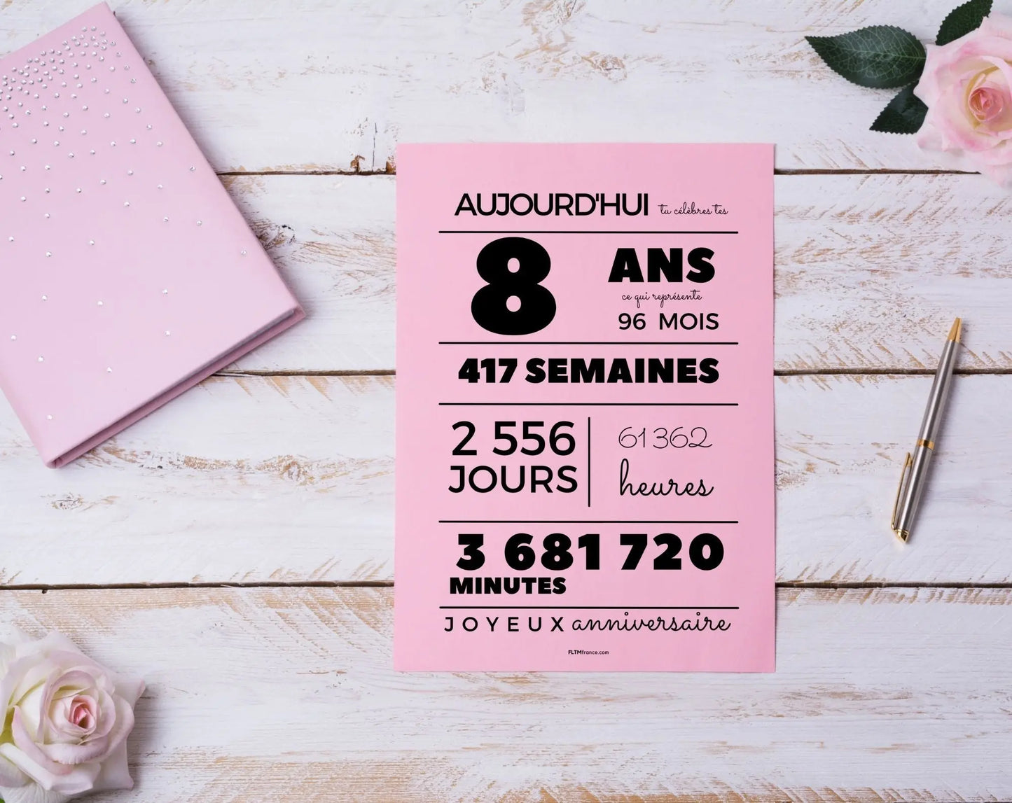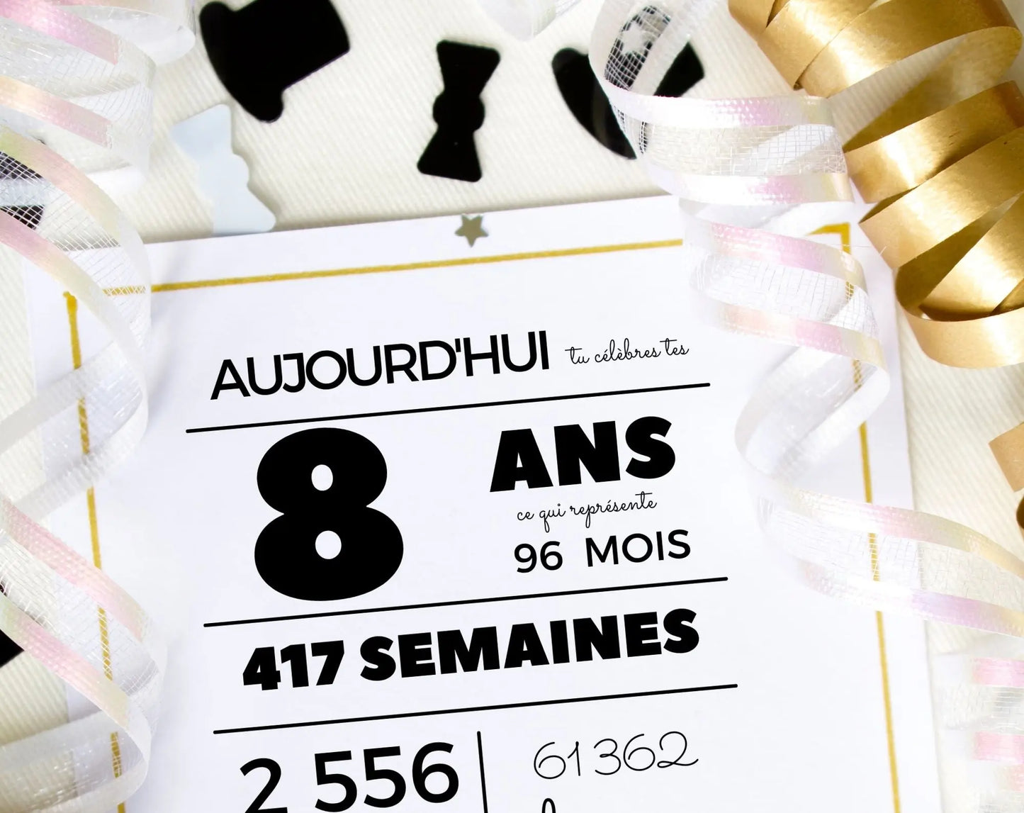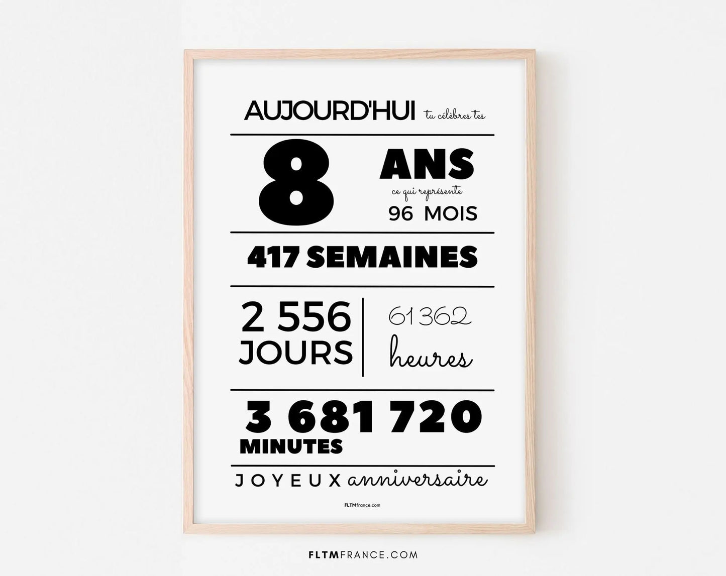 Affiche 8 ans, 96 mois, 417 semaines - Carte d'anniversaire pour enfant