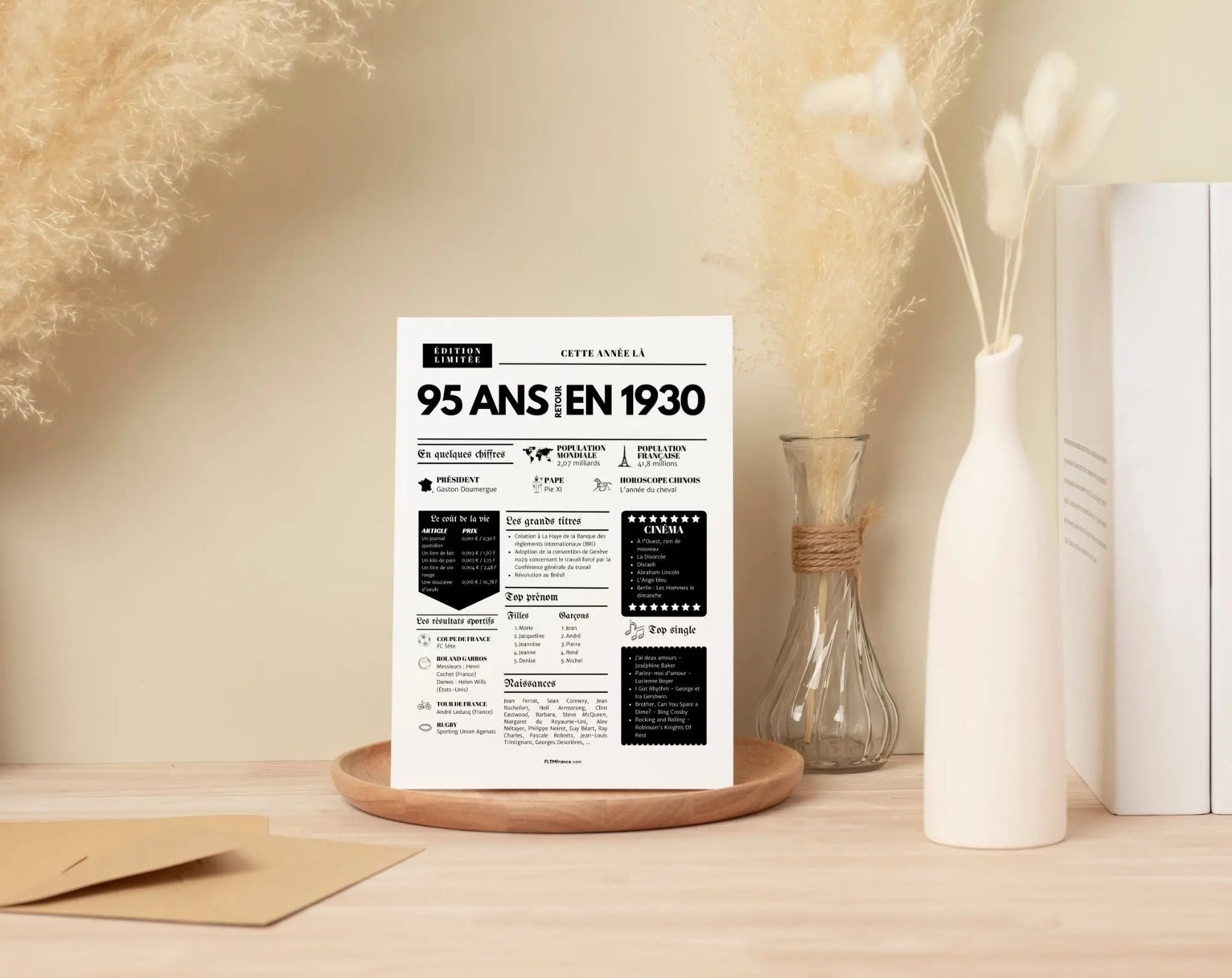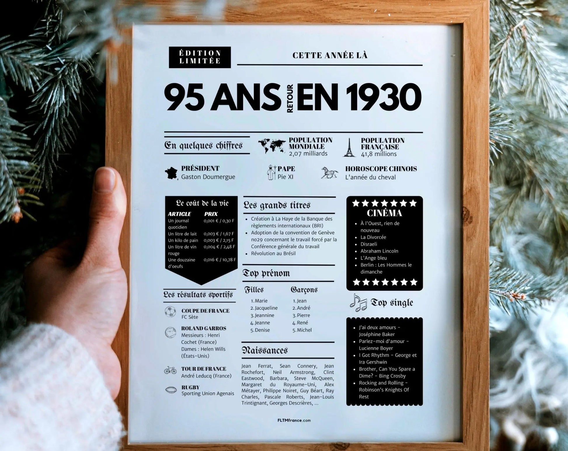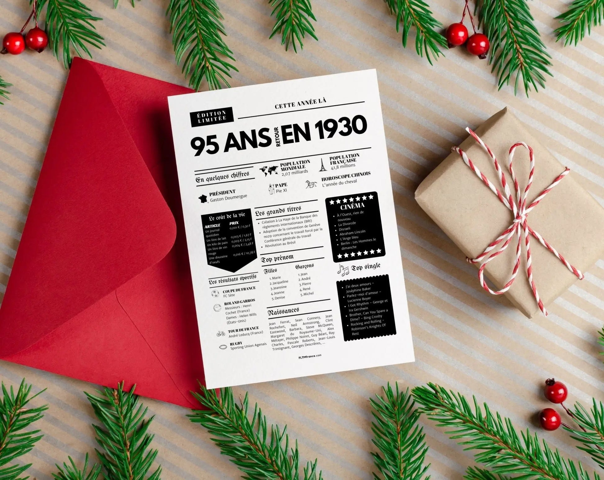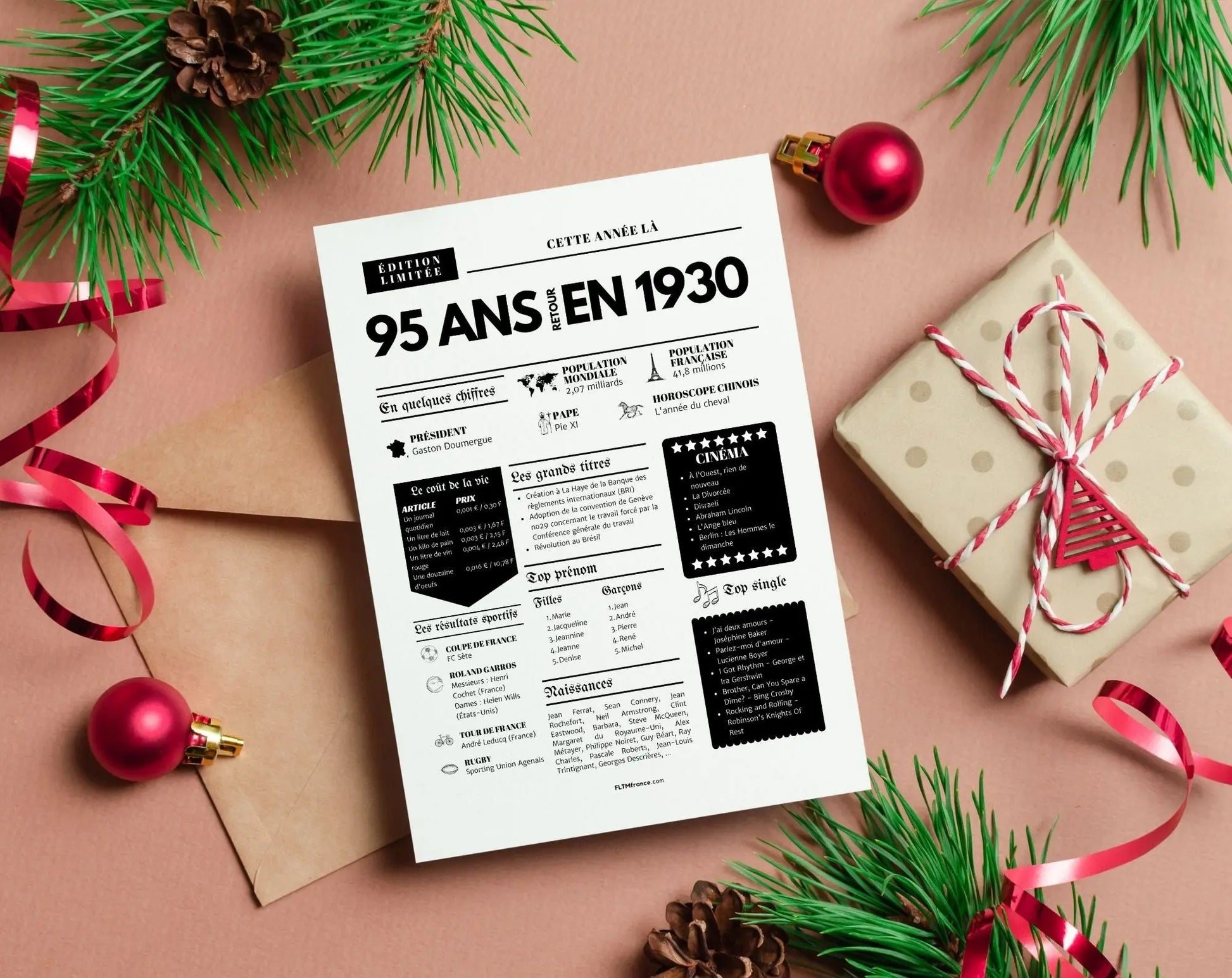 - Personnes nées en 1930 : Un cadeau unique et personnalisé pour leurs 95 ans.