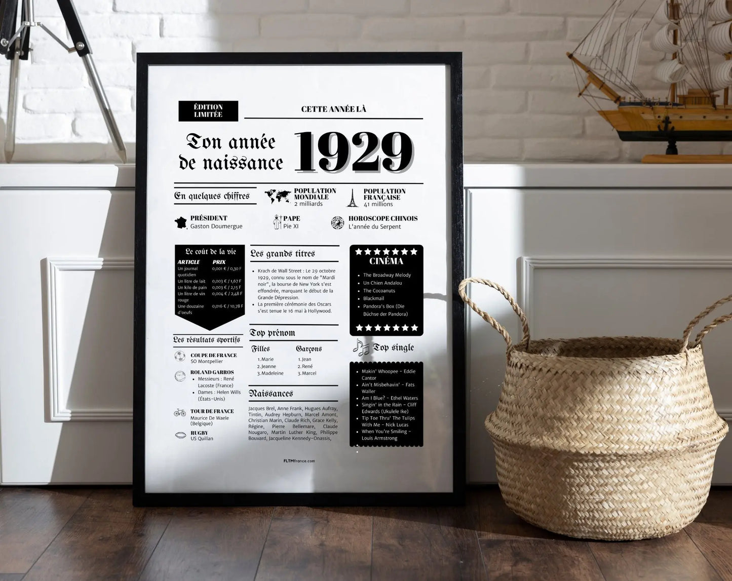 Notre affiche de l'année de naissance 1929 est conçue avec soin pour offrir une qualité exceptionnelle. Chaque détail est pensé pour raviver des souvenirs et offrir une expérience unique. Que ce soit pour offrir ou pour décorer votre intérieur, cette affiche est un choix parfait.