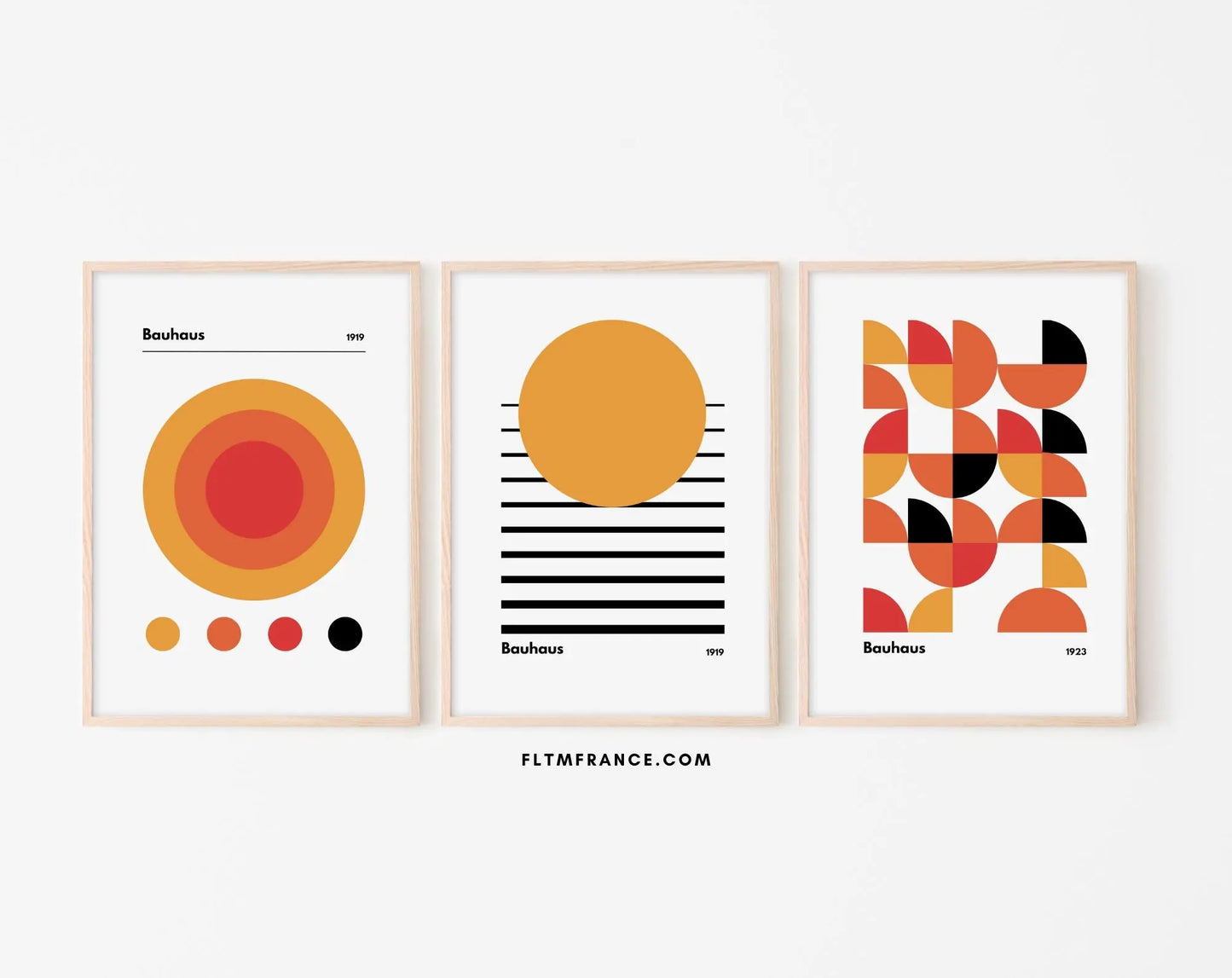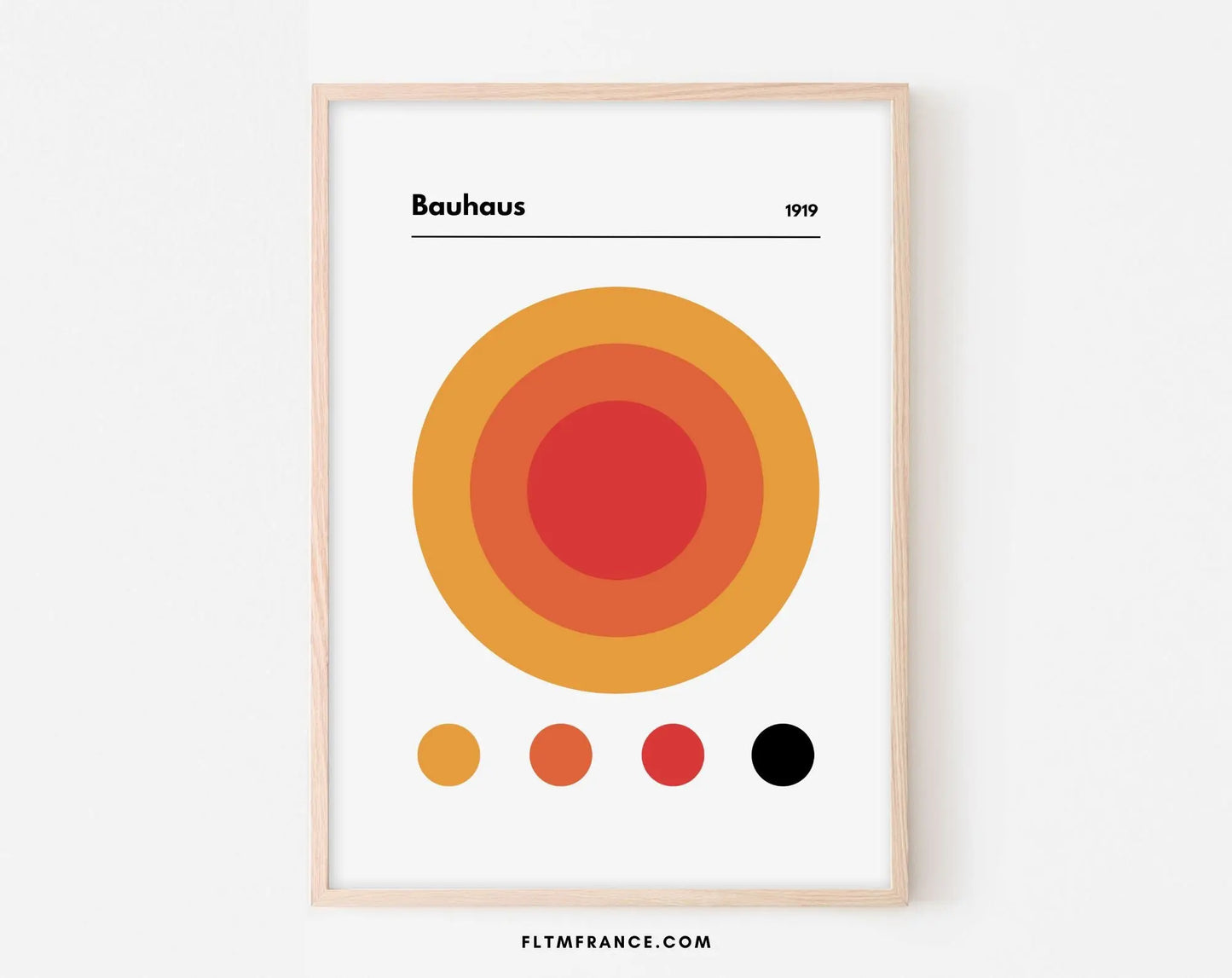 Découvrez notre superbe affiche inspirée du mouvement artistique emblématique du Bauhaus de 1919, l'affiche Bauhaus 1919 Cercle Rouge, Orange et Jaune