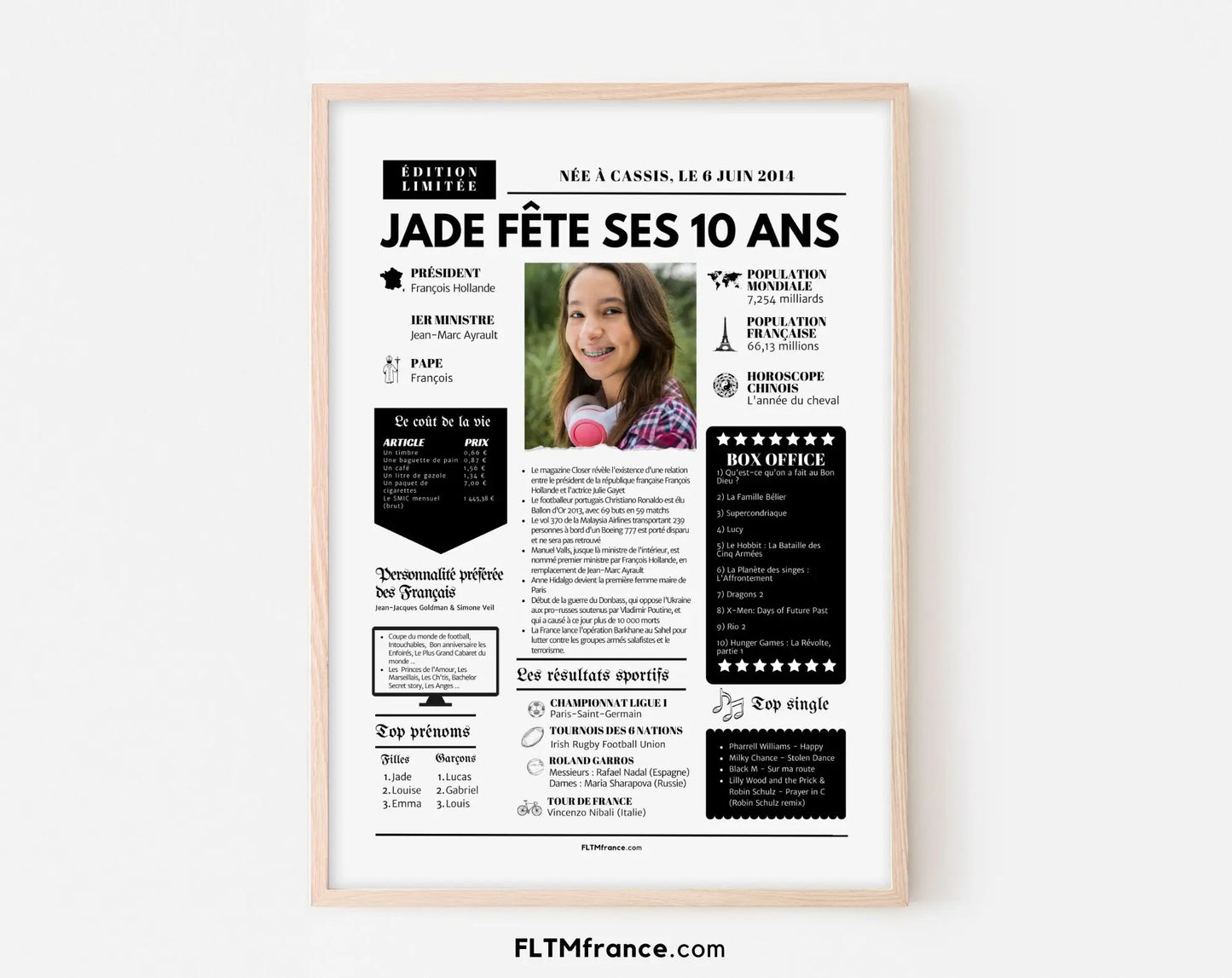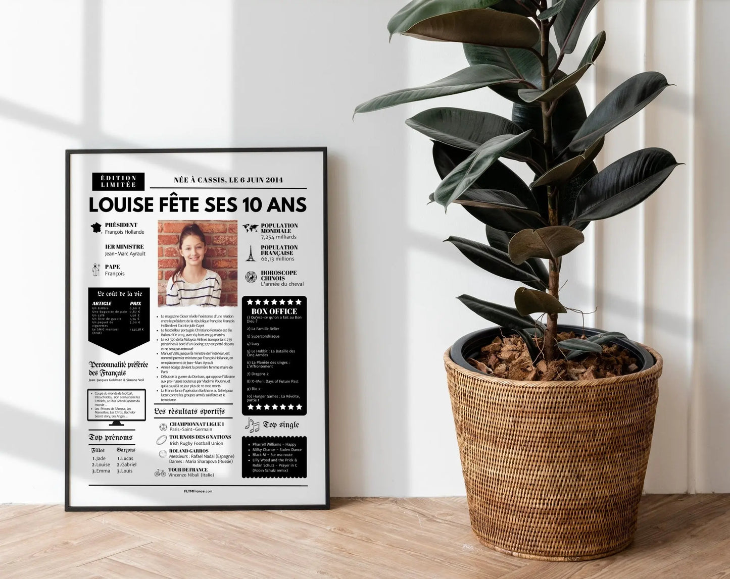 Affiche personnalisée anniversaire 10 ans - Année de naissance