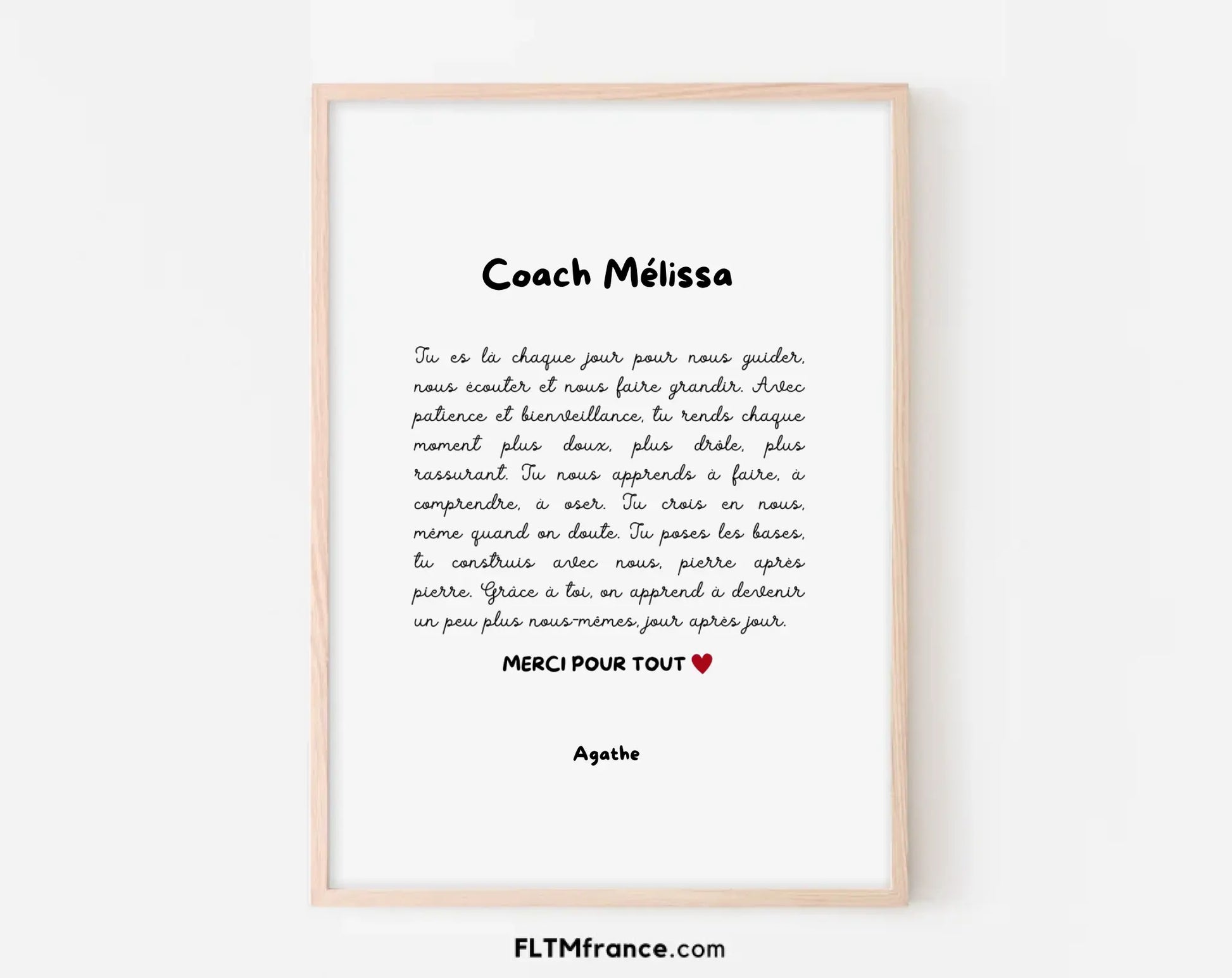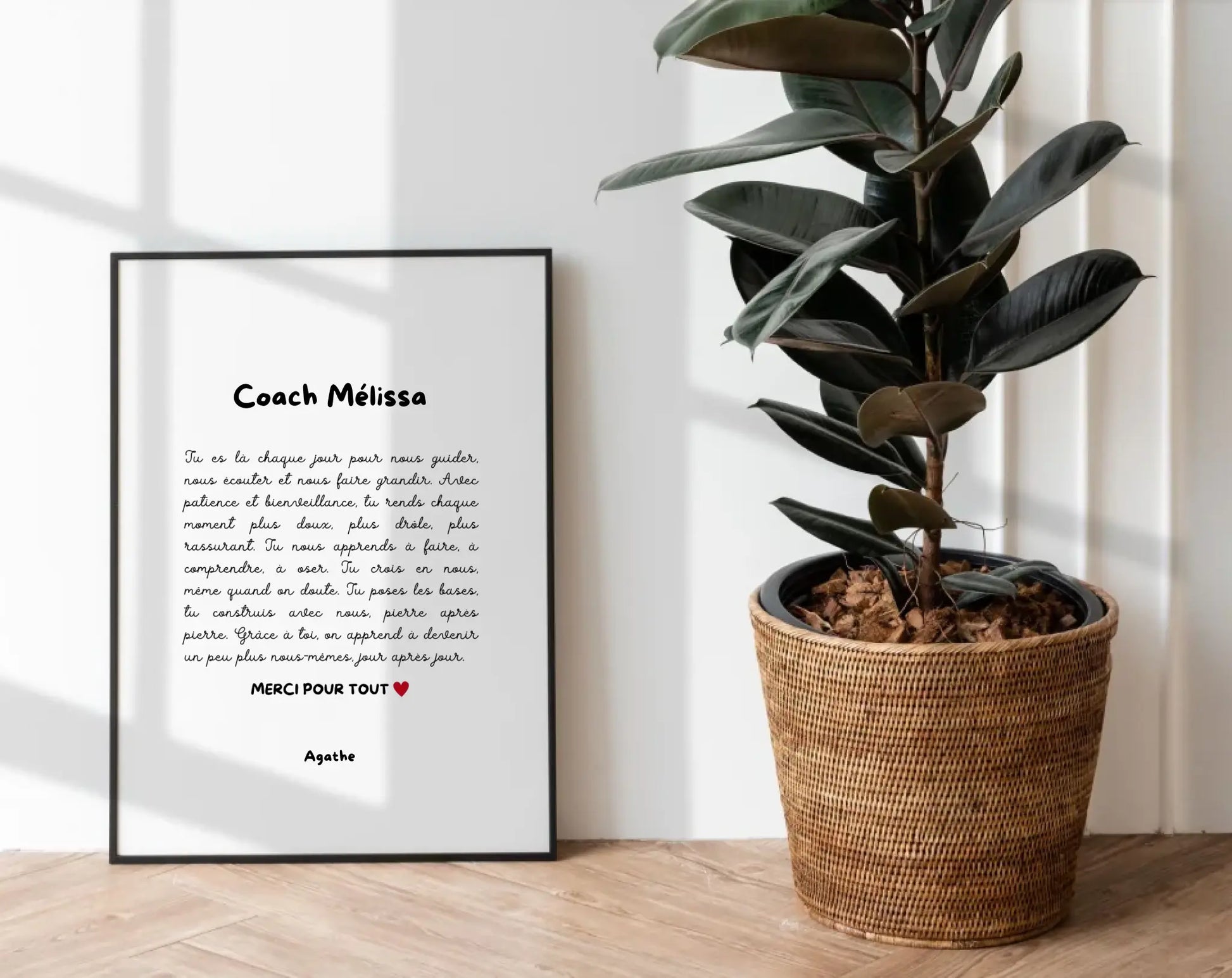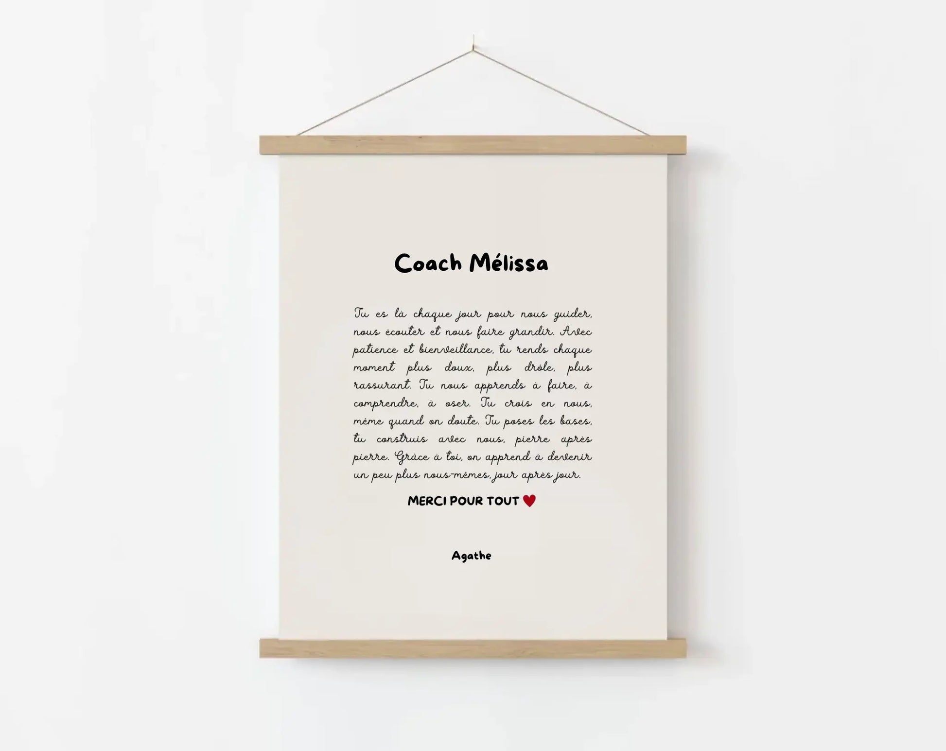 Offrez un cadeau symbolique et personnalisé à la personne qui vous a motivé(e), encouragé(e) et accompagné(e) toute l’année. Que ce soit un coach sportif, un préparateur physique, un coach de vie ou un mentor, cette affiche de remerciement pour Coach personnalisée à imprimer est un geste fort pour dire merci avec le cœur.