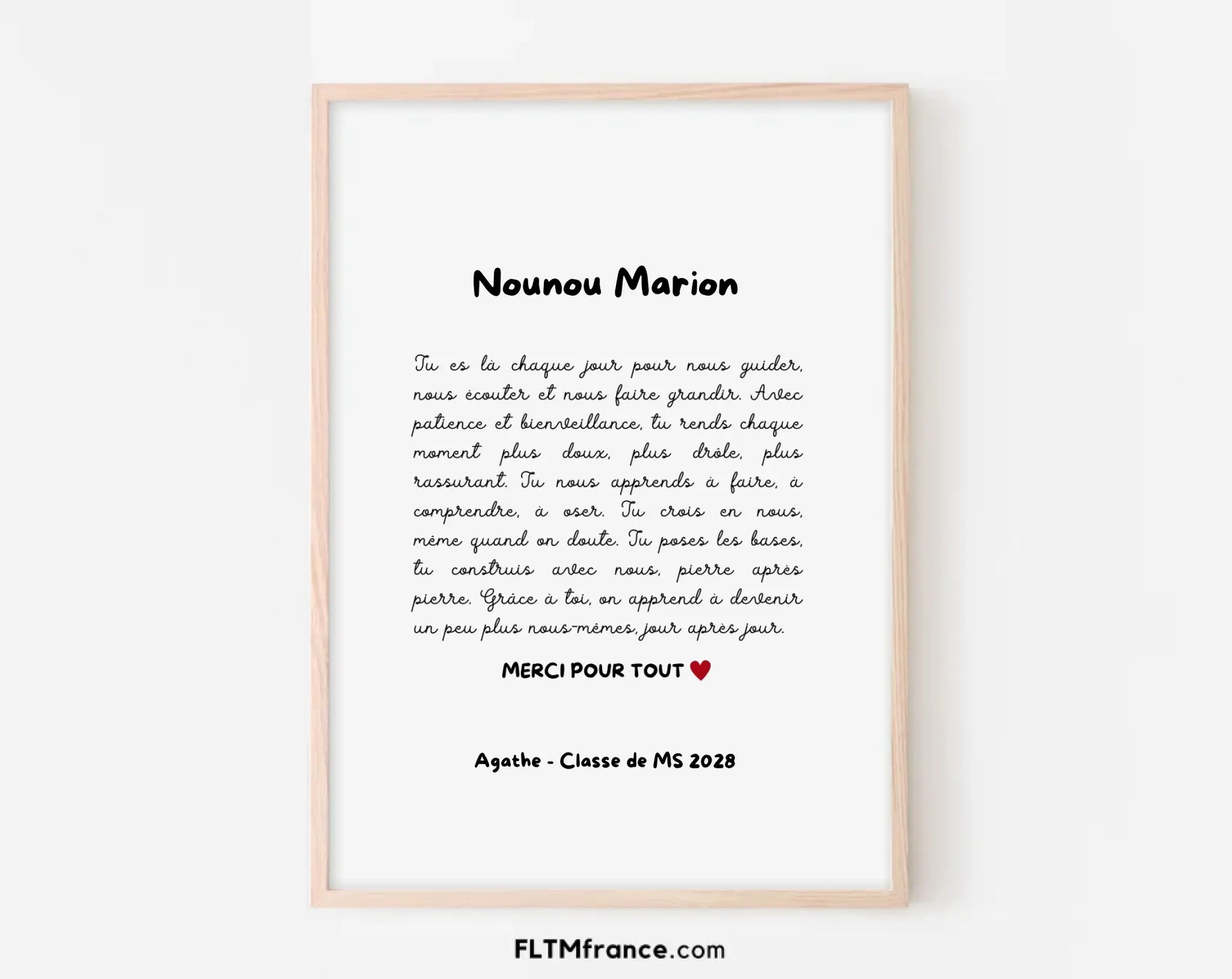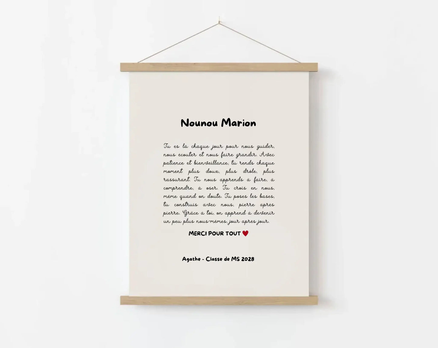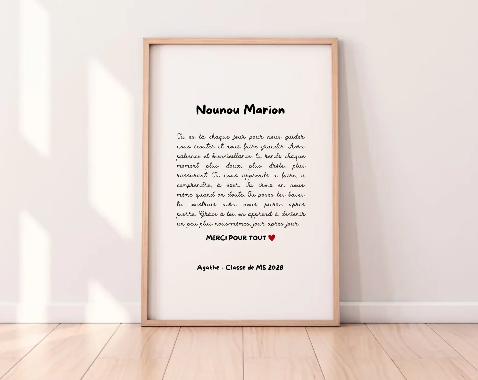 💕 Affiche de remerciement pour Nounou – Personnalisée avec prénom et message
