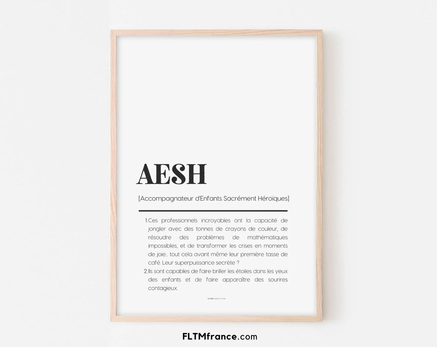 Affiche décorative définition AESH - Cadeau humoristique pour AESH