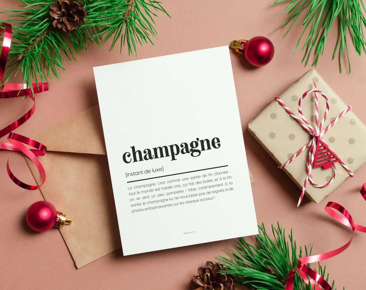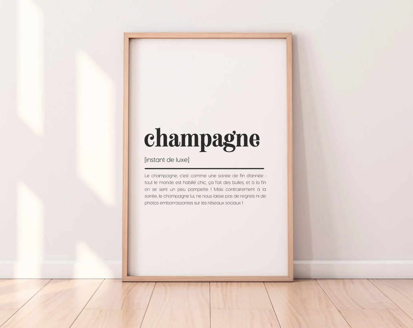 Affiche humoristique champagne - Cadeau original pour les amateurs de champagne