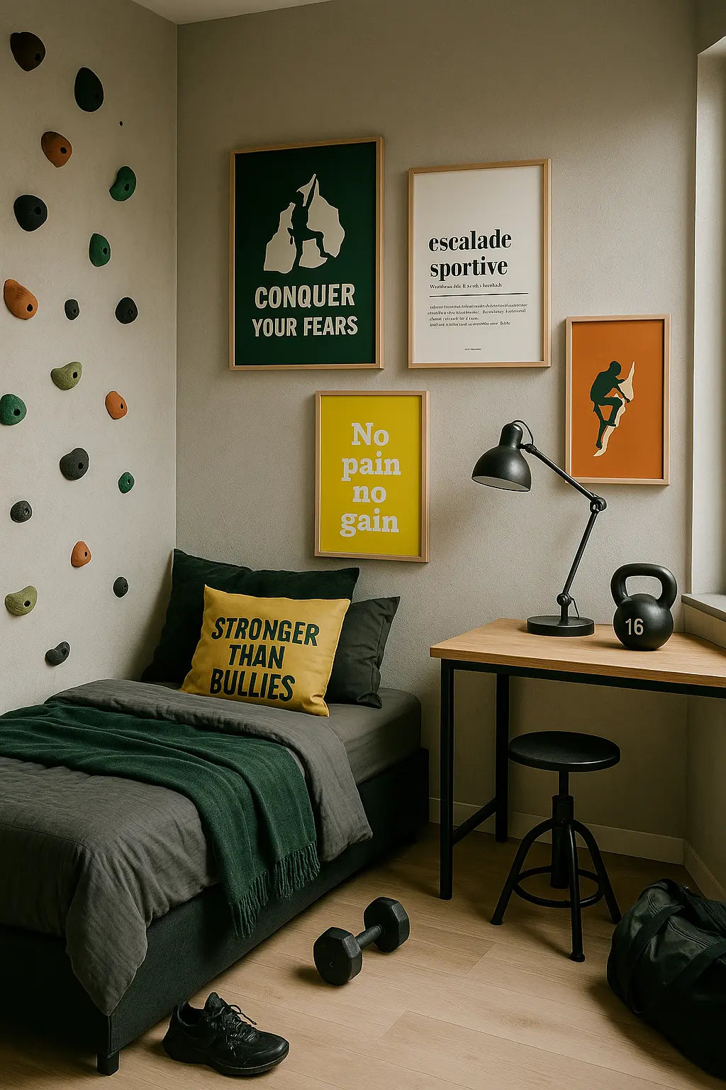 Dans une salle d’escalade, un home gym, un bureau ou une chambre