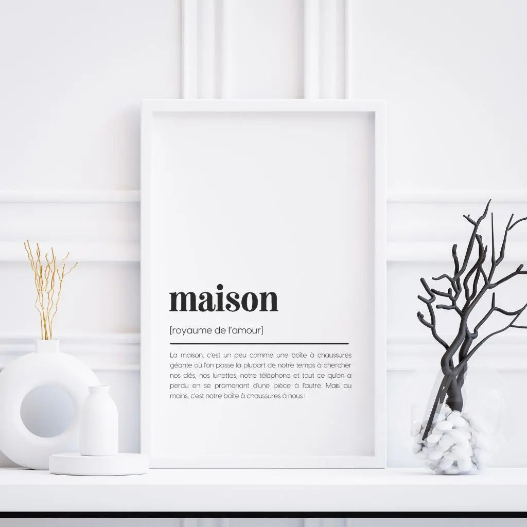 Découvrez notre affiche humoristique 'Définition Maison', le cadeau parfait pour célébrer une nouvelle maison ou pour ajouter une touche de gaieté à votre intérieur. Conçue par FLTMfrance, cette affiche allie humour et élégance pour créer une décoration murale unique. Facile à imprimer, elle s'intègre harmonieusement dans toute maison, apportant un sourire et une touche personnelle à vos murs. Idéale pour les pendaisons de crémaillère, comme cadeau de bienvenue, ou simplement pour exprimer votre amour pour la maison avec un brin d'humour. Sa conception artistique et son message amusant en font une addition charmante à toute pièce de votre domicile.