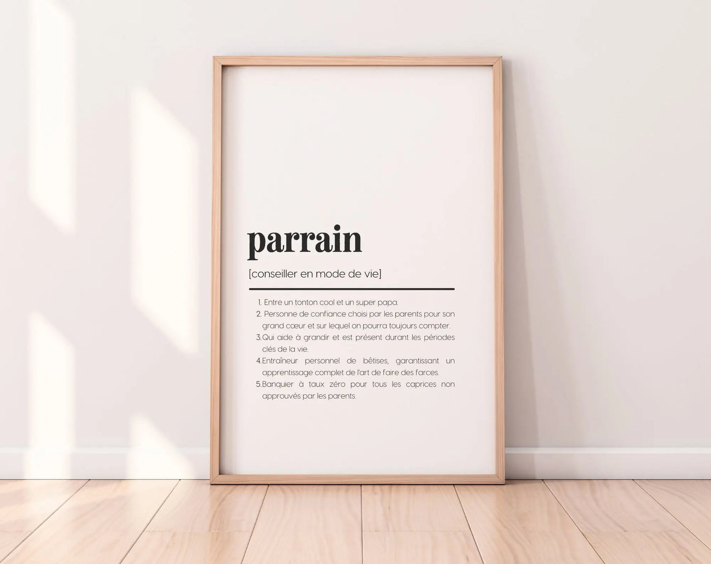 Affiche définition parrain : une idée cadeau unique et humoristique