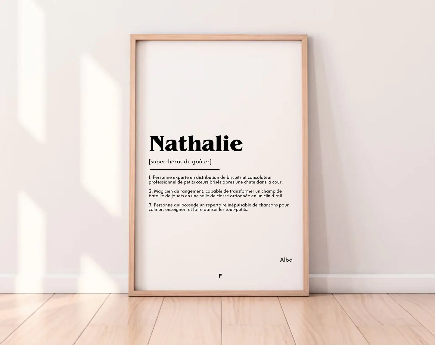 Une affiche au style dictionnaire, entièrement personnalisable, qui décrit avec tendresse et humour le rôle précieux d’une ATSEM dans la vie des enfants.