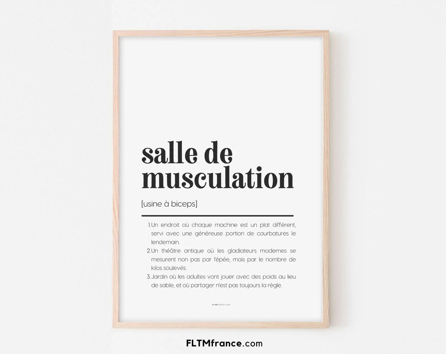 Transformez votre espace d'entraînement avec notre affiche définition salle de musculation et atteignez de nouveaux sommets dans votre parcours de fitness. Découvrez aussi notre collection complète dans notre boutique FLTMfrance pour plus d'inspiration et de motivation.