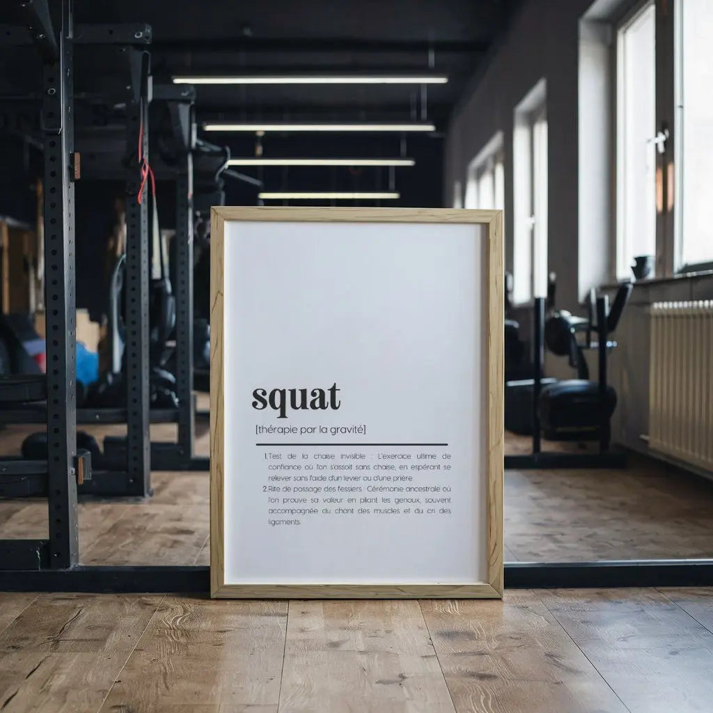 L'affiche squat n'est pas juste un simple décor; c'est une source d'inspiration et de motivation quotidienne. Elle rappelle l'importance de rester actif et de s'entraîner avec un sourire. Parfaitement adaptée à tous les espaces, elle est le cadeau idéal pour élever l'expérience d'entraînement de chaque passionné de fitness. Ajoutez une touche d'humour et d'inspiration à votre espace avec notre affiche squat humoristique.