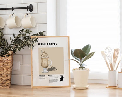 Ajoute une touche d’élégance et de gourmandise à ta cuisine ou ton bar avec cette affiche décorative "Irish Coffee" ! Cette affiche met en avant la recette détaillée du célèbre cocktail à base de café et de whisky, parfaite pour les amateurs de boissons chaudes réconfortantes.