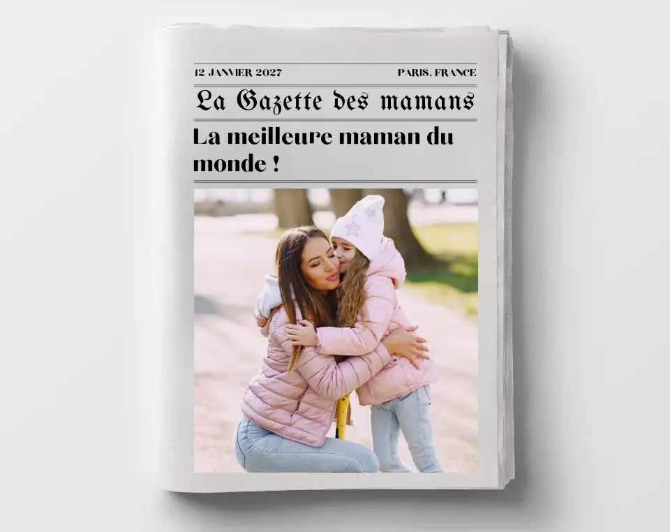 Surprenez votre maman avec notre Affiche La Gazette des Mamans, une création humoristique et personnalisée qui célèbre tout ce qui la rend unique. Inspirée des gazettes d’époque, cette affiche au style rétro met en lumière les moments drôles, les anecdotes familiales, et les qualités exceptionnelles de votre mère. Parfaite pour un cadeau de fête des mères, un anniversaire, ou pour tout simplement lui faire plaisir, cette affiche allie humour et émotion pour la faire sourire et lui montrer à quel point elle est importante.