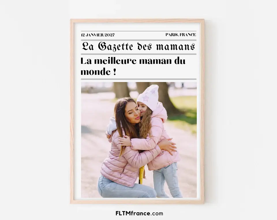 Idée très originale et pleine de charme. (Affiche La Gazette des Mamans - Cadeau rétro et personnalisé pour maman)