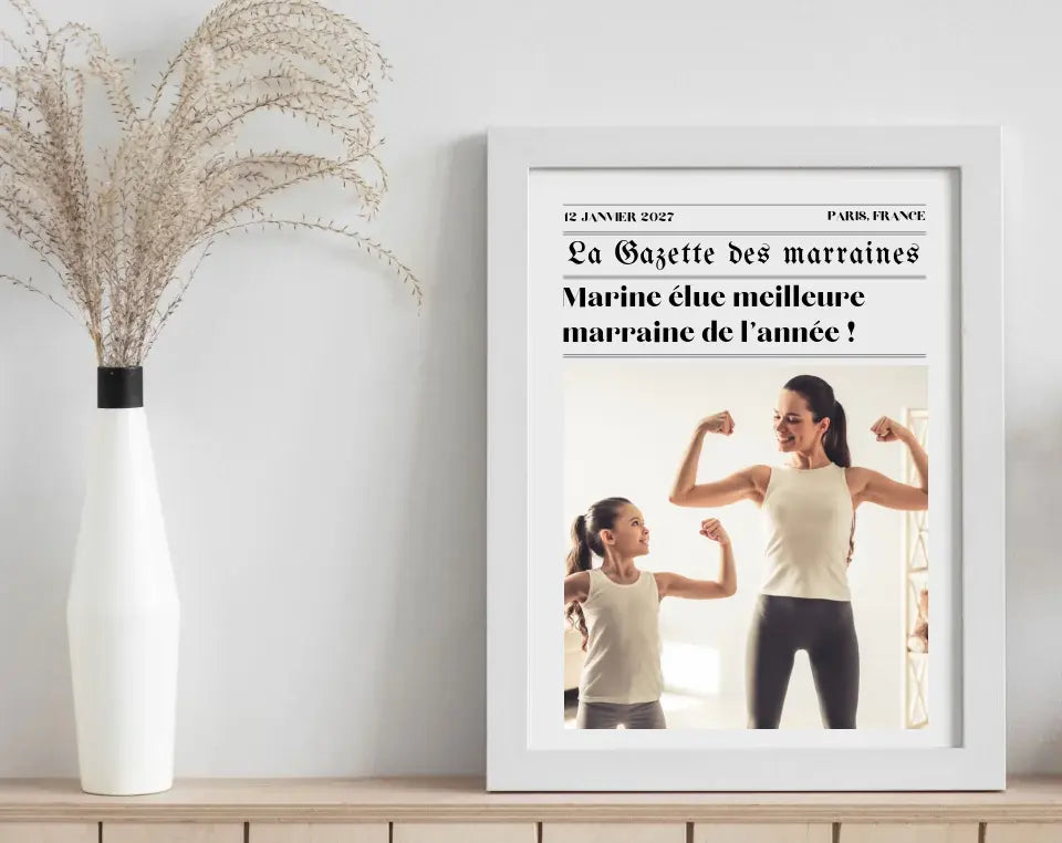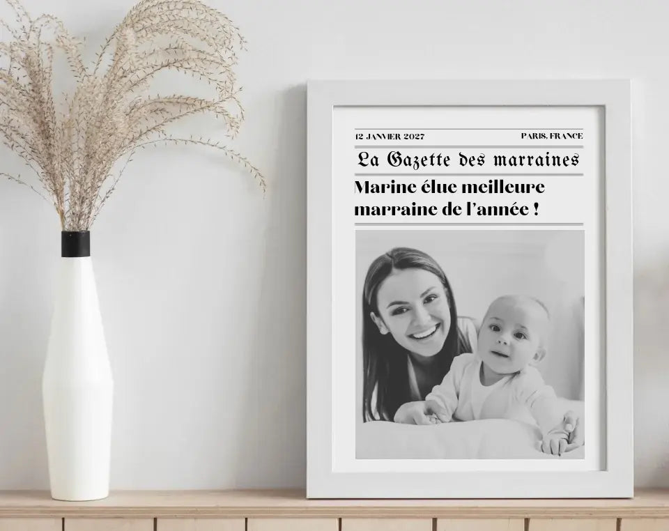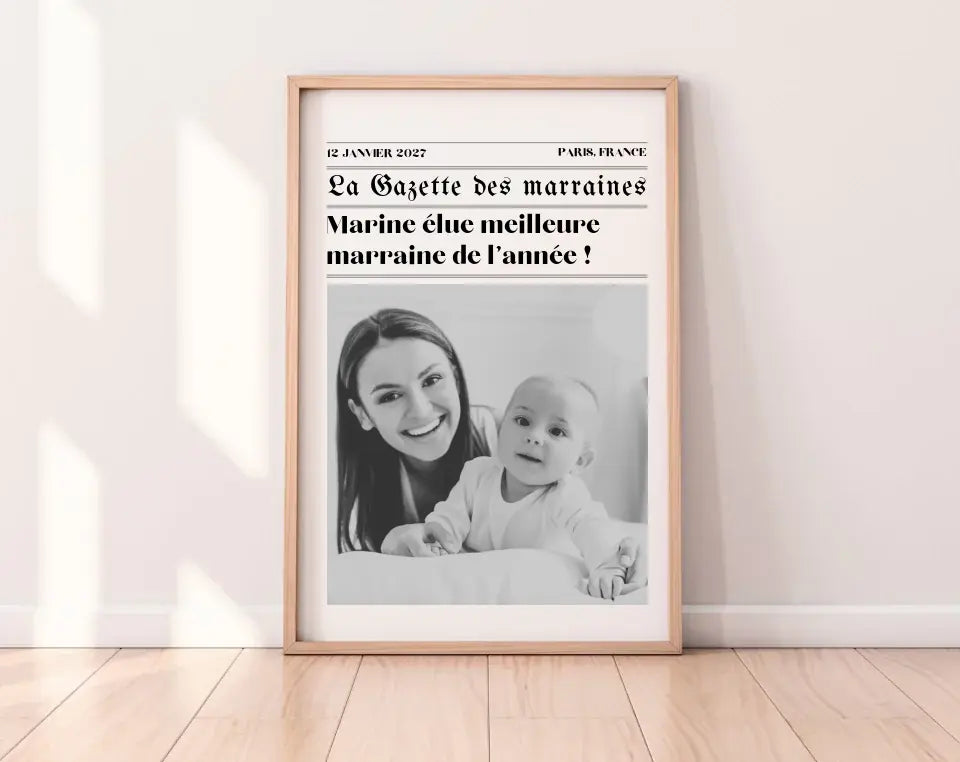 Affiche La Gazette des Marraines - Poster Humoristique et Personnalisé pour Marraine