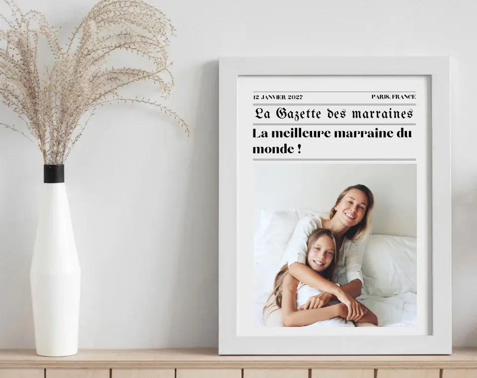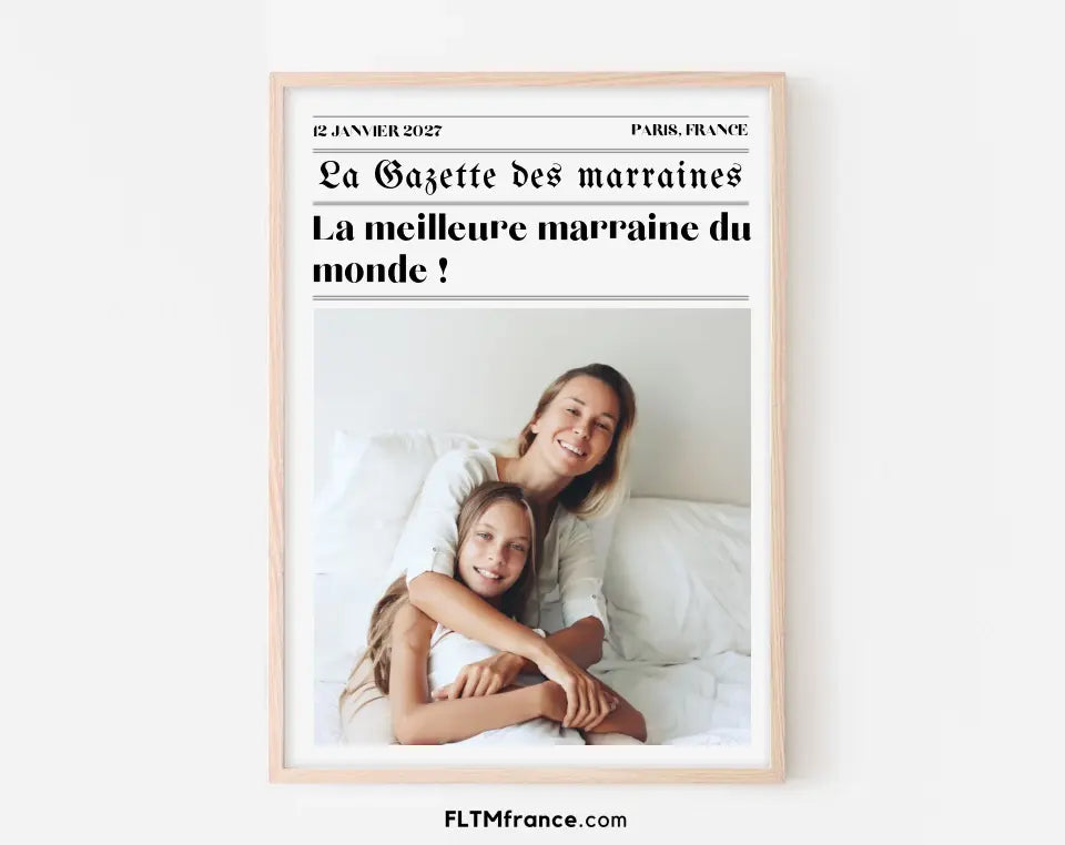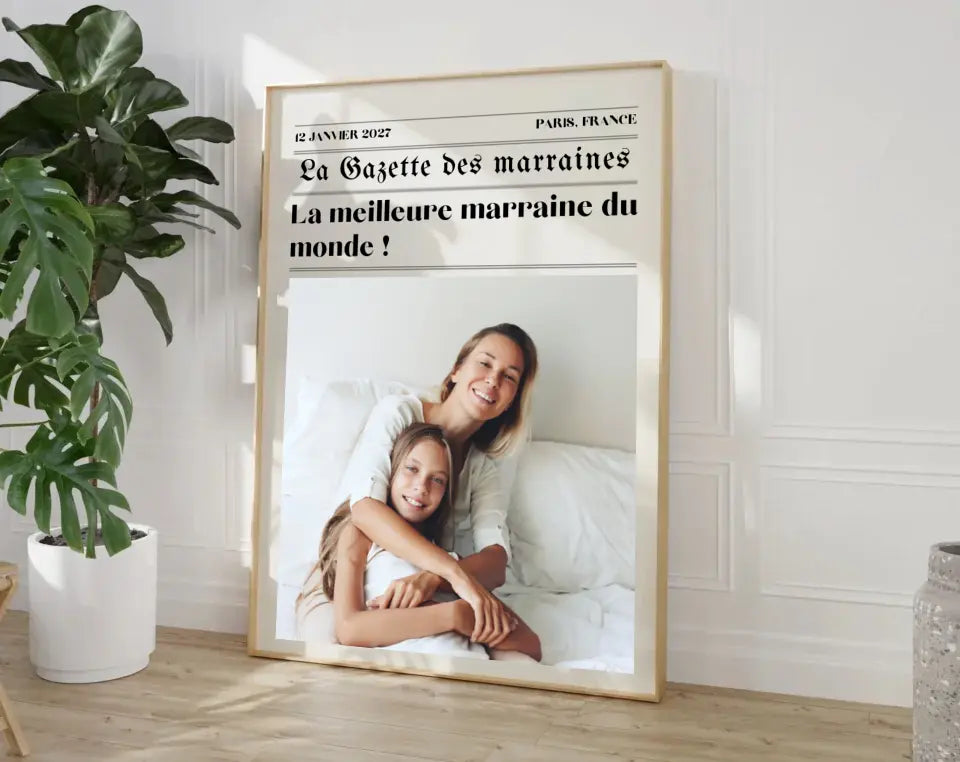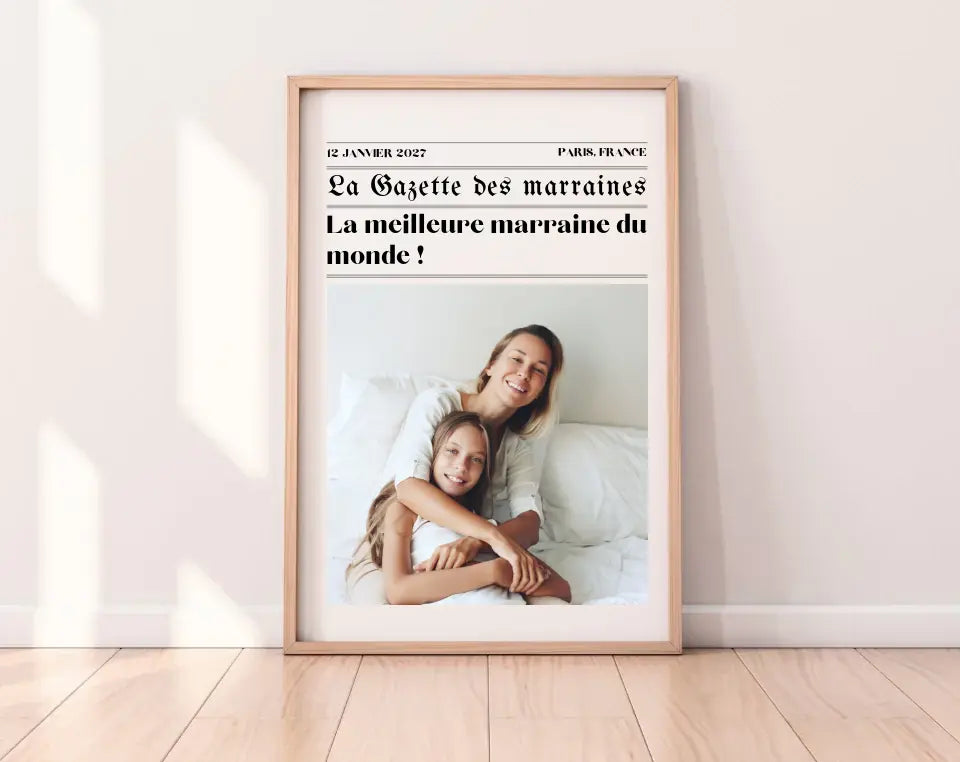 L'Affiche La Gazette des Marraines est une manière originale de remercier votre marraine pour tout ce qu’elle représente. Avec des détails personnalisés et un style unique, cette affiche capture l’amour et la gratitude que vous ressentez pour elle.