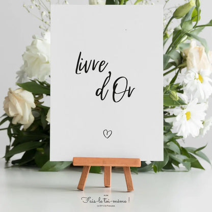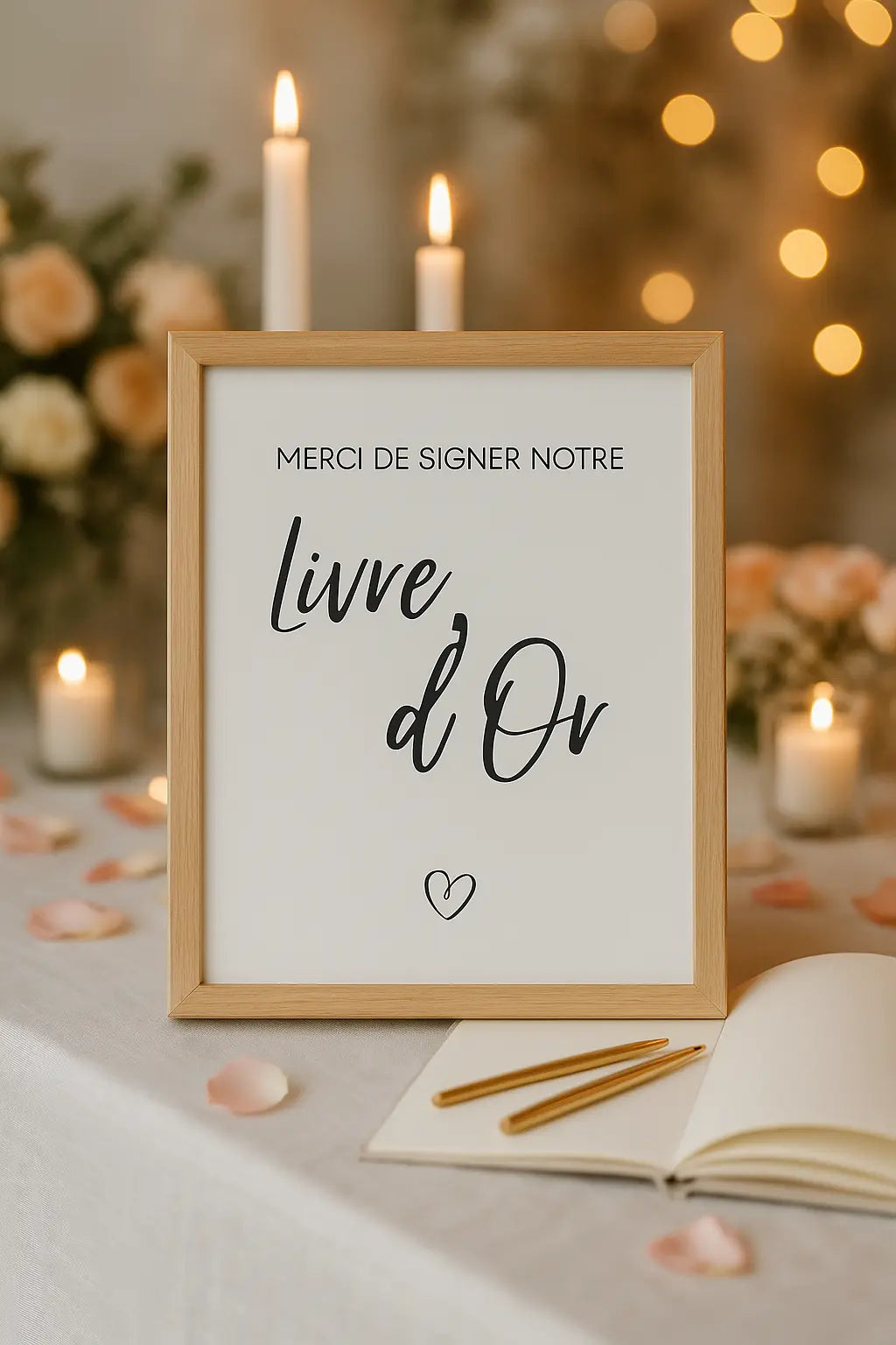 Avec cette affiche “Livre d’or”, tu crées un espace symbolique et plein de douceur où les invités prennent le temps de laisser un petit mot pour l’éternité. Un détail simple mais puissant, qui donne encore plus de sens et d’émotion à ta journée spéciale.