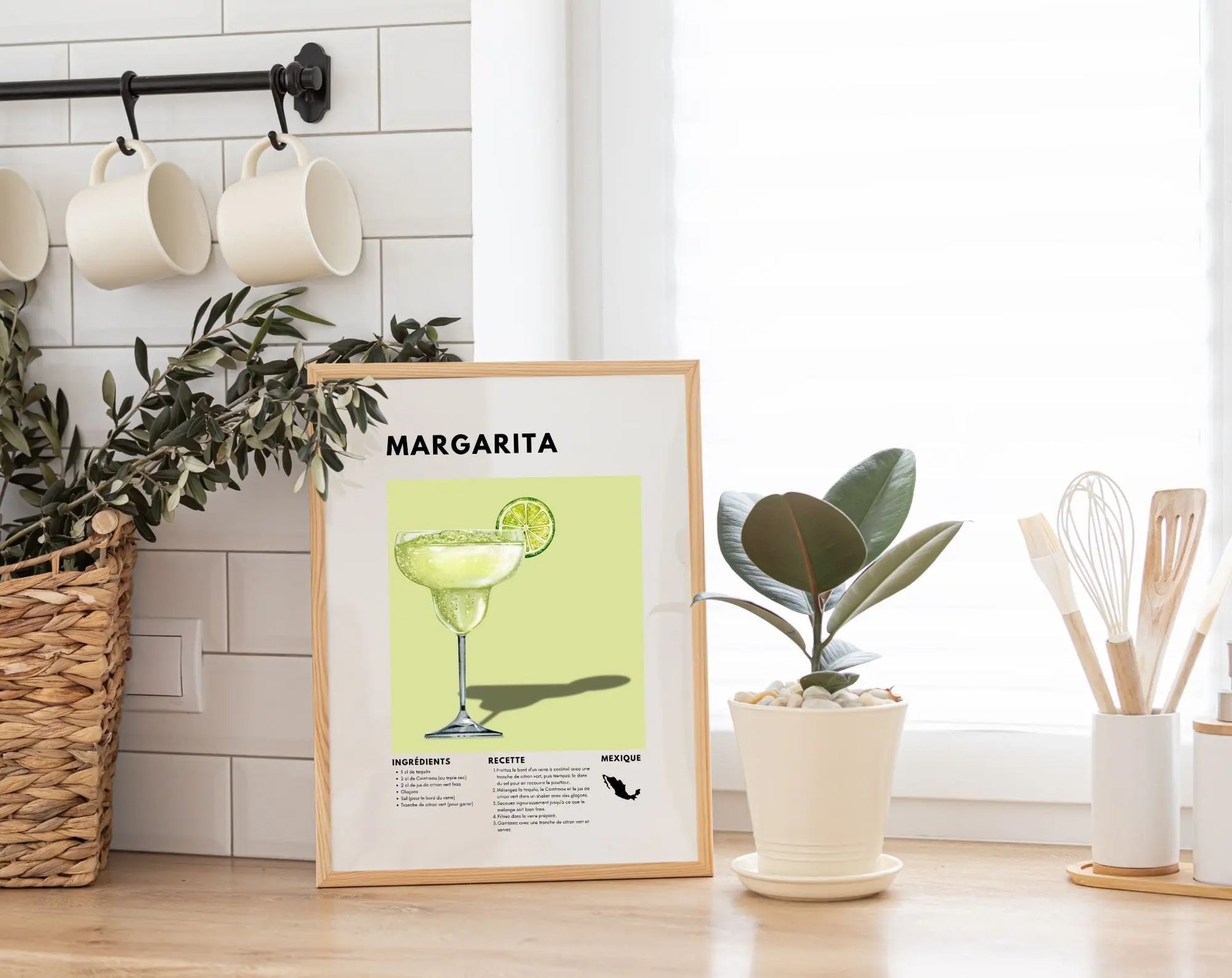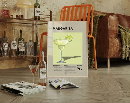 Ajoute une touche ensoleillée et festive à ta décoration avec cette affiche décorative "Margarita", qui met en avant la recette du célèbre cocktail à base de tequila, de citron vert et de triple sec. Symbole des soirées estivales et des ambiances mexicaines, la Margarita est un incontournable pour tous les amateurs de cocktails rafraîchissants. 🍋🍸