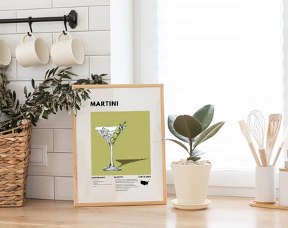 Ajoute une touche chic et sophistiquée à ta décoration avec cette affiche décorative "Martini", qui met en avant la recette du célèbre cocktail à base de gin et de vermouth. Symbole du raffinement et des soirées glamour, le Martini est un incontournable des bars à cocktails et des amateurs de mixologie. 🍸✨