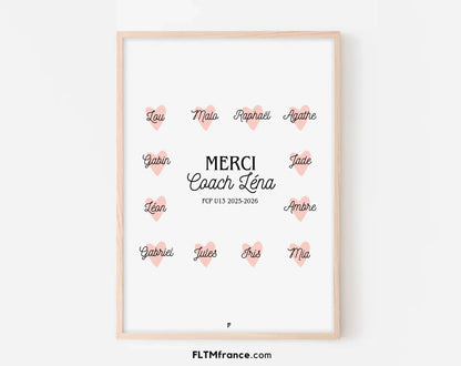 Affiche Merci coach et coeurs personnalisée