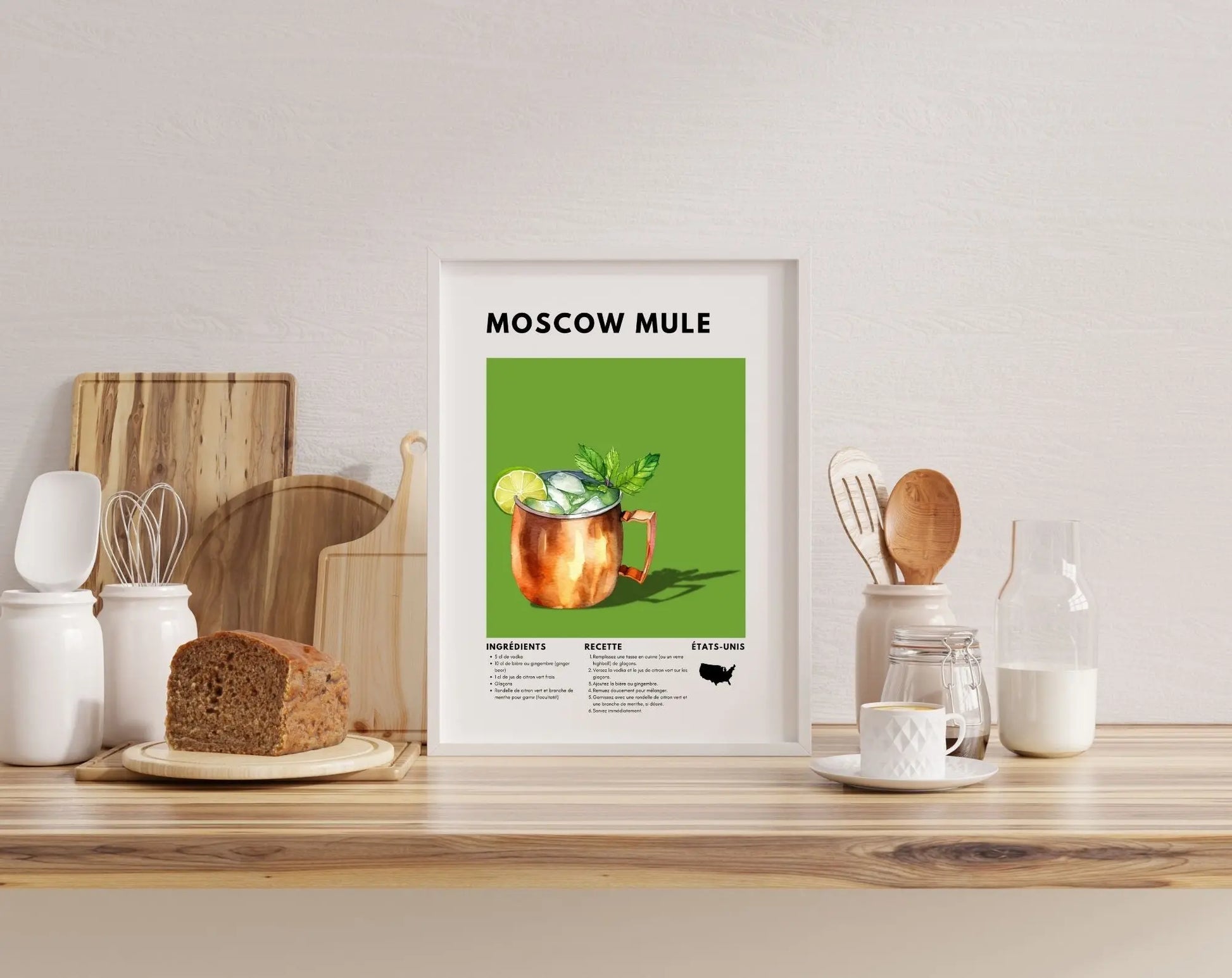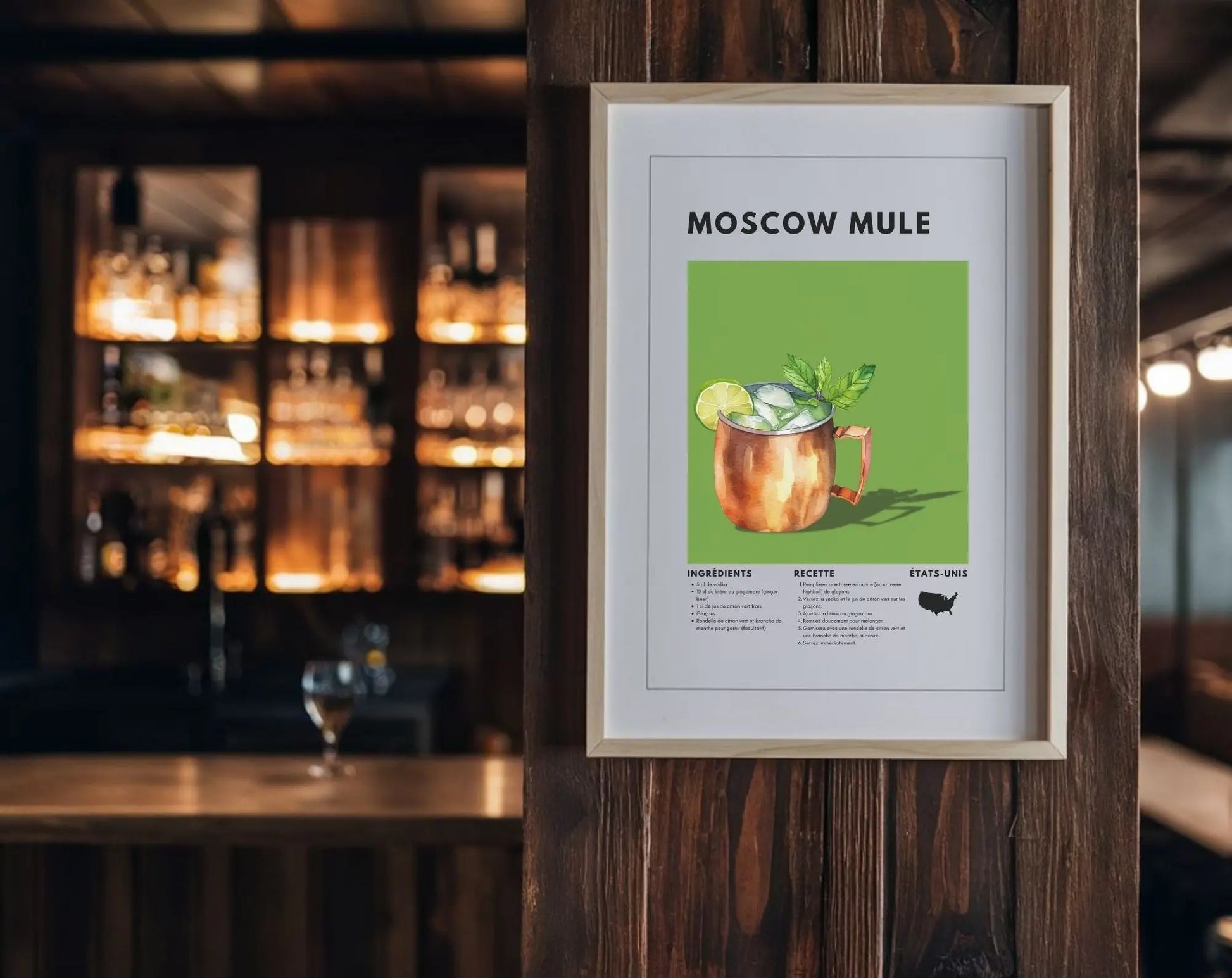 L’affiche Moscow Mule a été adoptée immédiatement, parfaite pour notre déco.