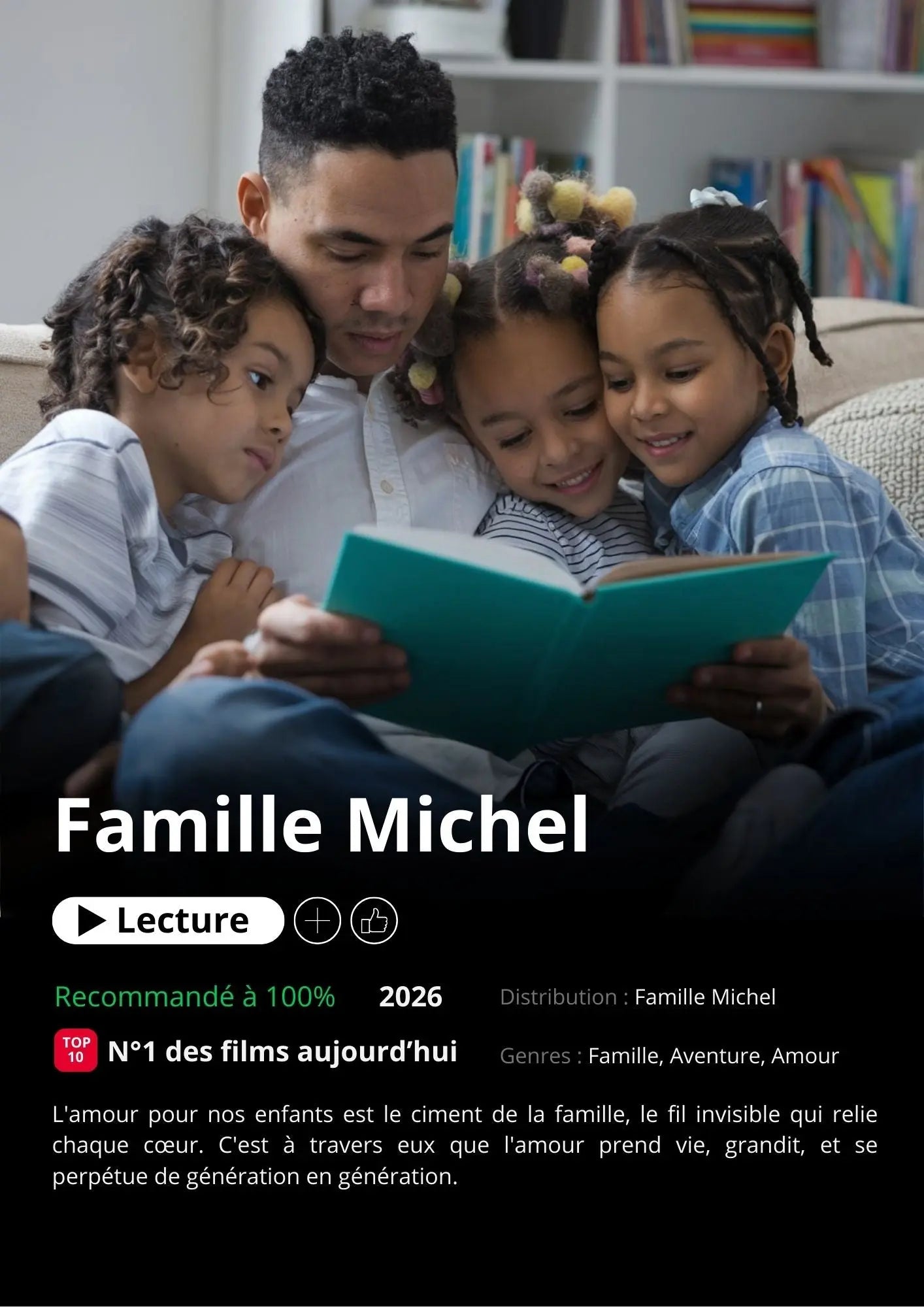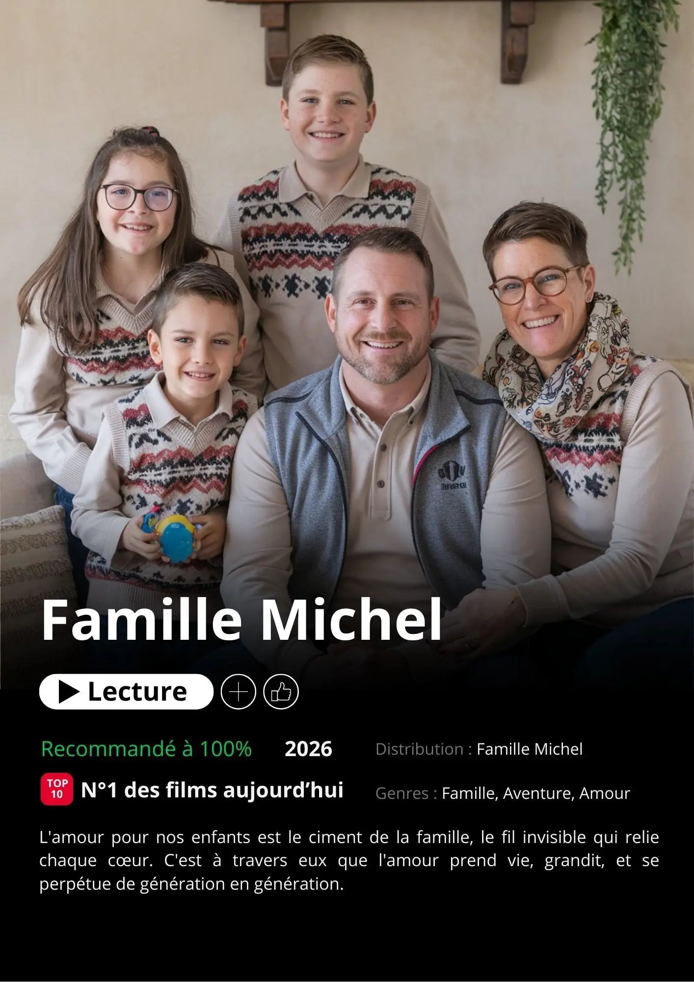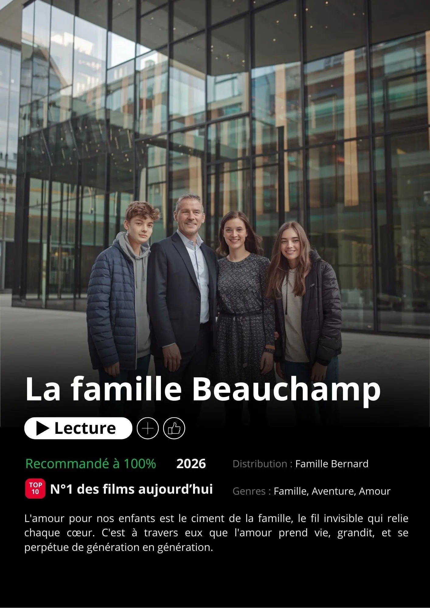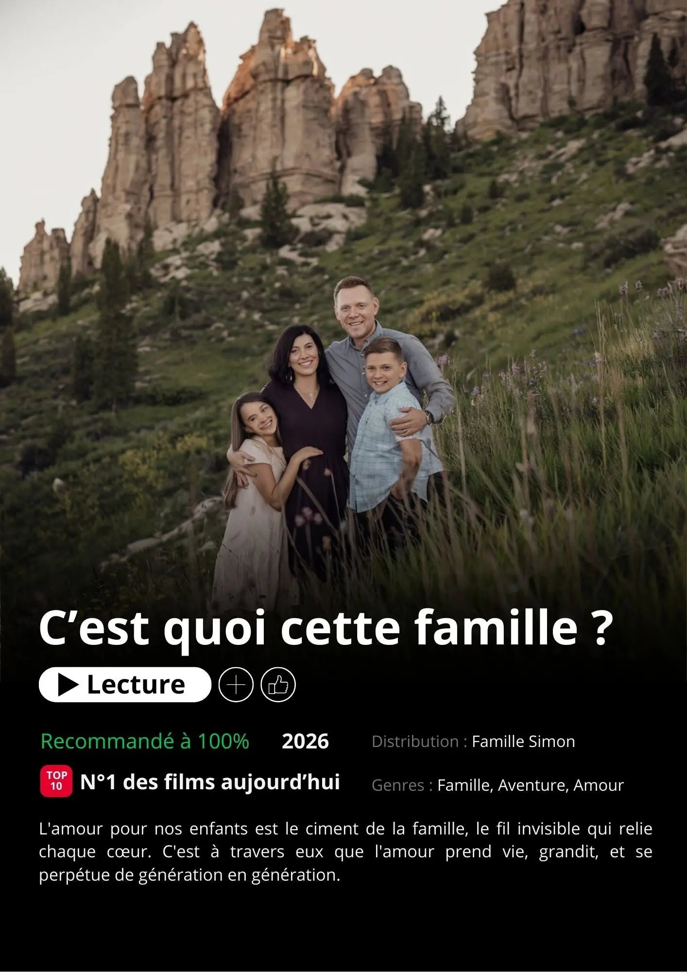 Affiche Netflix famille personnalisée : Une affiche qui met en avant la famille comme les stars d'une série Netflix. Personnalisable avec les noms des membres de la famille et leurs rôles.