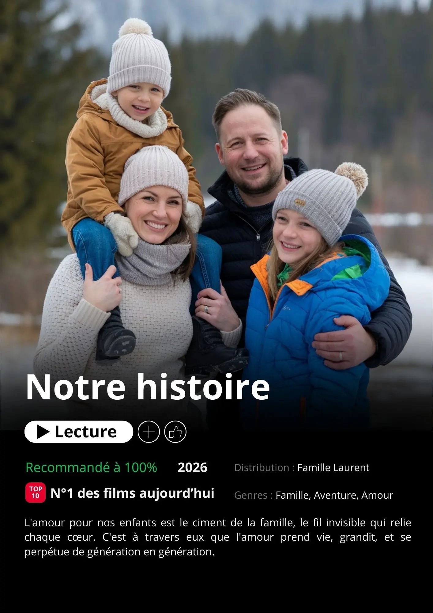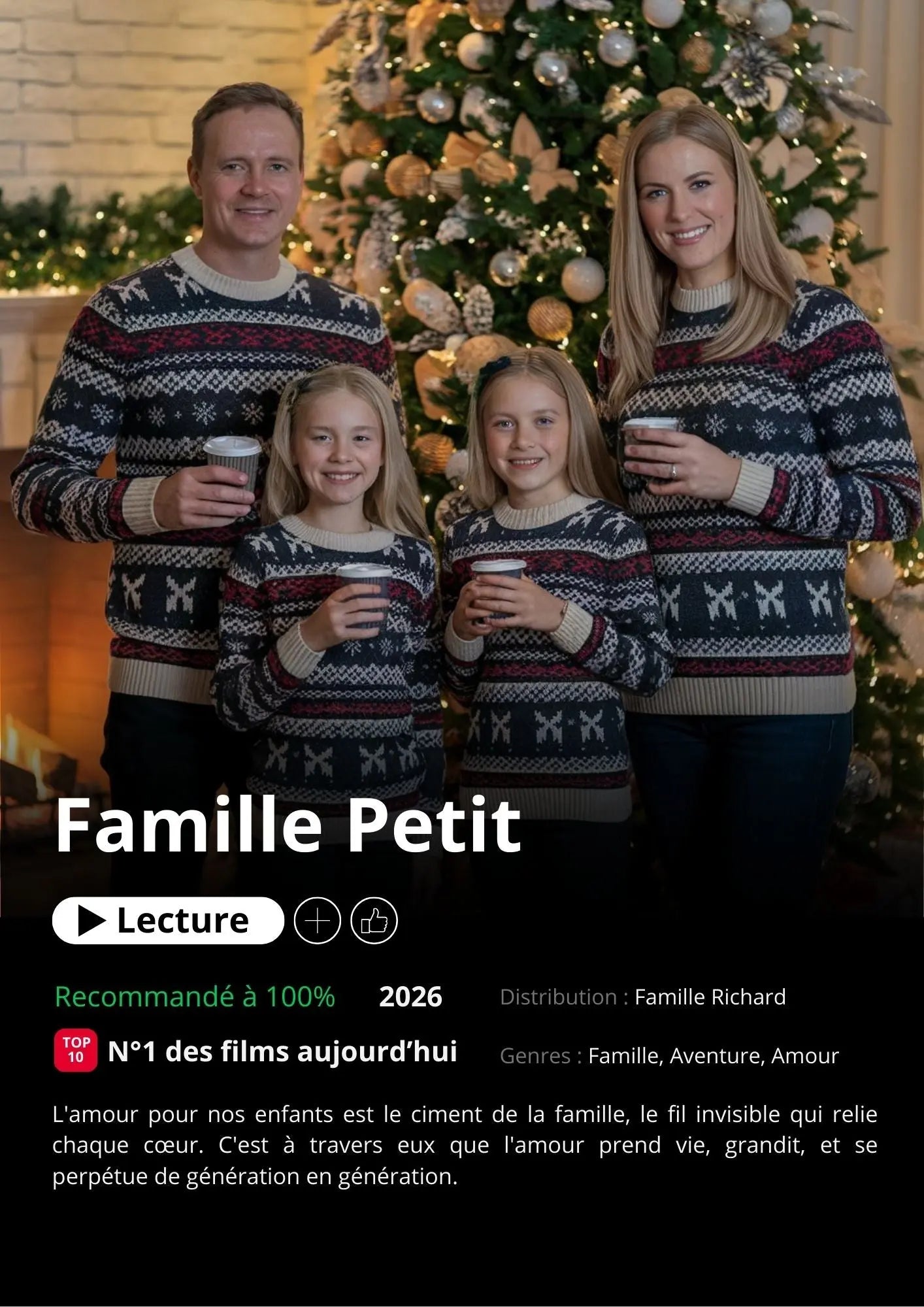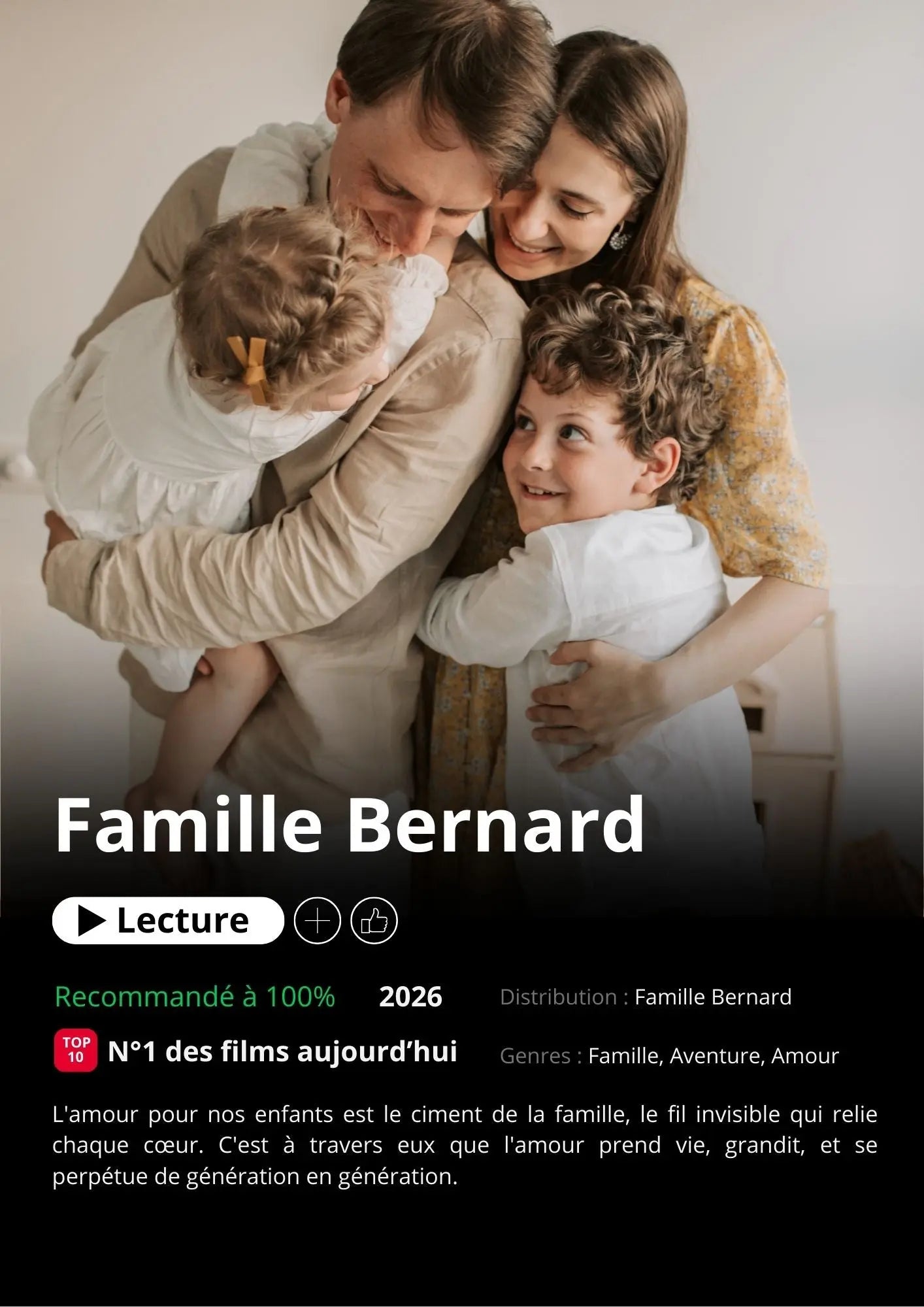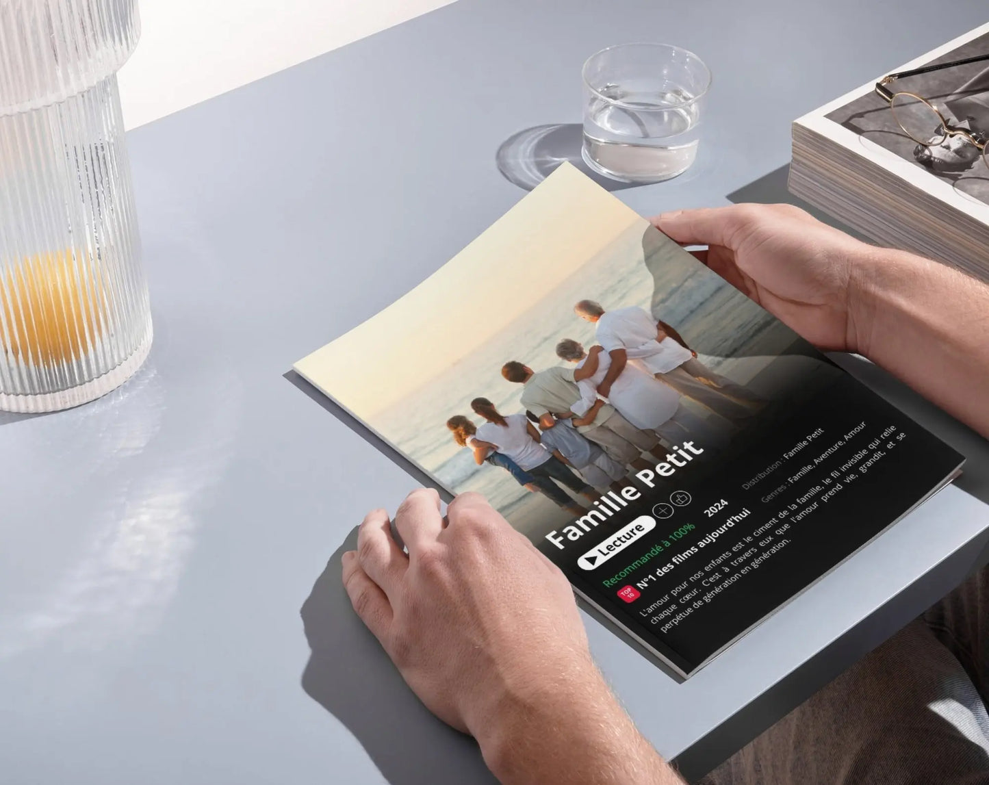 Immortalisez l'esprit de votre famille avec notre Affiche Netflix Famille Personnalisée ! Inspirée des célèbres affiches de films Netflix, cette création unique vous permet de transformer votre famille en protagonistes d’un film familial inoubliable. Que ce soit pour célébrer une occasion spéciale, comme un anniversaire ou une réunion de famille, ou simplement pour orner votre maison d’un souvenir original, cette affiche est le cadeau parfait pour capturer les moments précieux passés ensemble.