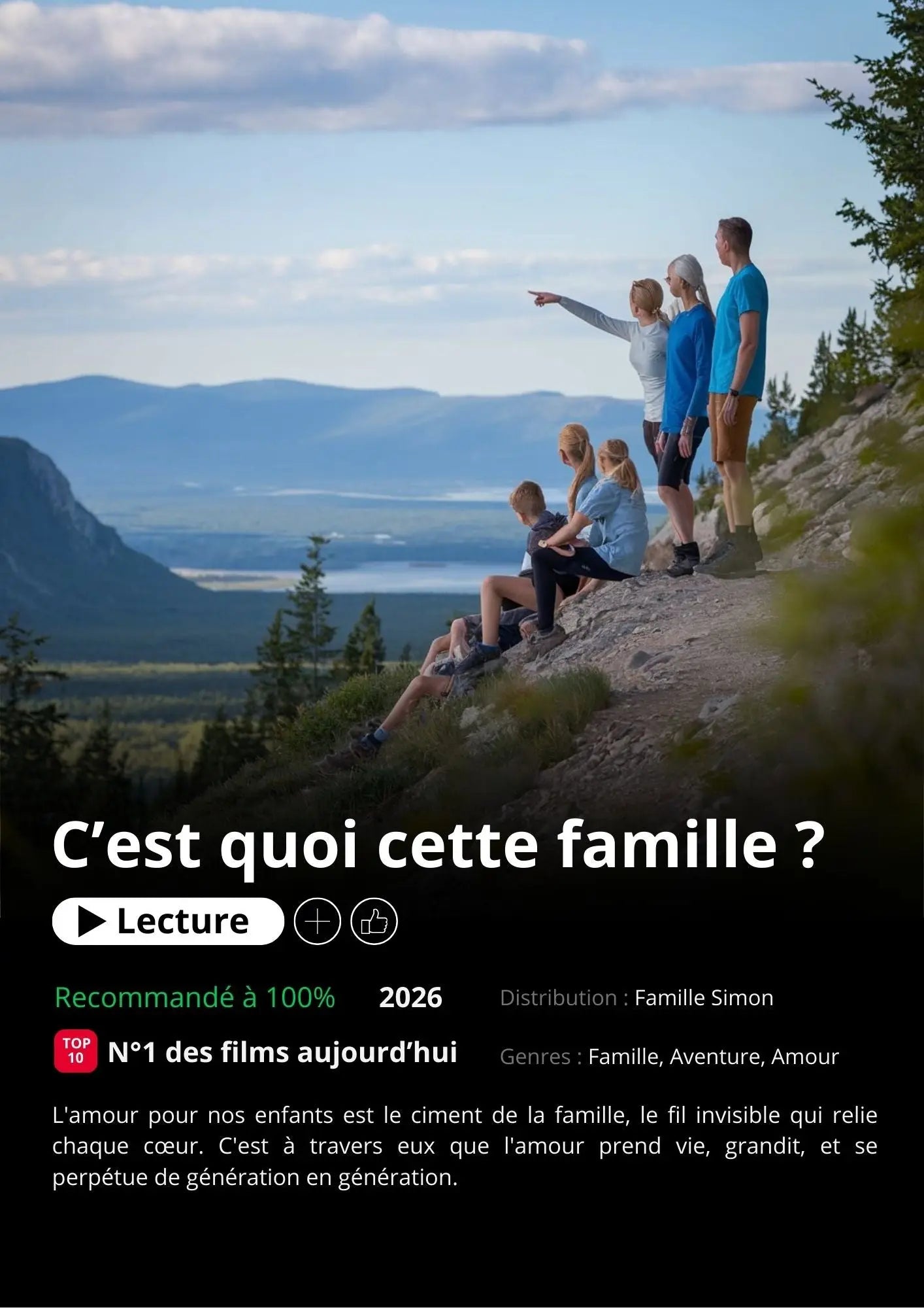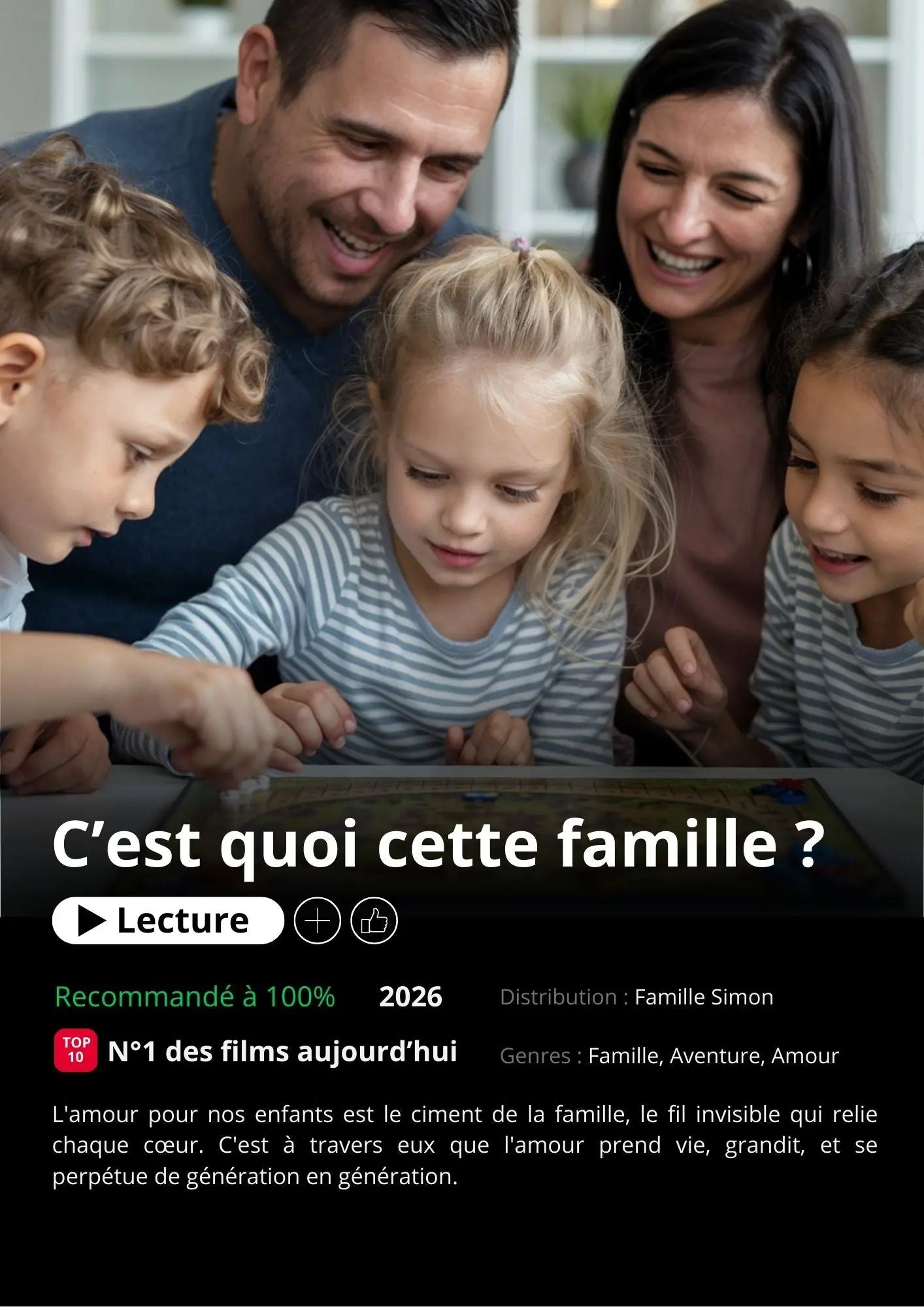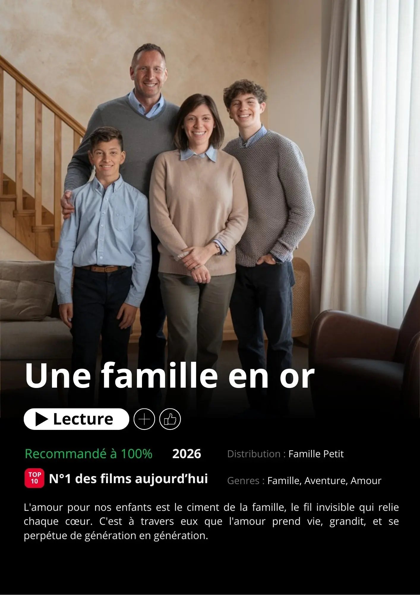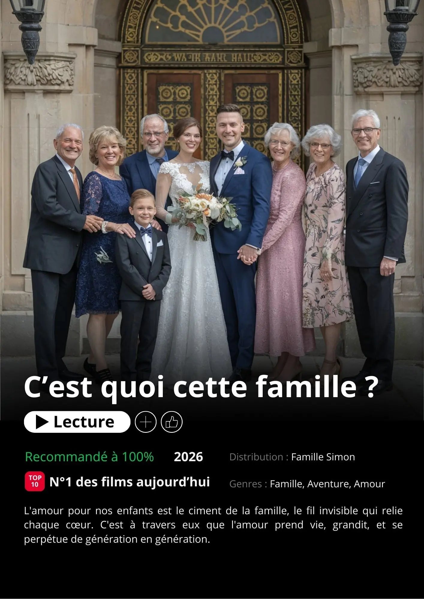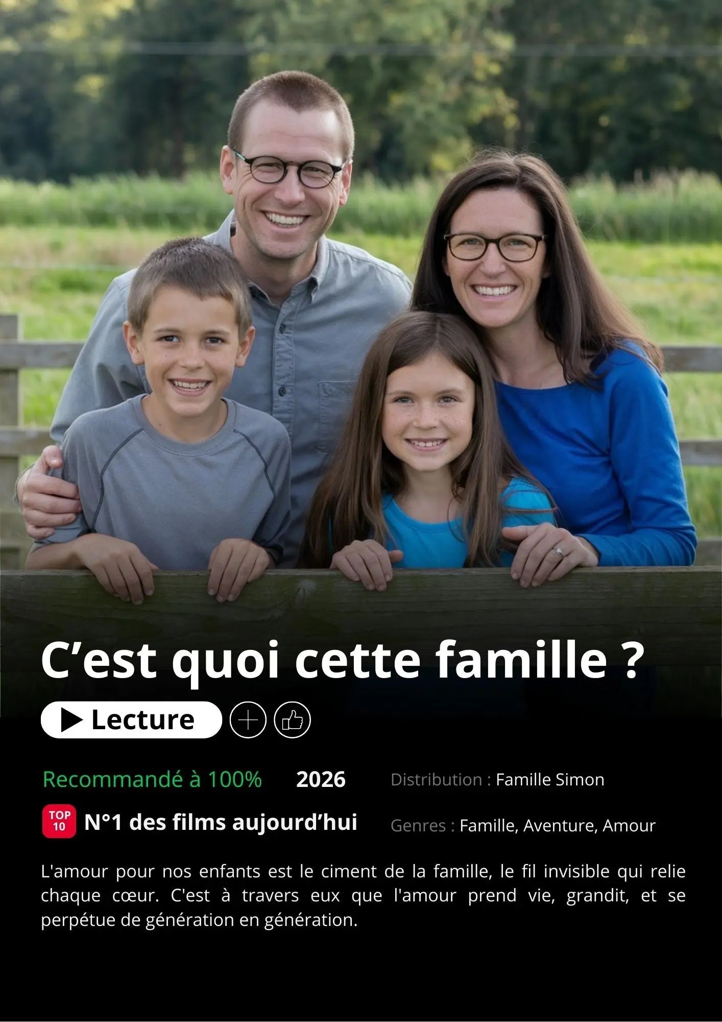 Immortalisez l'esprit de votre famille avec notre Affiche Netflix Famille Personnalisée ! Inspirée des célèbres affiches de films Netflix, cette création unique vous permet de transformer votre famille en protagonistes d’un film familial inoubliable. Que ce soit pour célébrer une occasion spéciale, comme un anniversaire ou une réunion de famille, ou simplement pour orner votre maison d’un souvenir original, cette affiche est le cadeau parfait pour capturer les moments précieux passés ensemble.