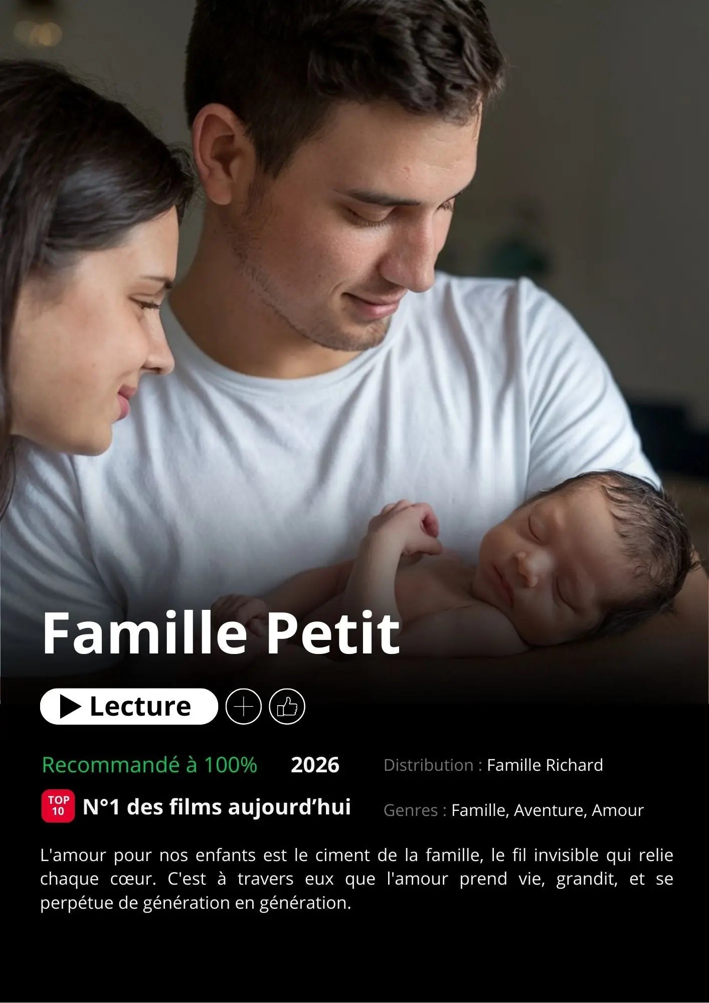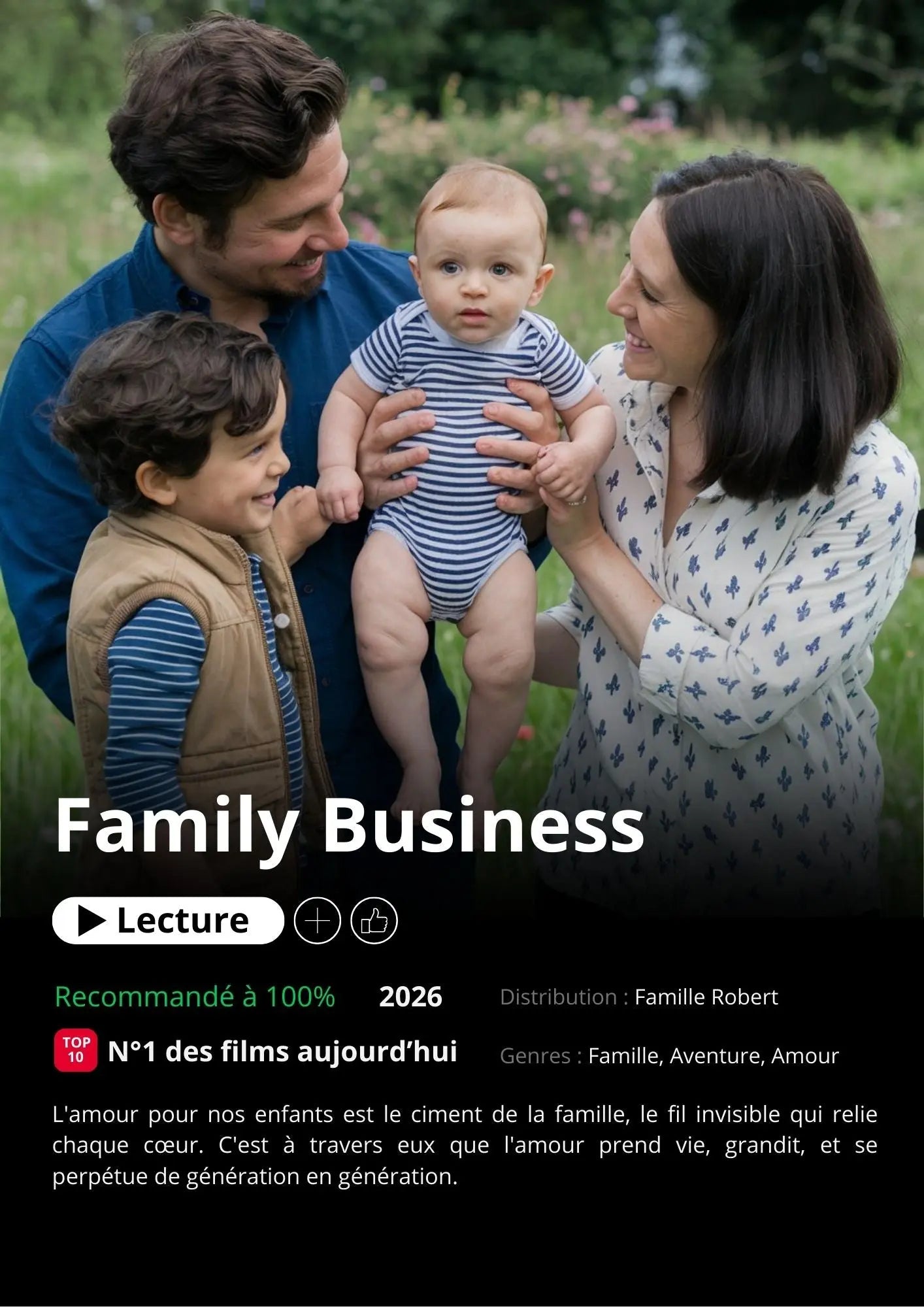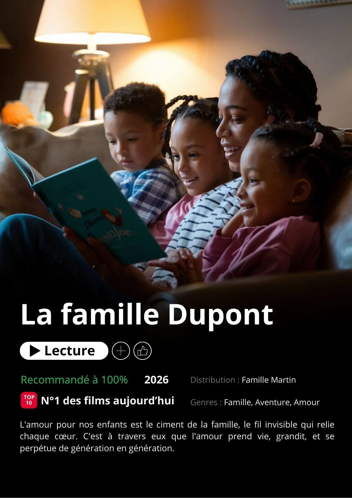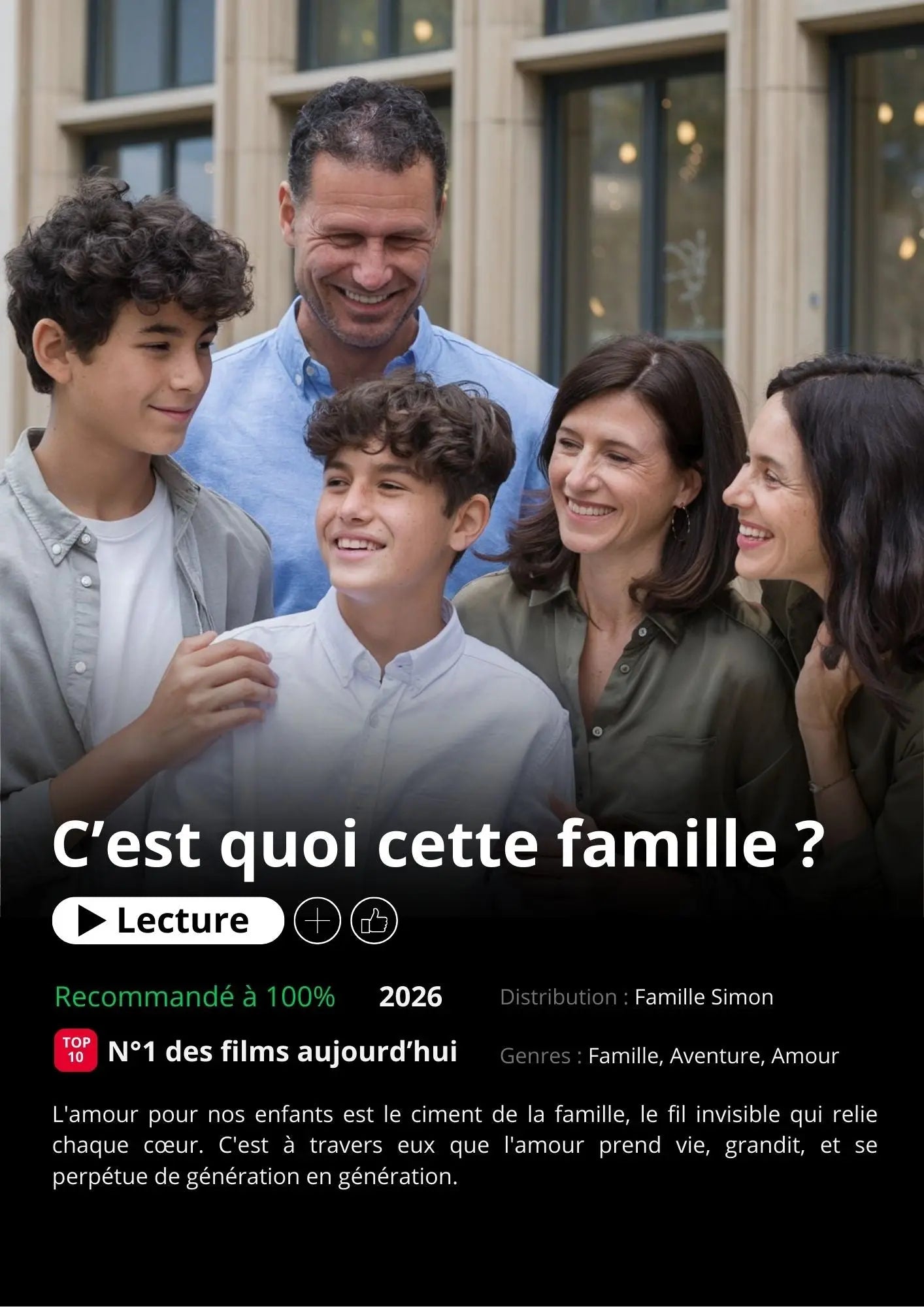 Immortalisez l'esprit de votre famille avec notre Affiche Netflix Famille Personnalisée ! Inspirée des célèbres affiches de films Netflix, cette création unique vous permet de transformer votre famille en protagonistes d’un film familial inoubliable. Que ce soit pour célébrer une occasion spéciale, comme un anniversaire ou une réunion de famille, ou simplement pour orner votre maison d’un souvenir original, cette affiche est le cadeau parfait pour capturer les moments précieux passés ensemble.