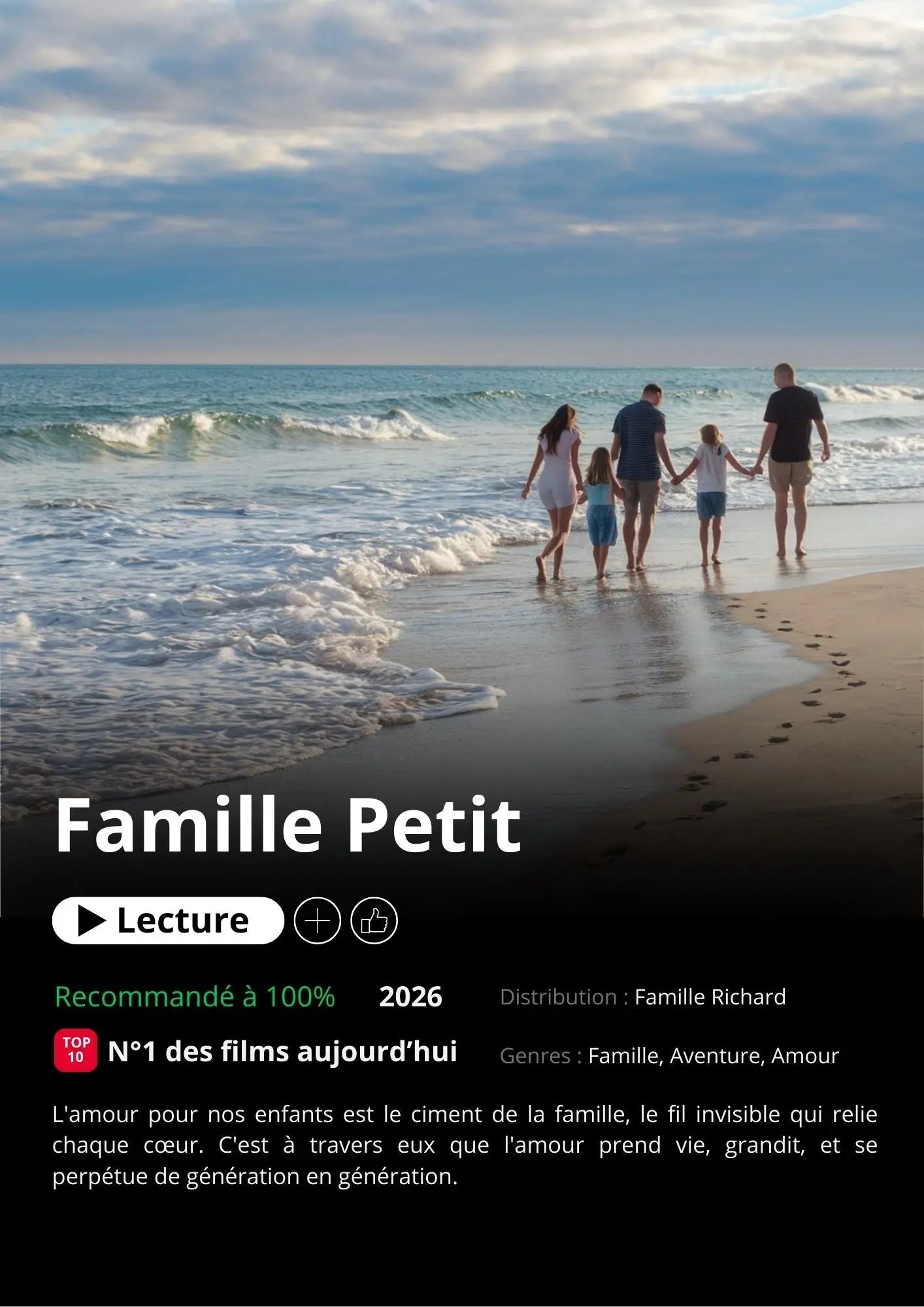 - Personnalisation complète : Ajoutez votre propre photo, modifiez le titre, le sous-titre, et les noms des membres de la famille pour que l'affiche reflète parfaitement votre dynamique familiale.