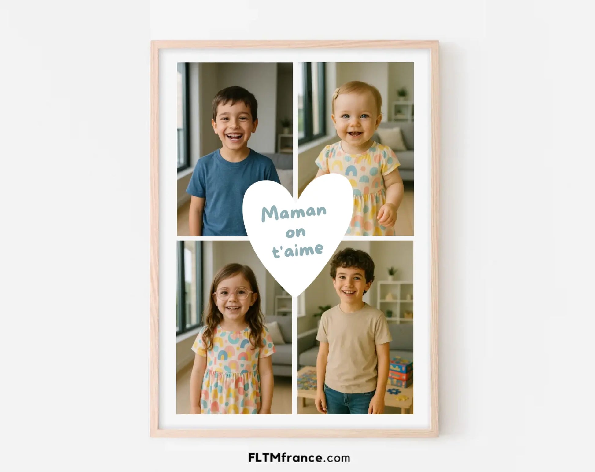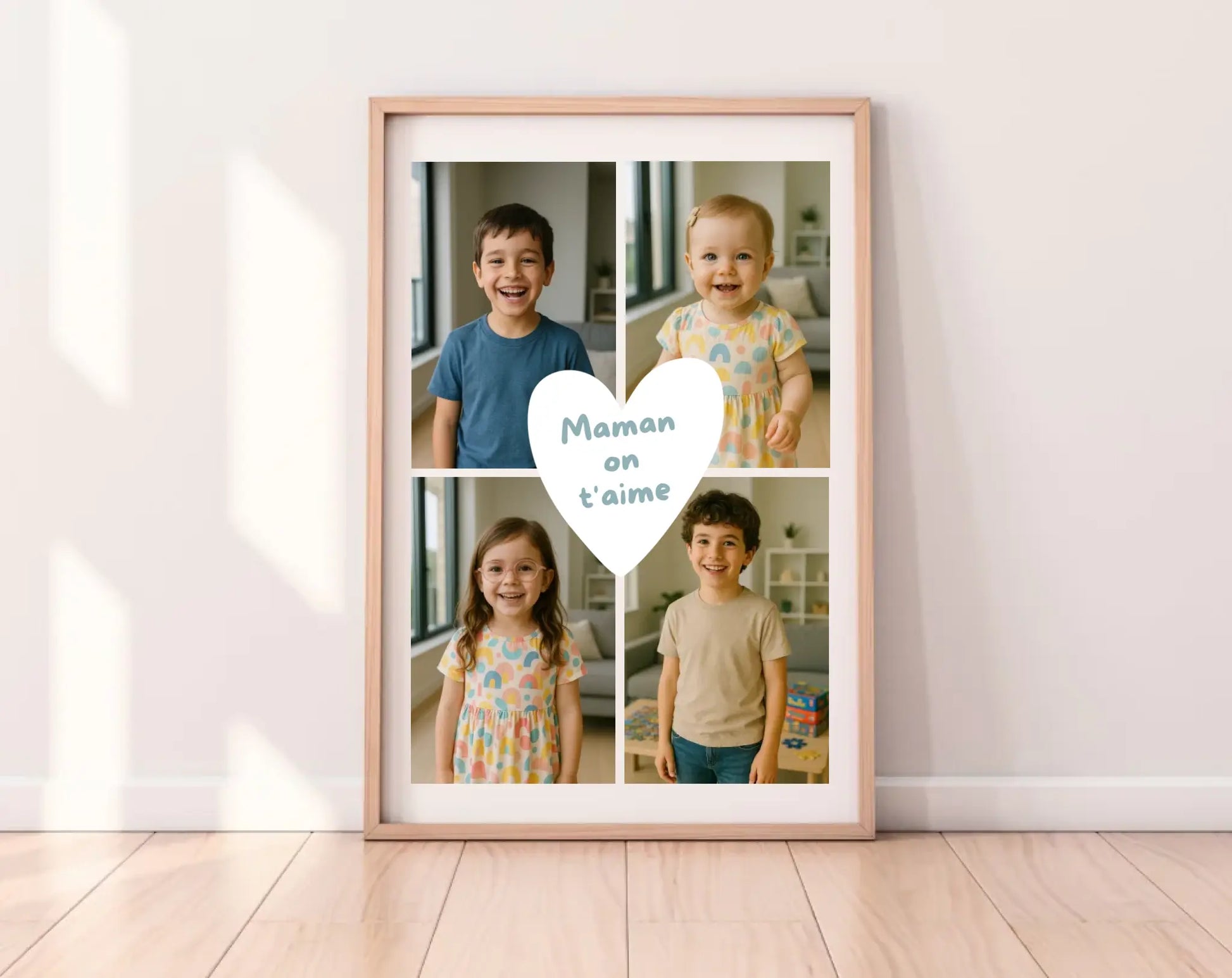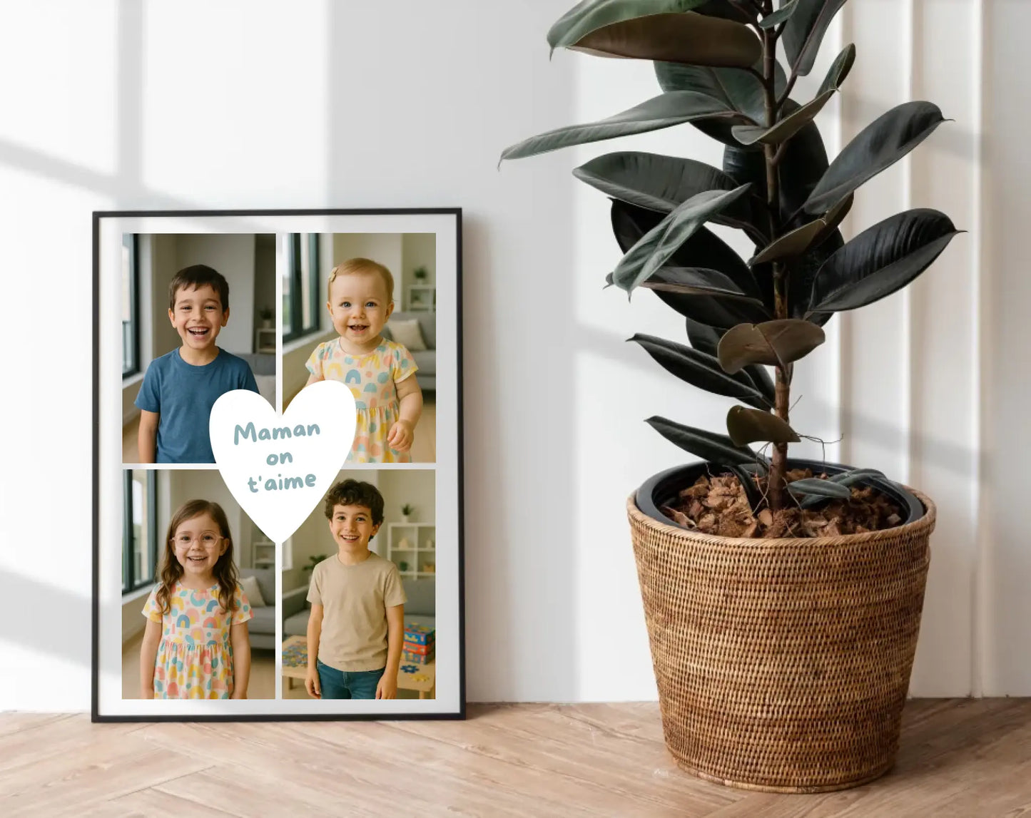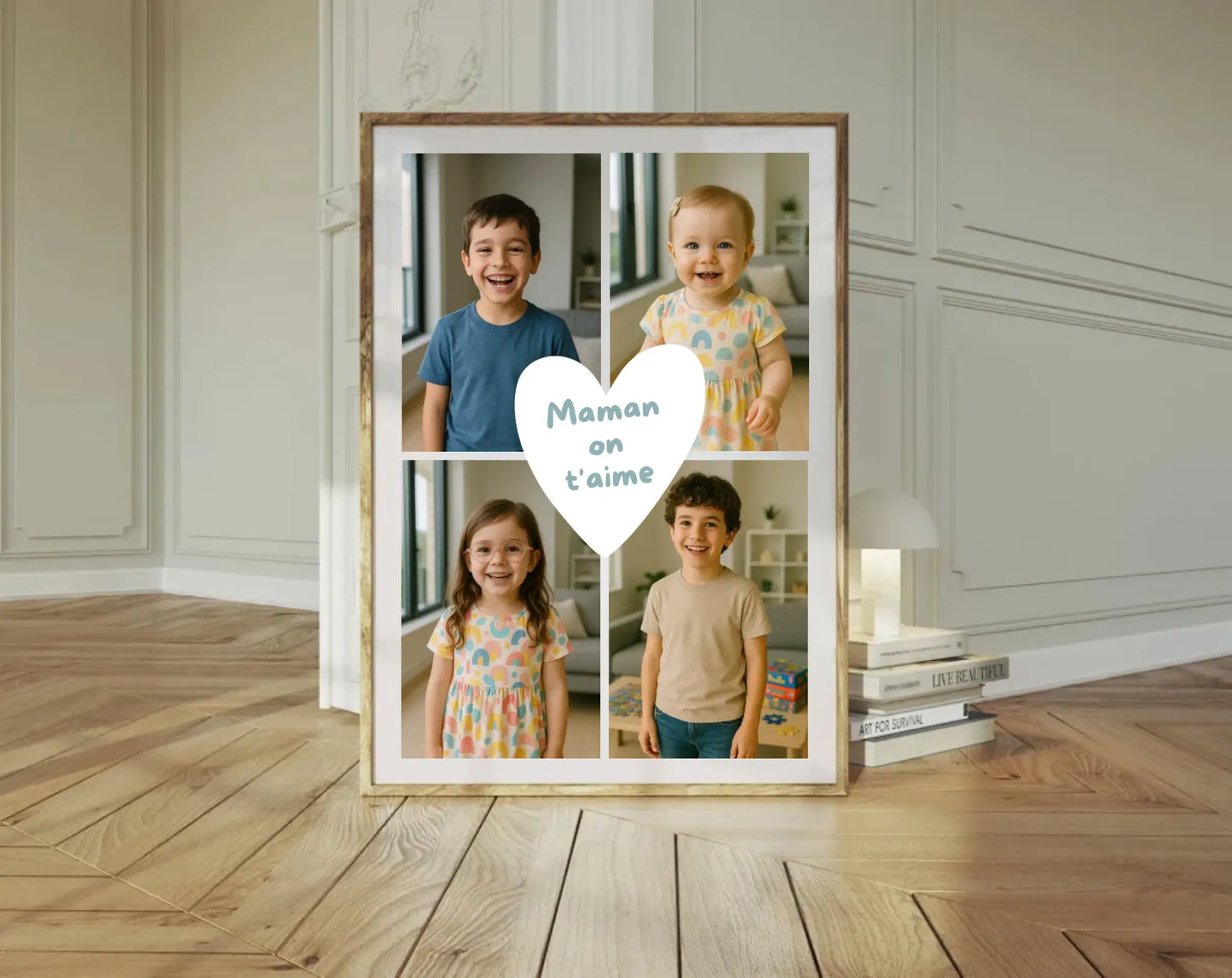 💖 Affiche On t’aime Maman – Avec 4 photos personnalisées