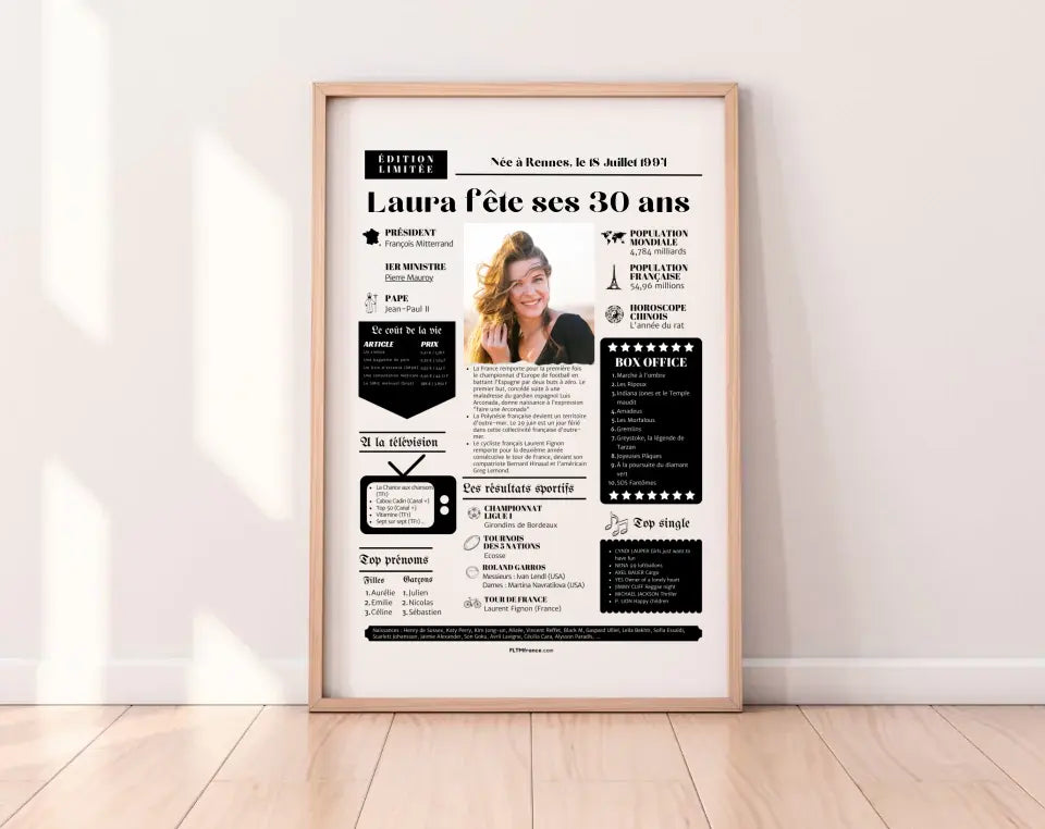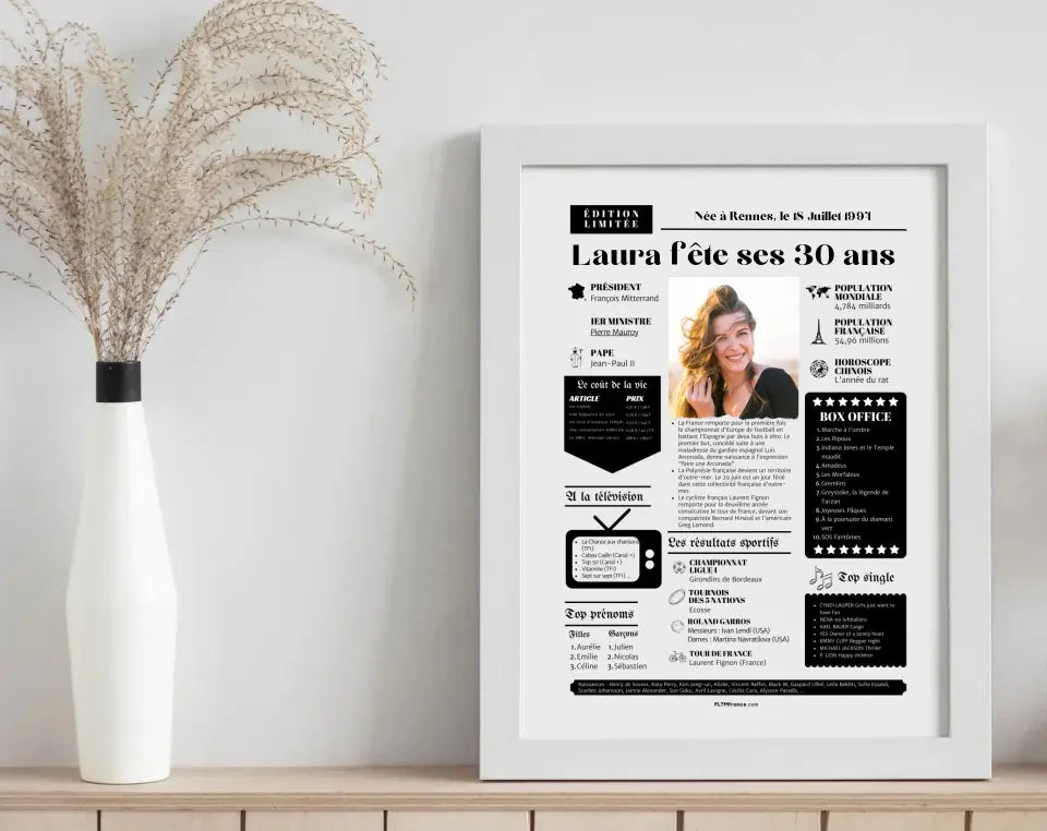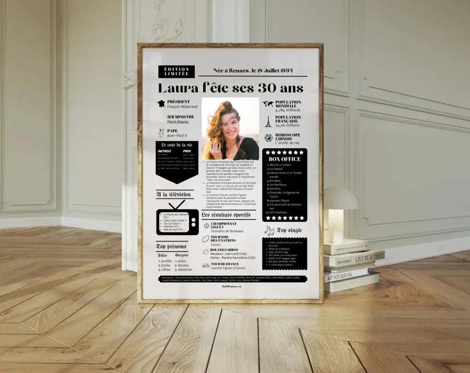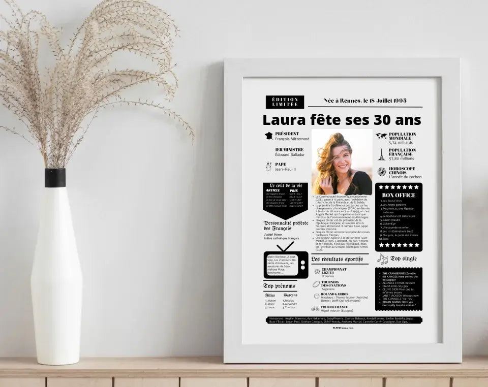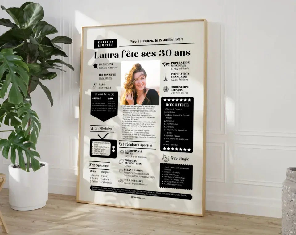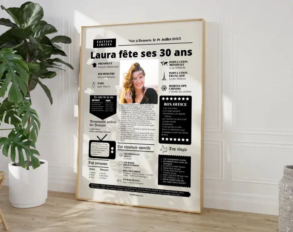 Affiche personnalisée anniversaire 30 ans - Année de naissance
