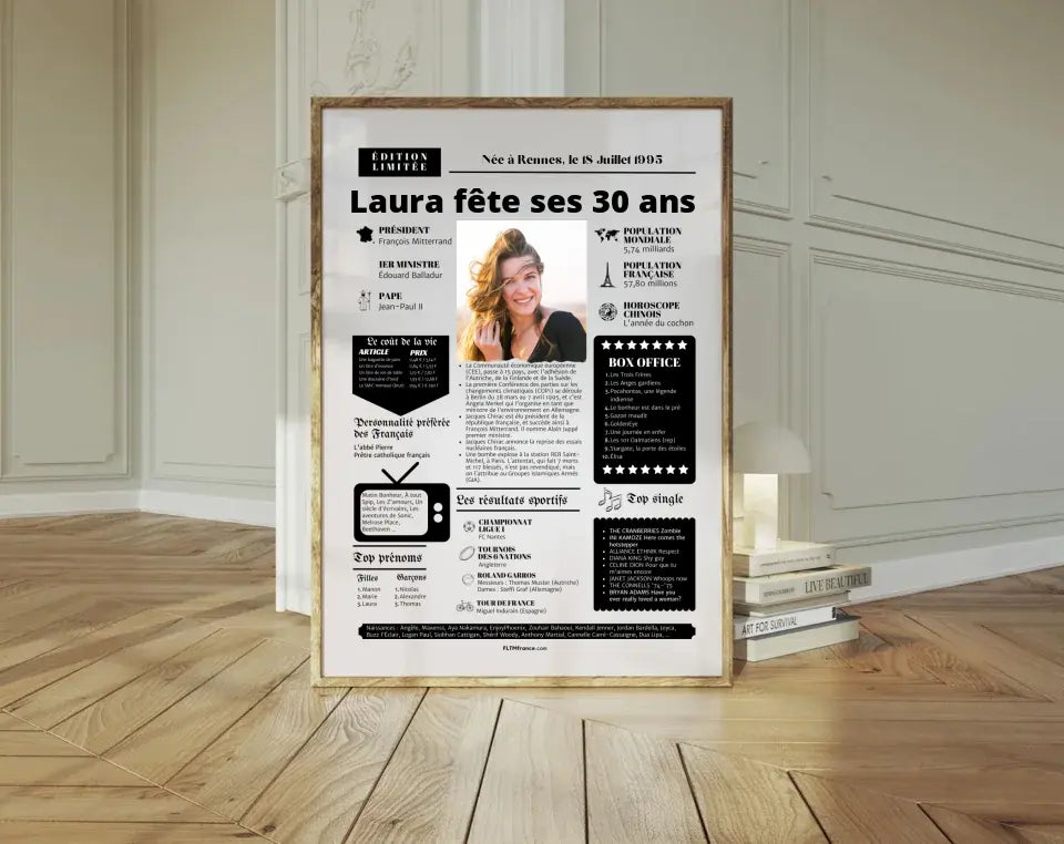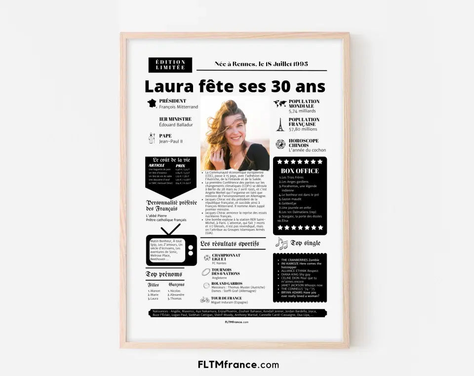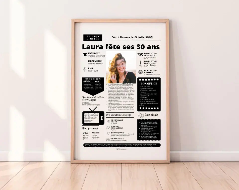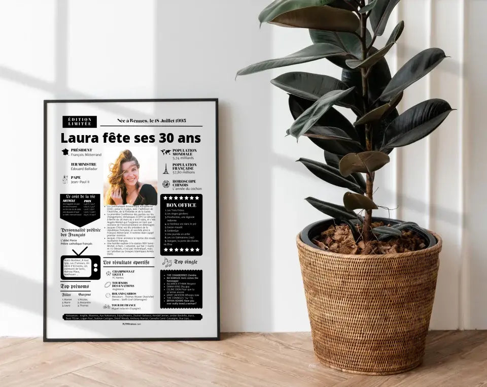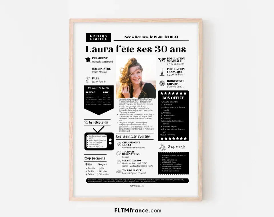 Affiche personnalisée anniversaire 30 ans - Année de naissance