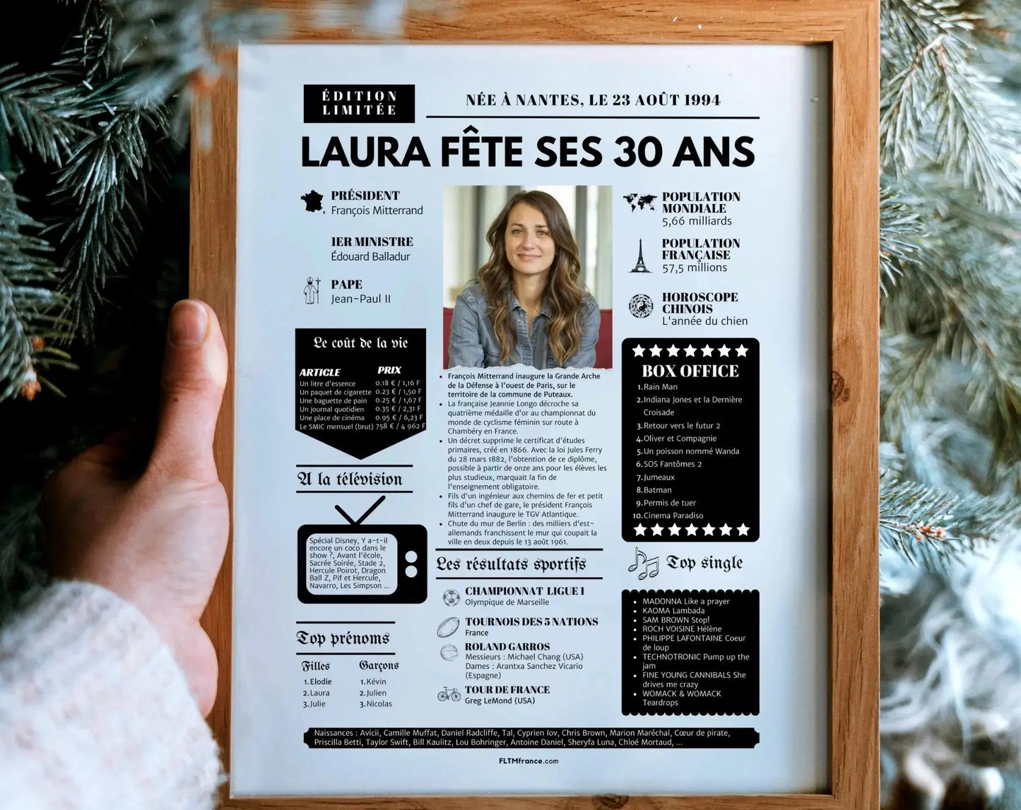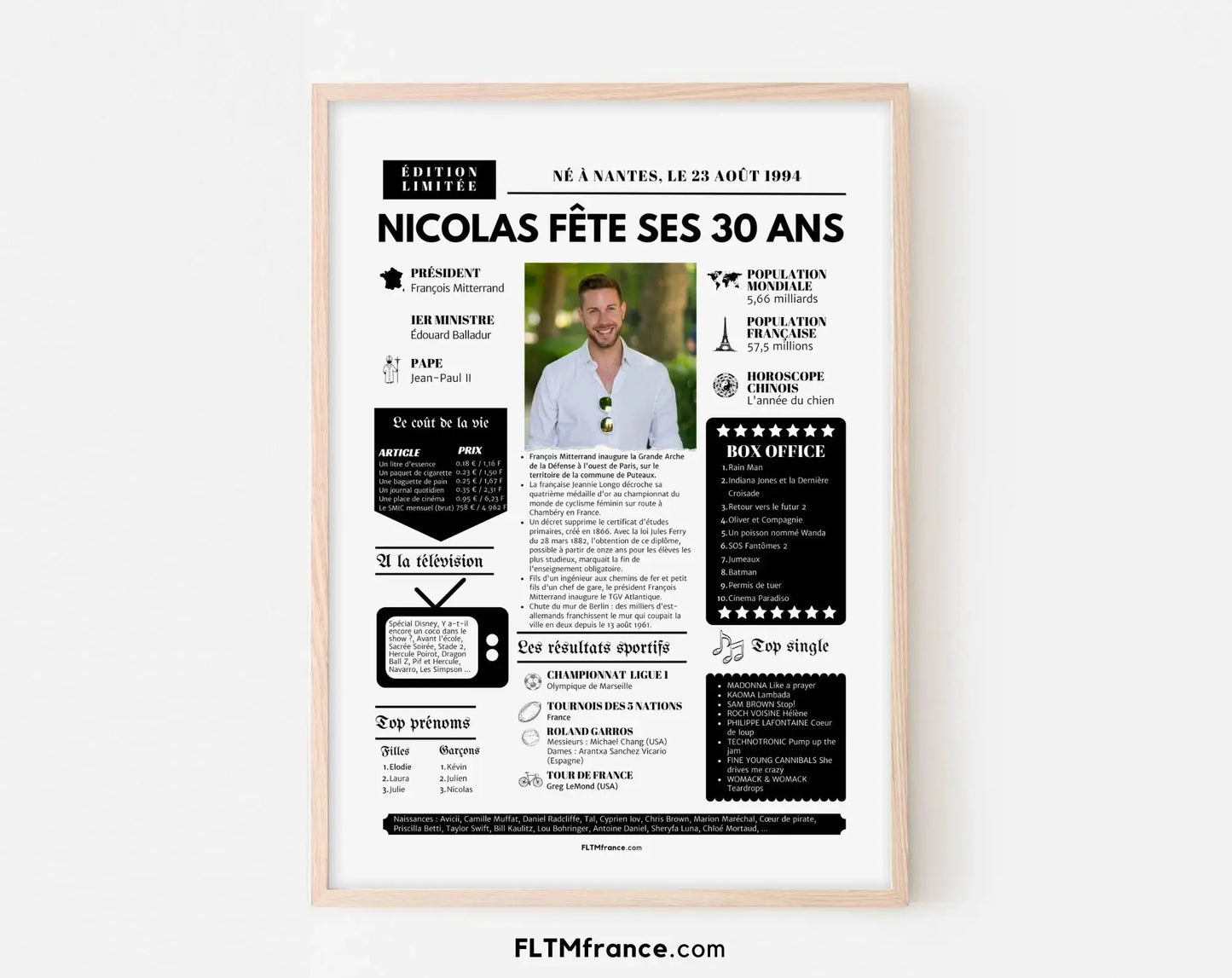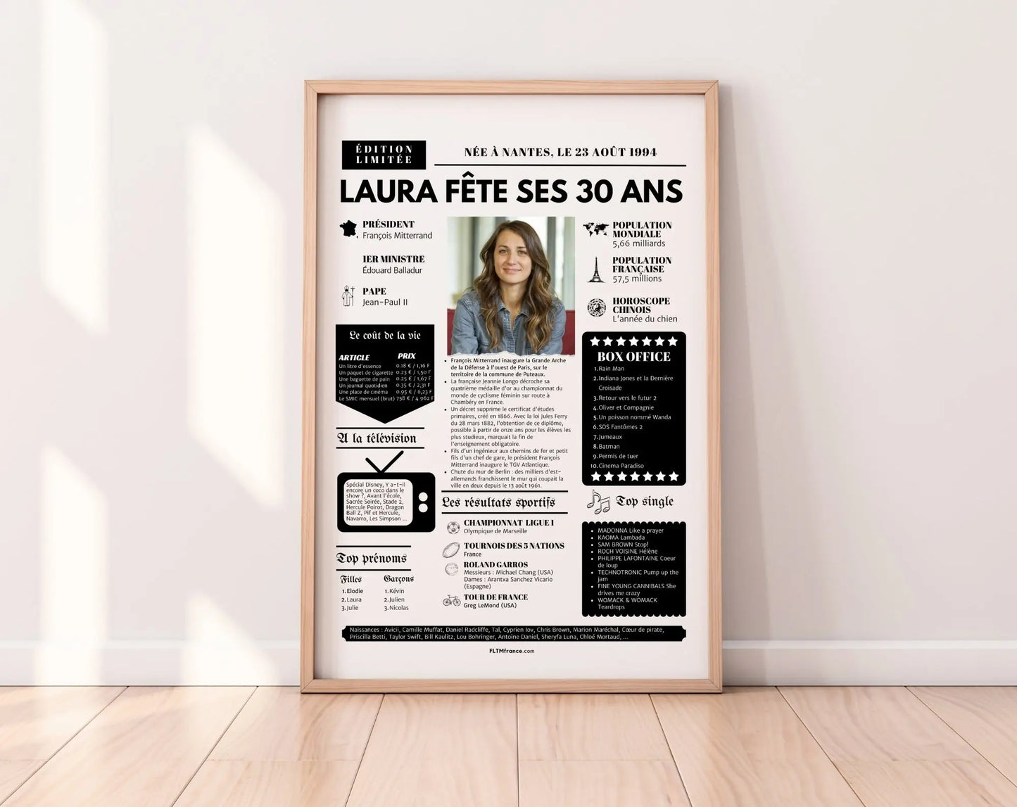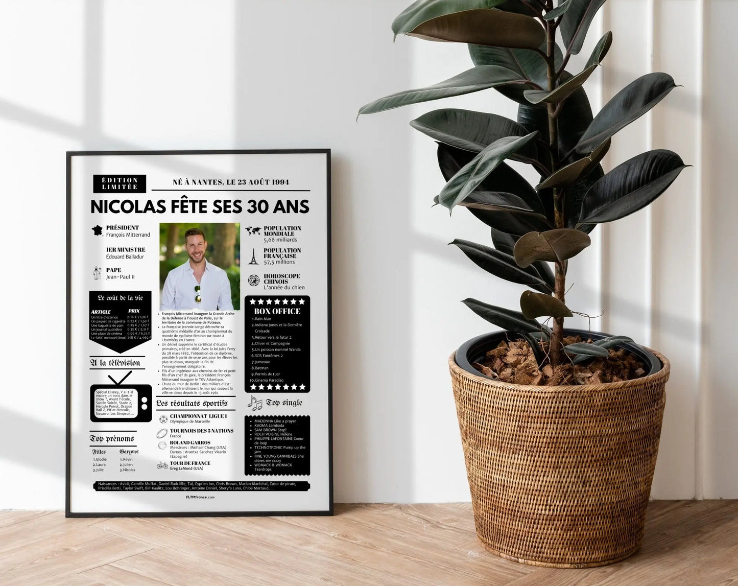 Affiche personnalisée anniversaire 30 ans - Année de naissance