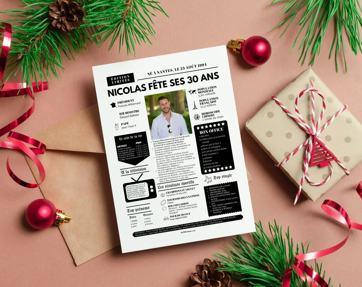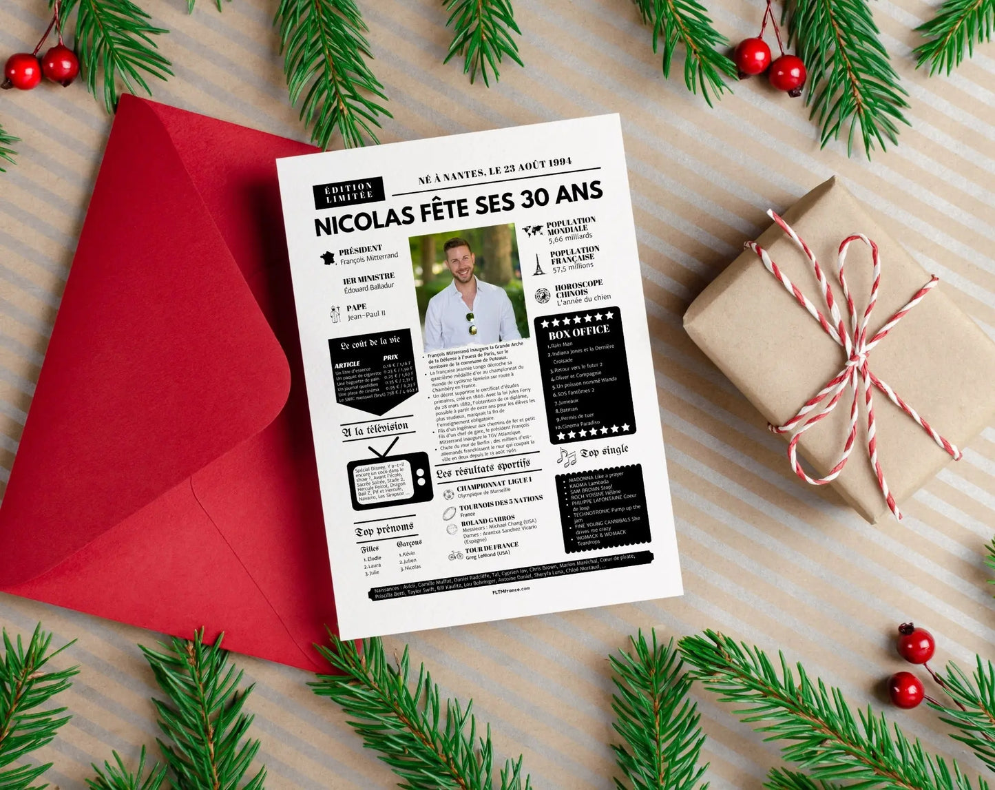 Revivez les souvenirs de l’année de naissance avec une composition élégante et un message personnalisé.
