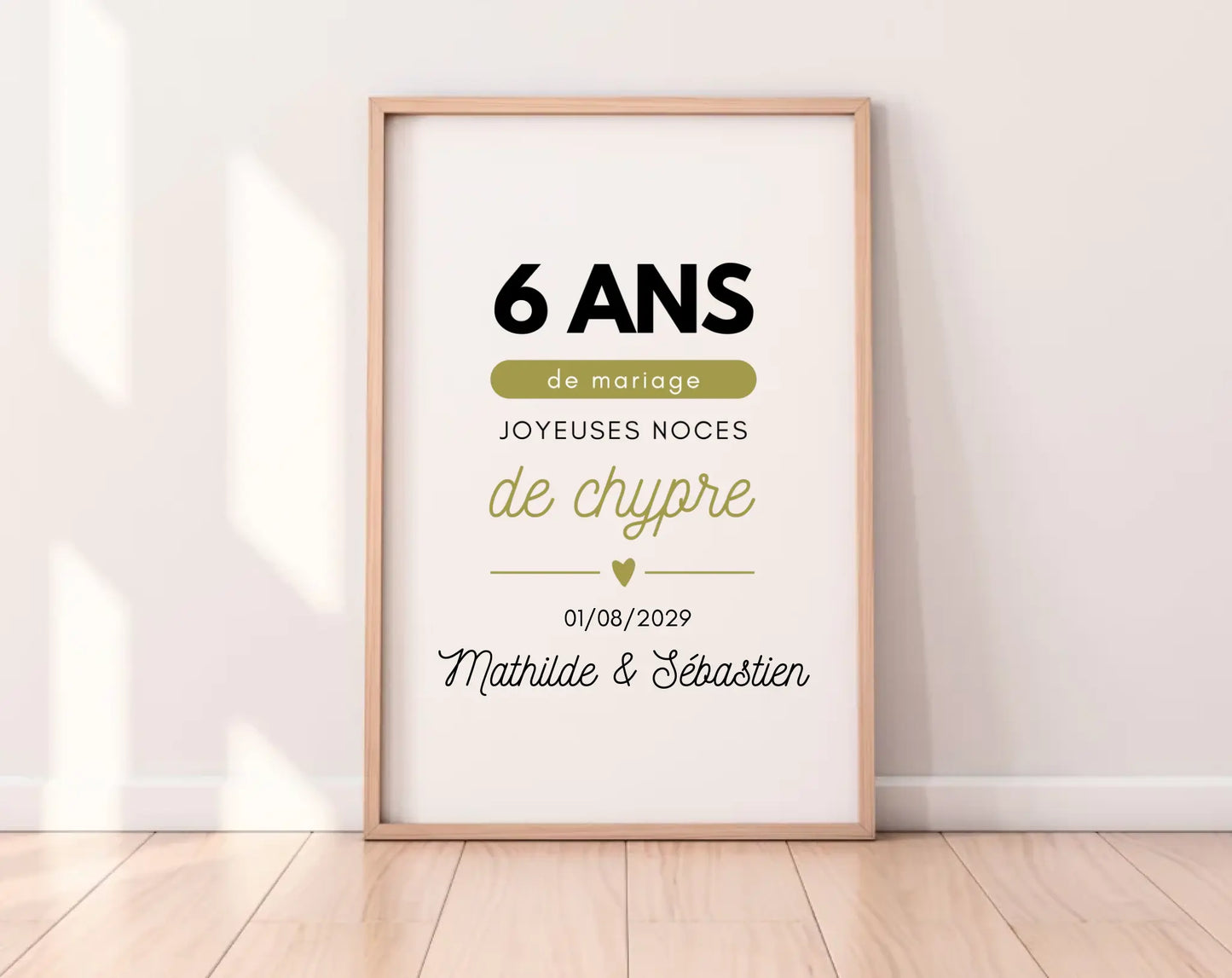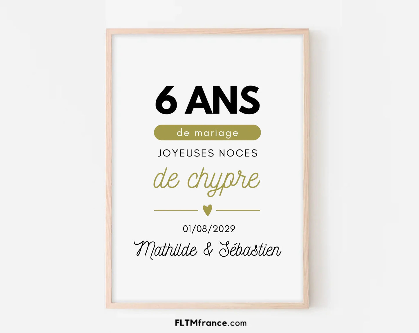 Affiche personnalisée Joyeuses Noces de chypre – 6 ans de mariage