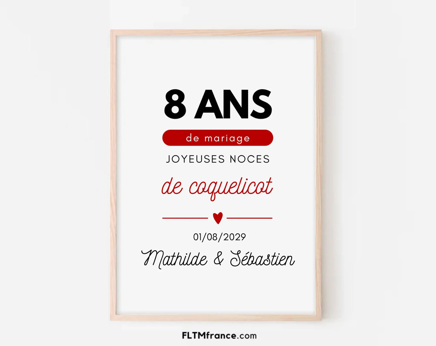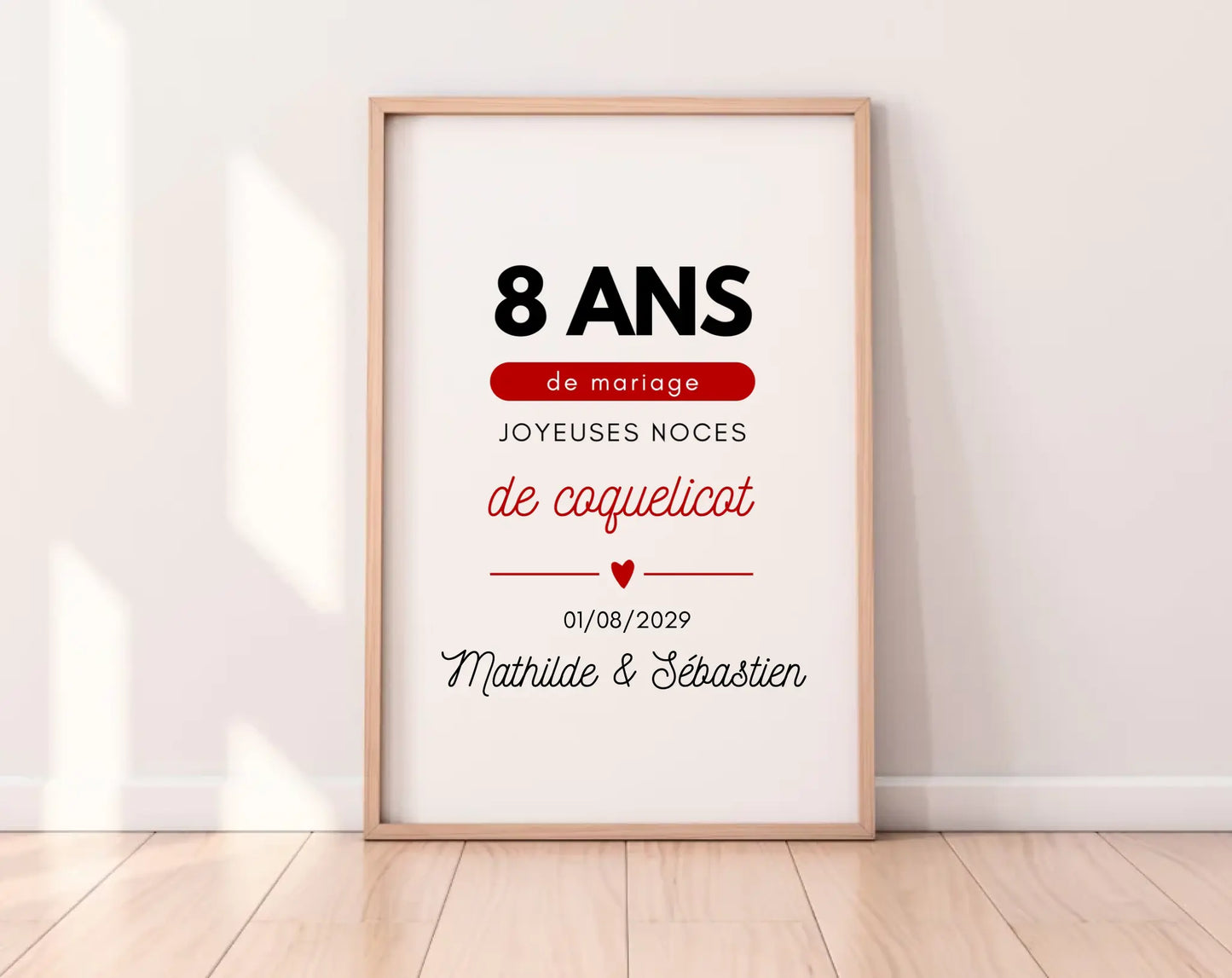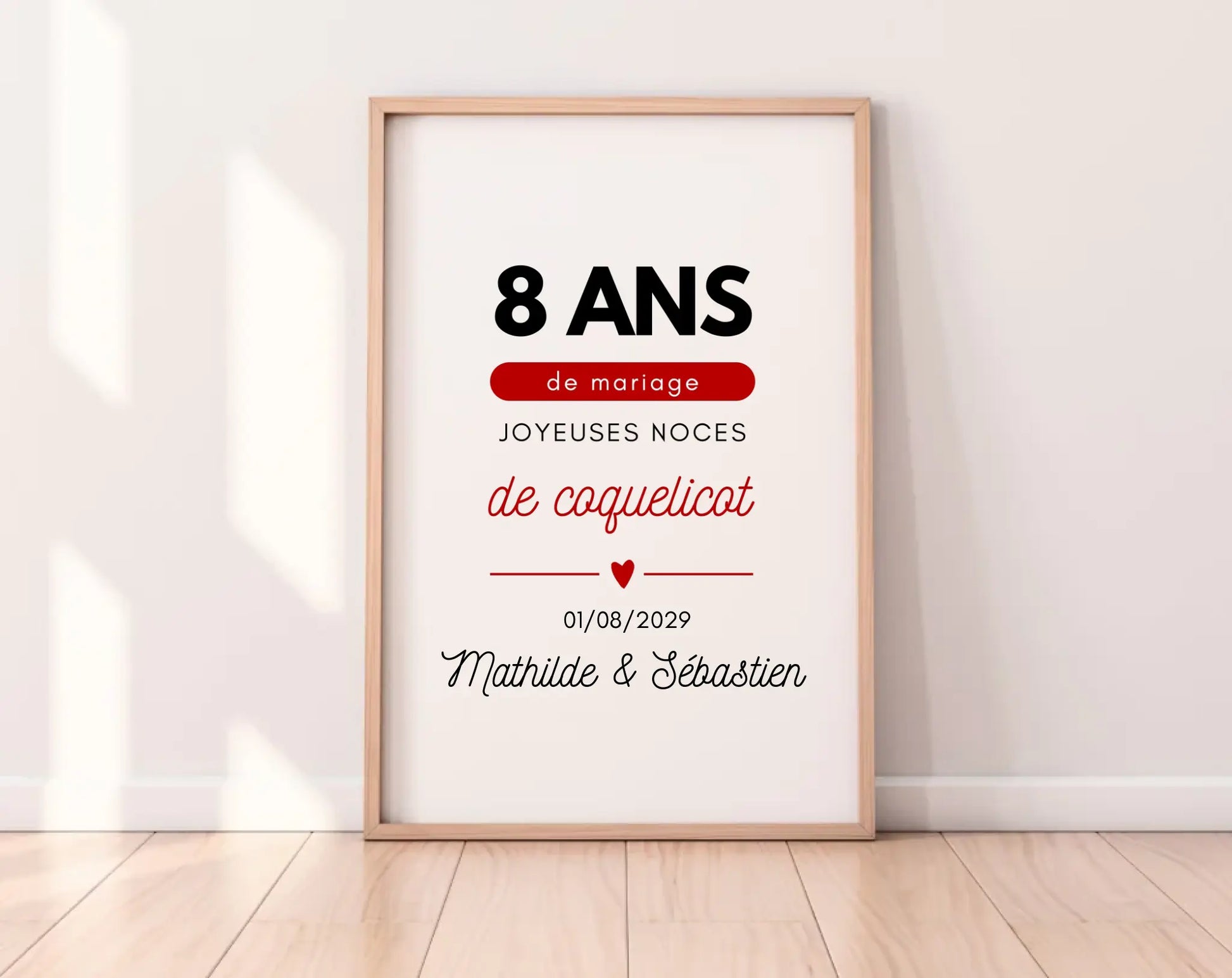 Affiche personnalisée Joyeuses Noces de coquelicot – 8 ans de mariage