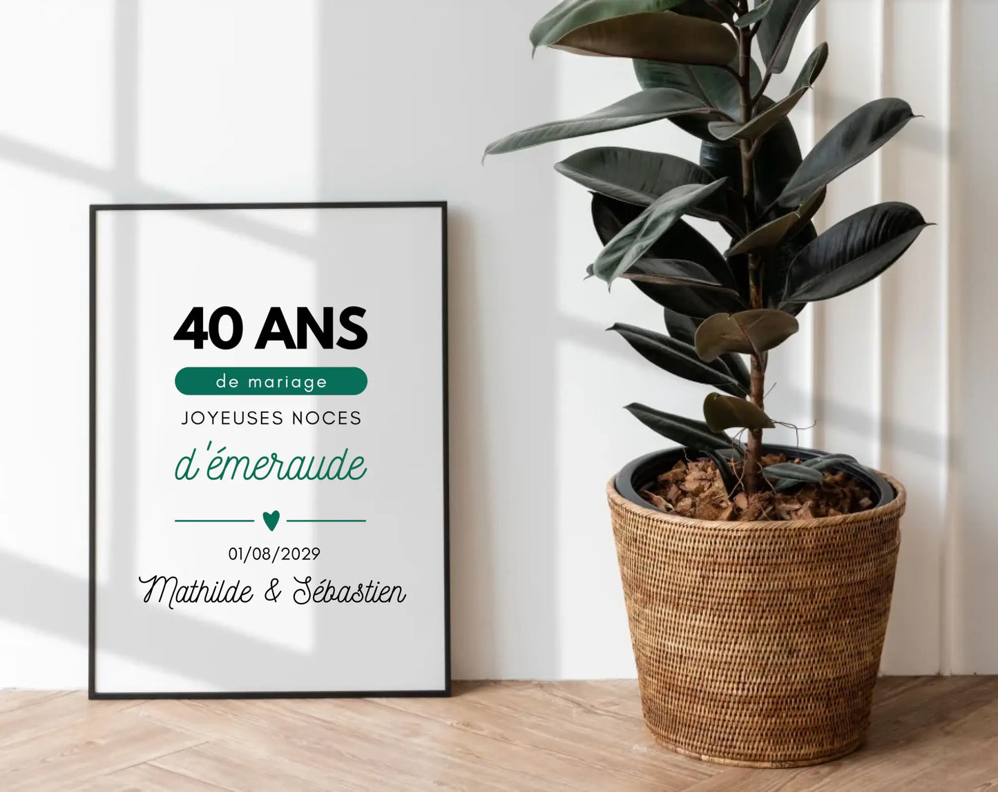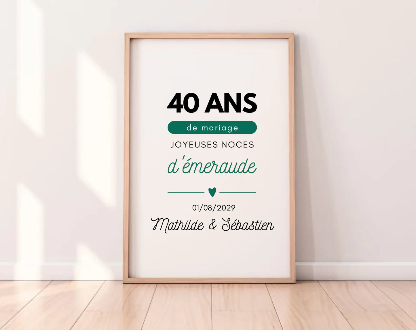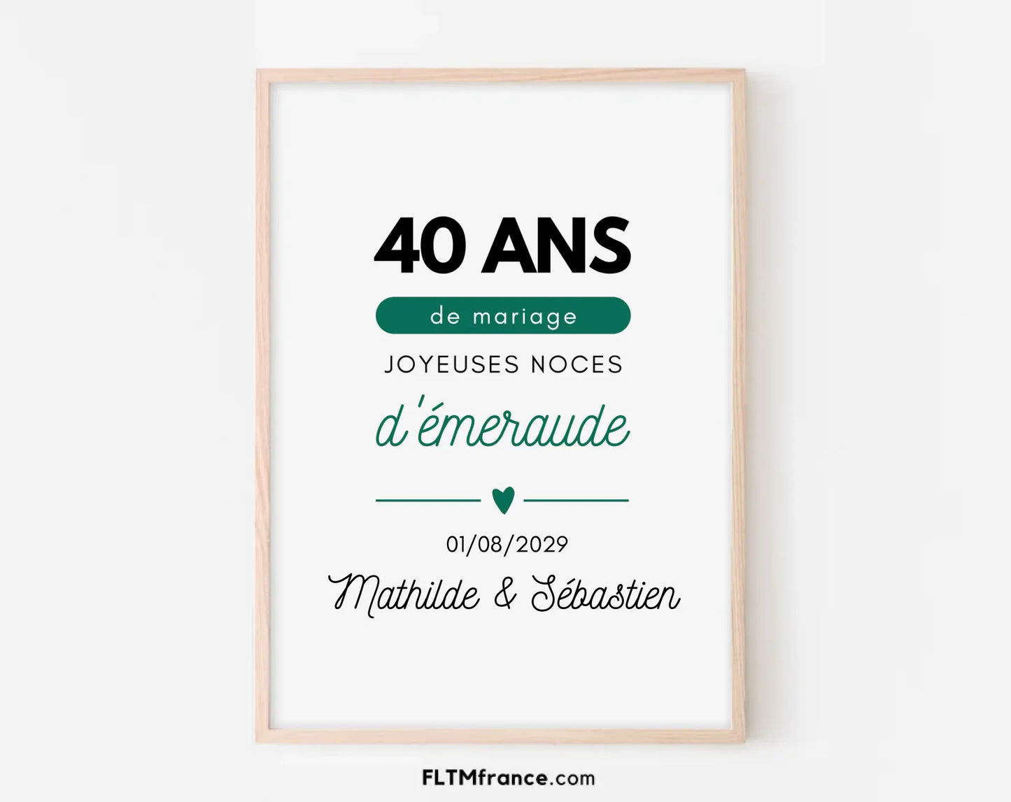 Télécharge ton Affiche personnalisée Joyeuses Noces de rubis sur FLTM, imprime-la, encadre-la… et continuez de faire briller votre histoire, main dans la main, année après année ❤️✨