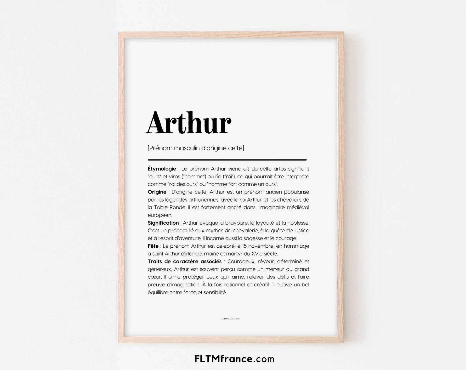 Affiche prénom Arthur à imprimer – Signification, origine et personnalité