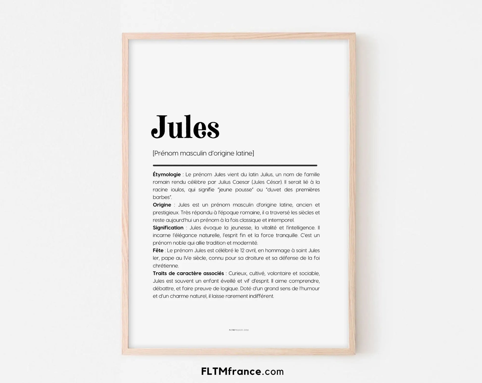 Affiche prénom Jules à imprimer – Signification, origine et traits de caractère