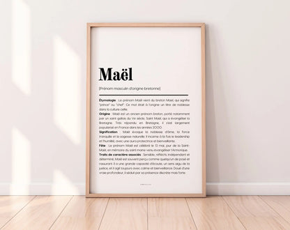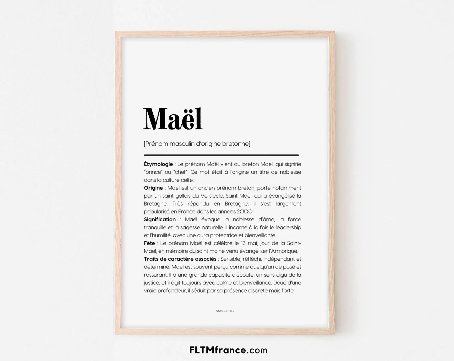 Affiche prénom Maël à imprimer – Signification, origine et traits de caractère